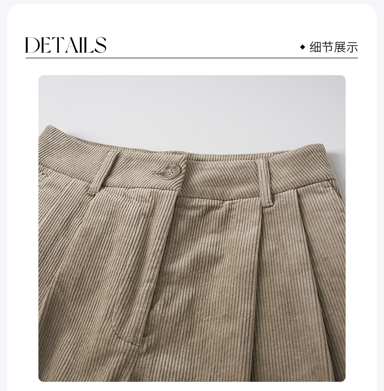 ROMI STUDIO“松弛高知”高比例棉高腰直筒粗坑灯芯绒长裤23AWK1151