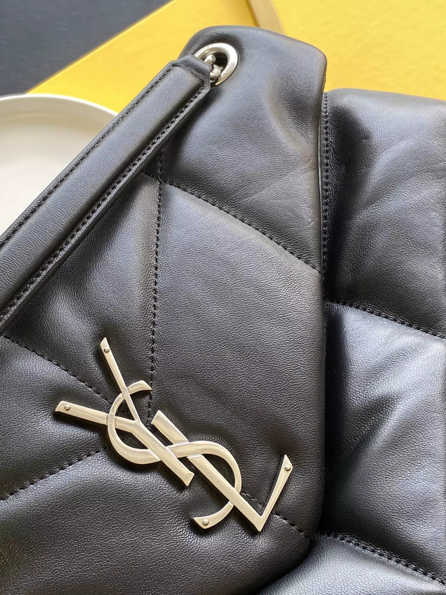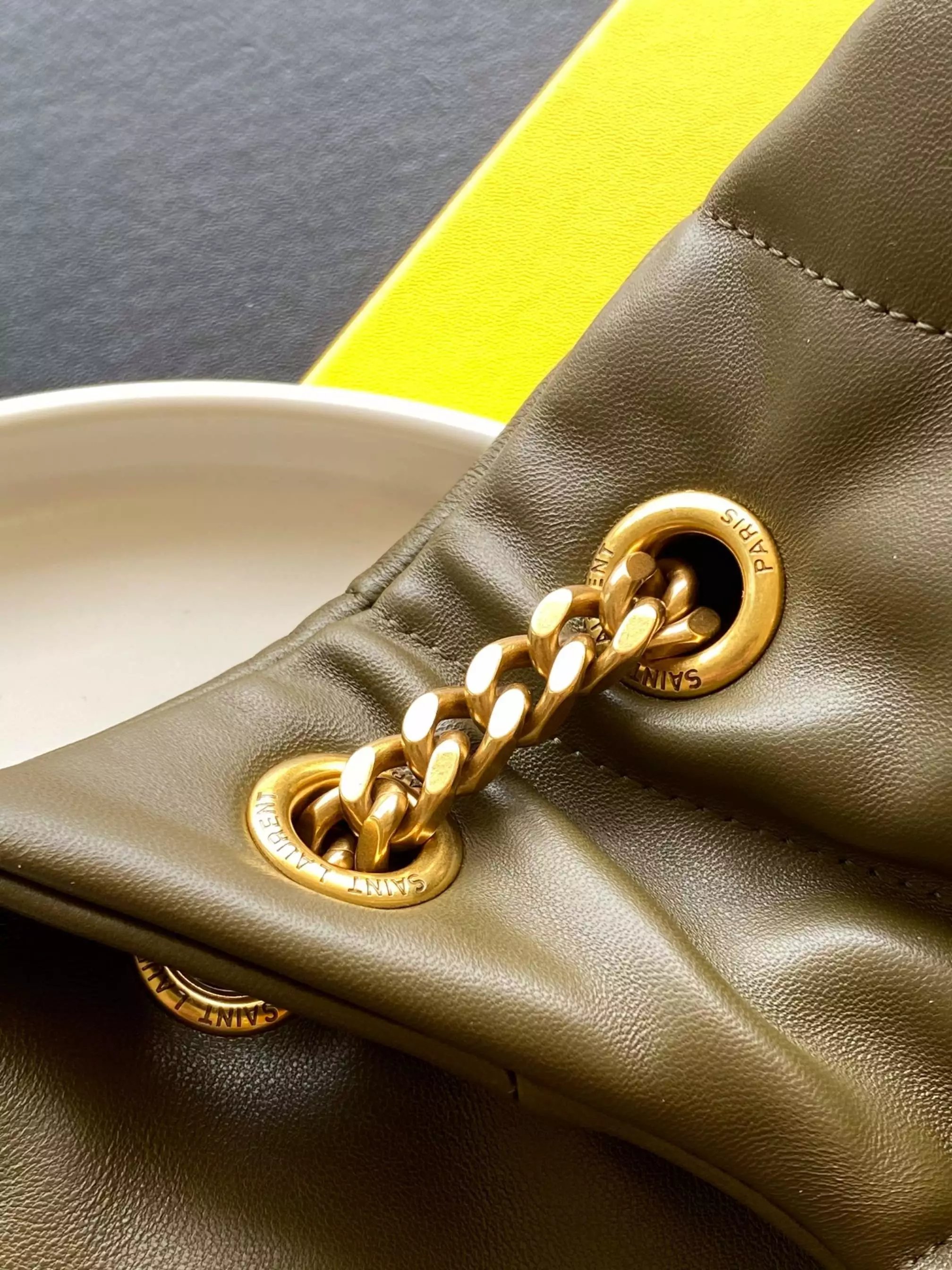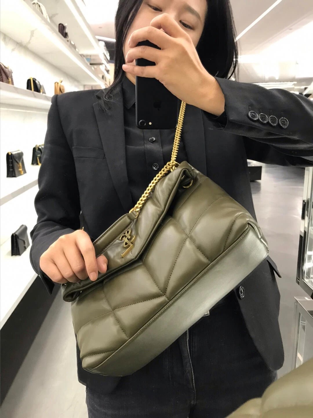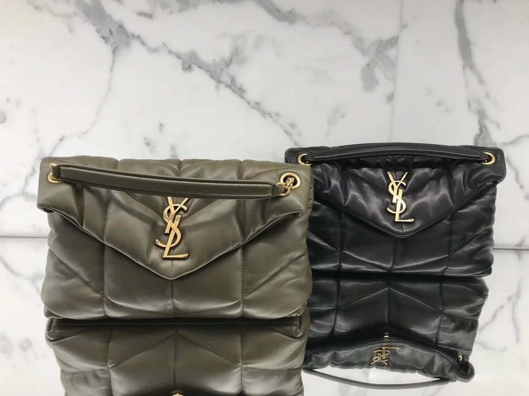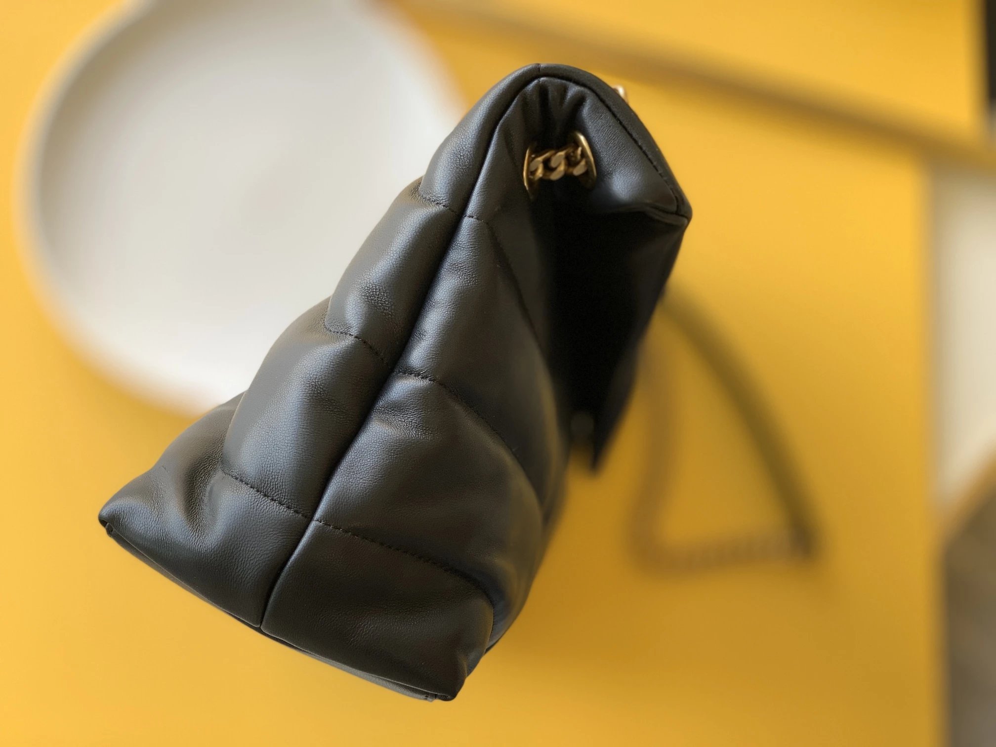 LOULOU PUFFER 绗缝小羊皮包,100%小羊皮制作,手感柔软细腻,犹如怀抱云朵般的感受;经典的Y家logo、链条及扣眼五金均采用金扣拉丝金属材质,哑光雾面的质感及其别致!