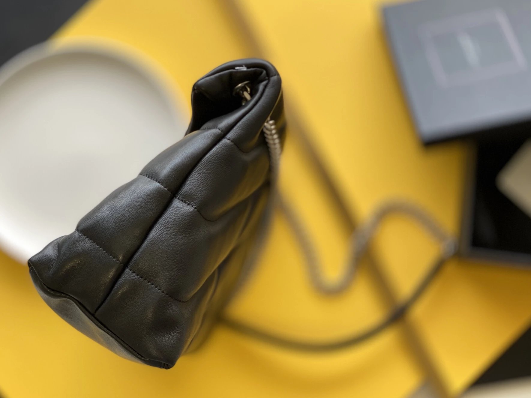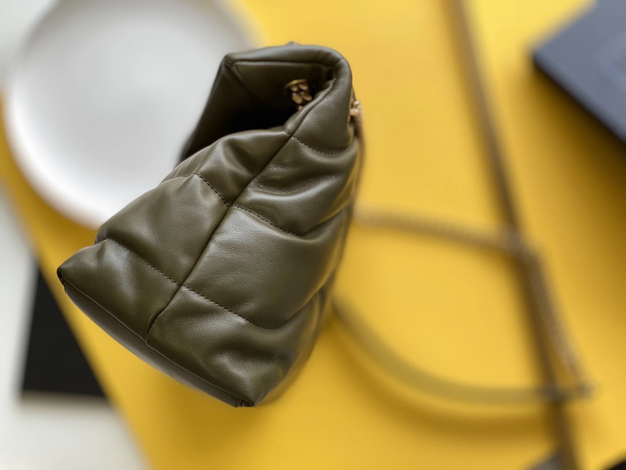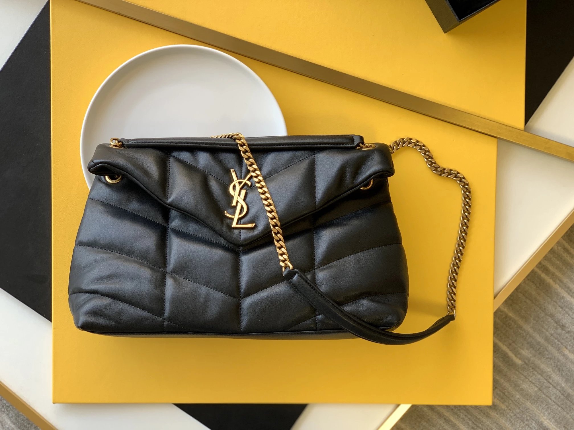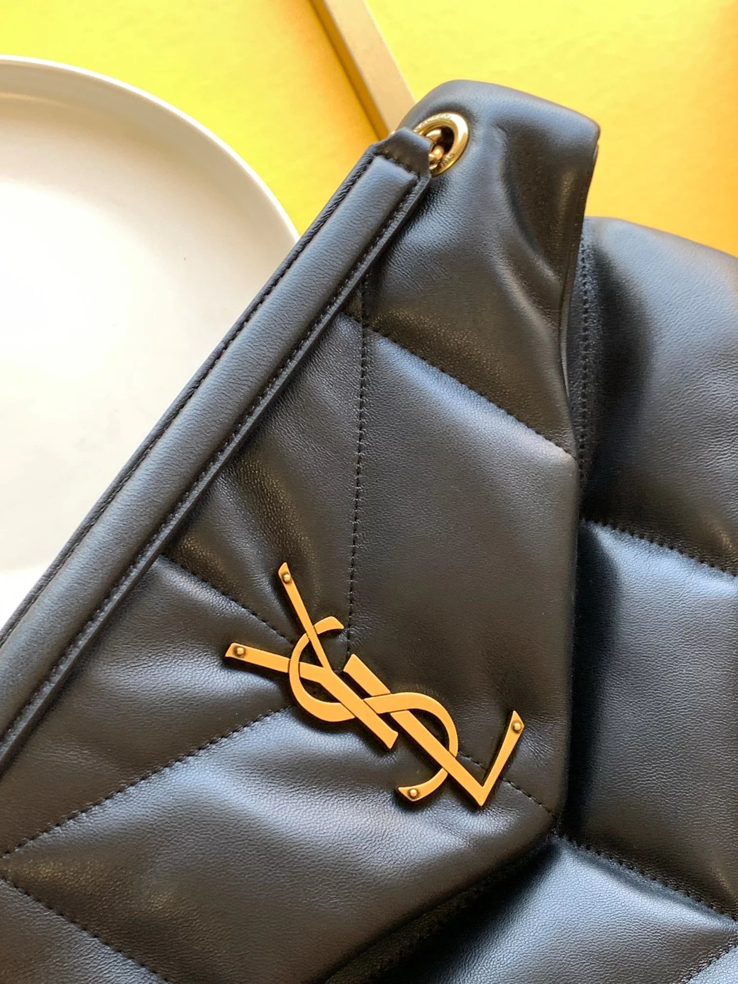 LOULOU PUFFER 绗缝小羊皮包,100%小羊皮制作,手感柔软细腻,犹如怀抱云朵般的感受;经典的Y家logo、链条及扣眼五金均采用金扣拉丝金属材质,哑光雾面的质感及其别致!