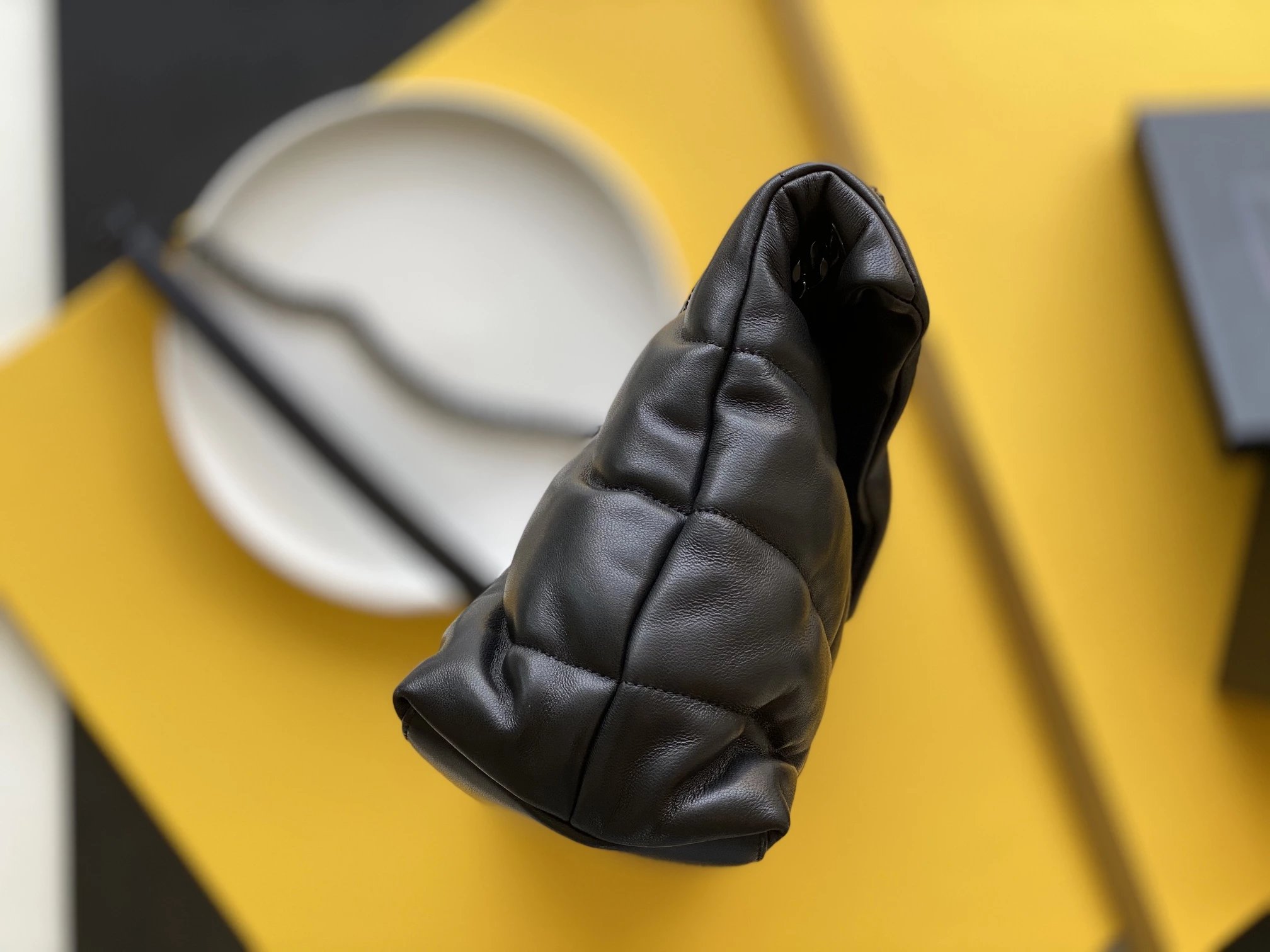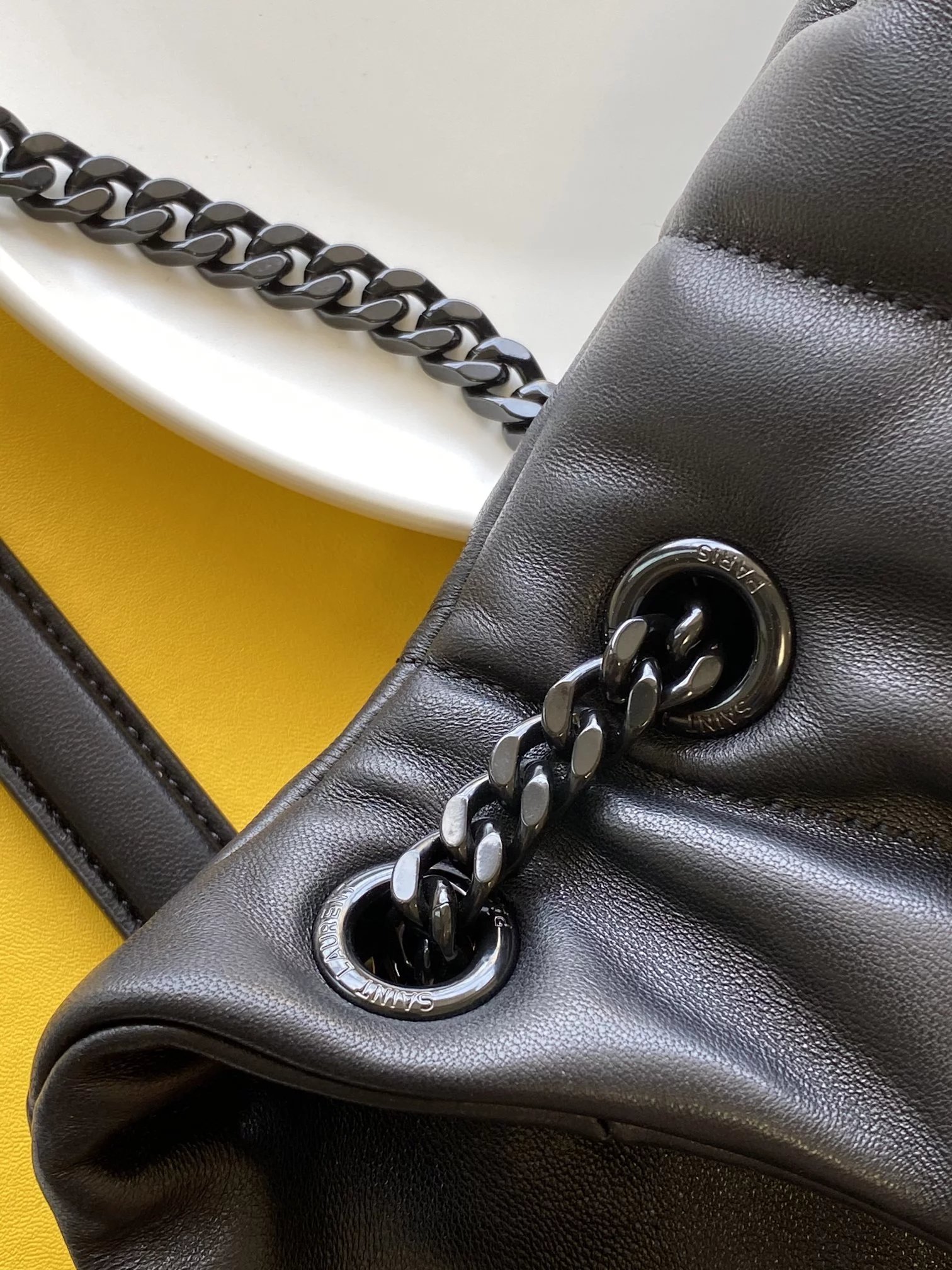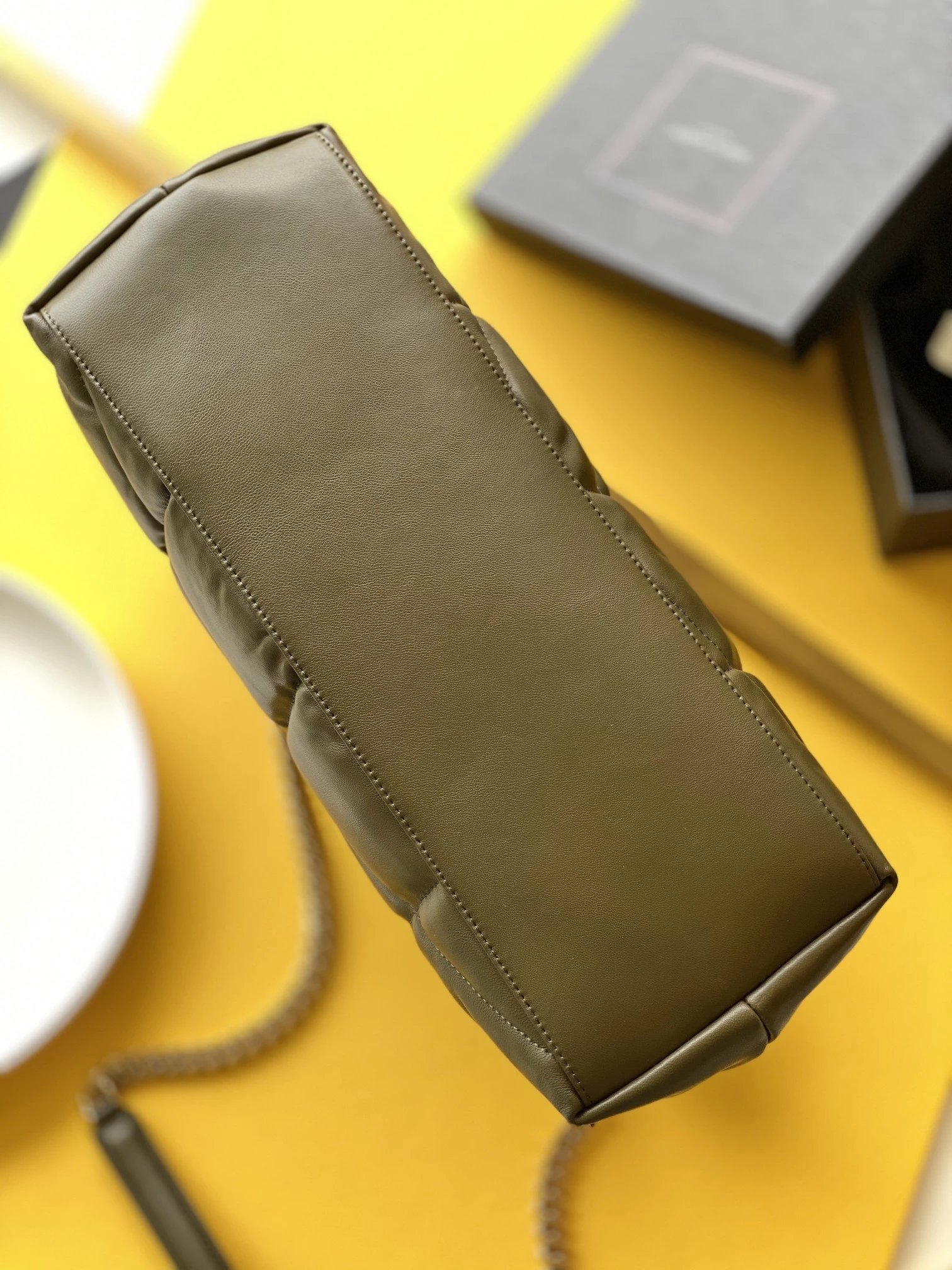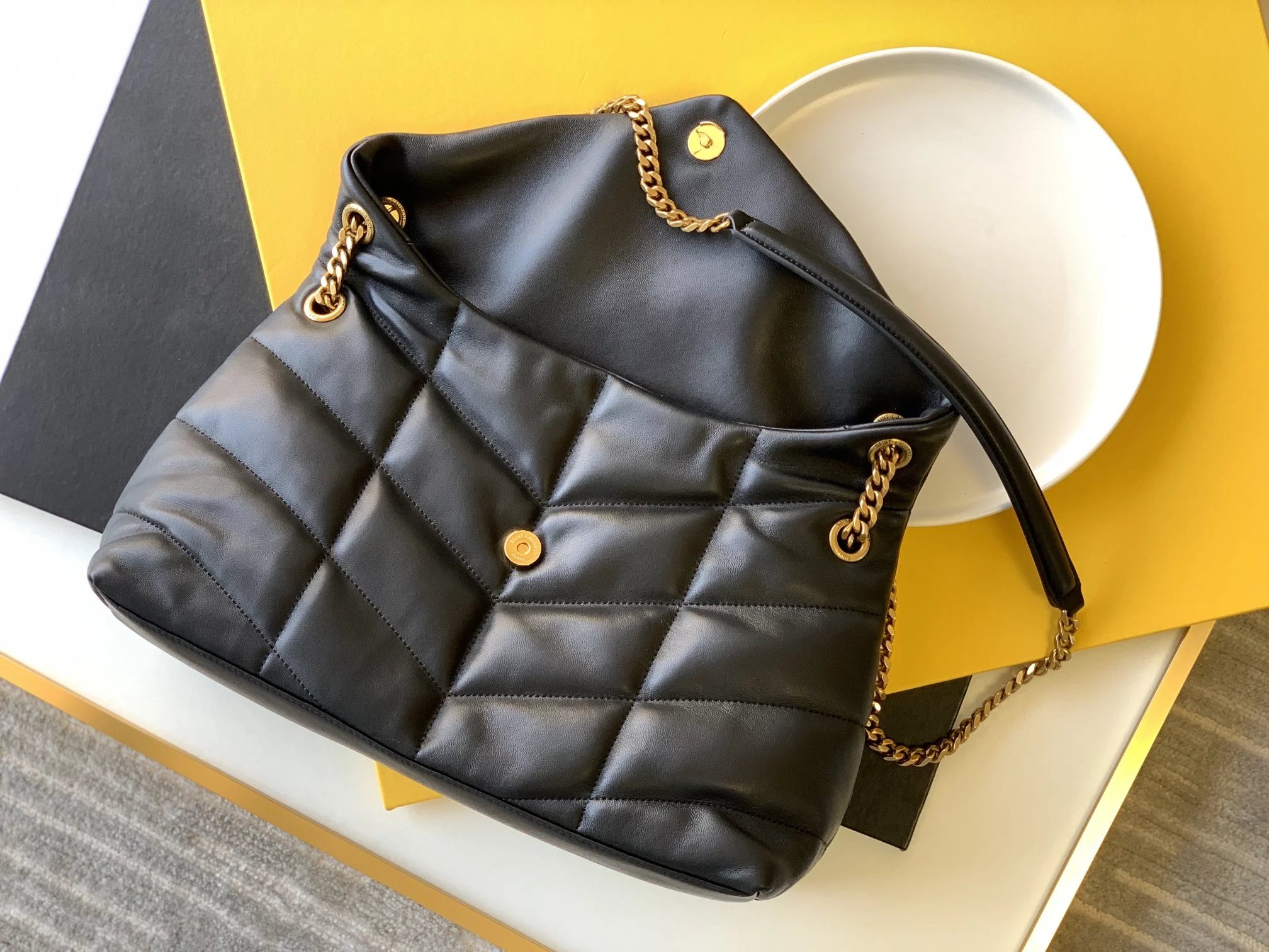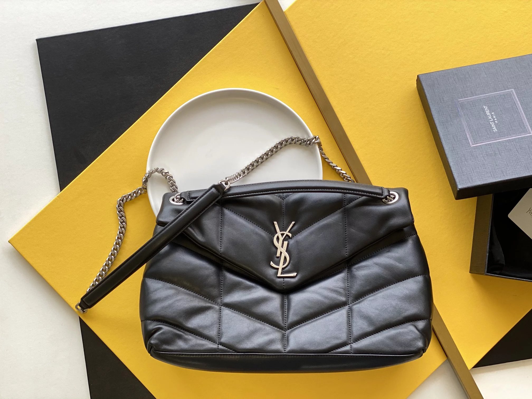 LOULOU PUFFER 绗缝小羊皮包,100%小羊皮制作,手感柔软细腻,犹如怀抱云朵般的感受;经典的Y家logo、链条及扣眼五金均采用金扣拉丝金属材质,哑光雾面的质感及其别致!