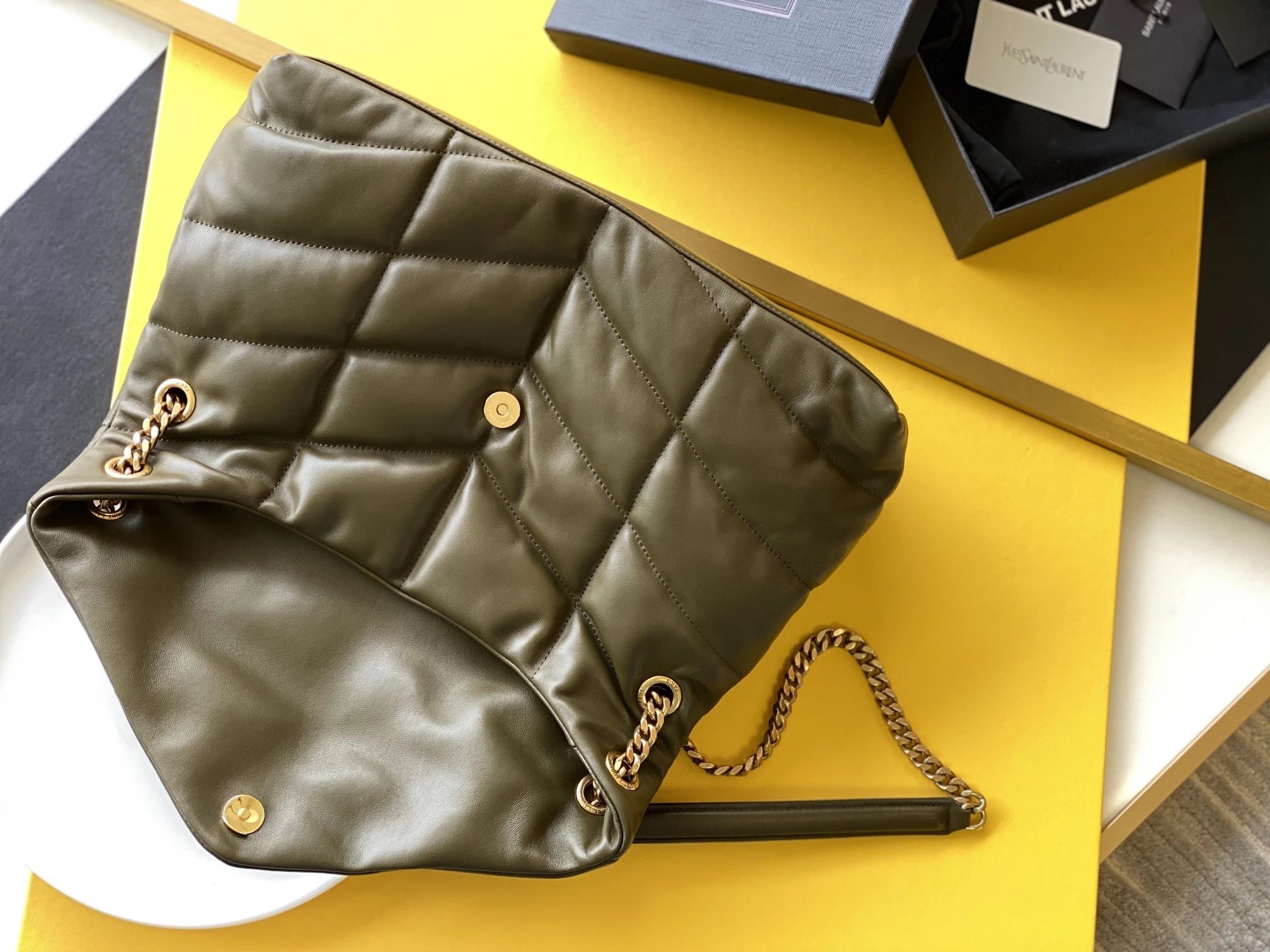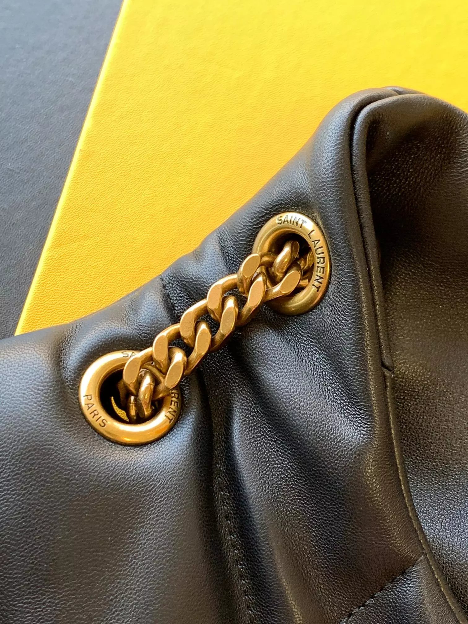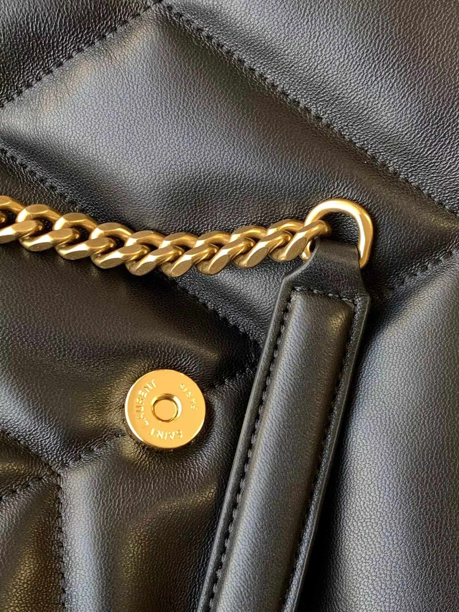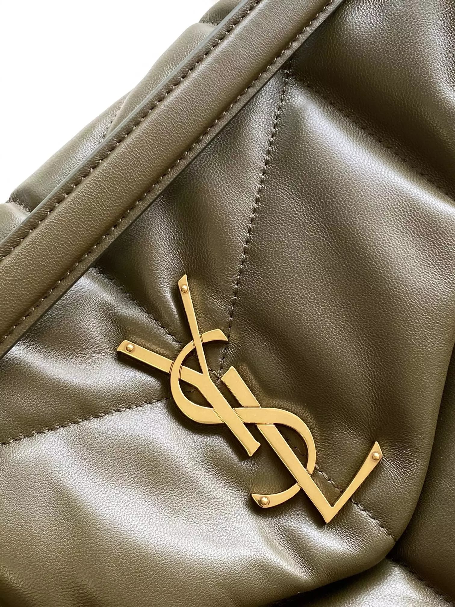 LOULOU PUFFER 绗缝小羊皮包,100%小羊皮制作,手感柔软细腻,犹如怀抱云朵般的感受;经典的Y家logo、链条及扣眼五金均采用金扣拉丝金属材质,哑光雾面的质感及其别致!