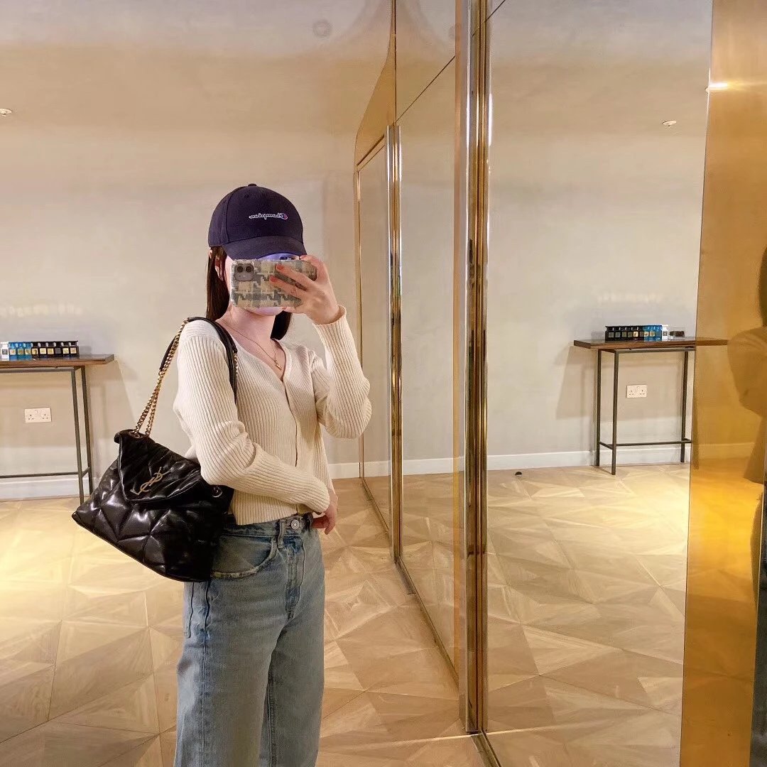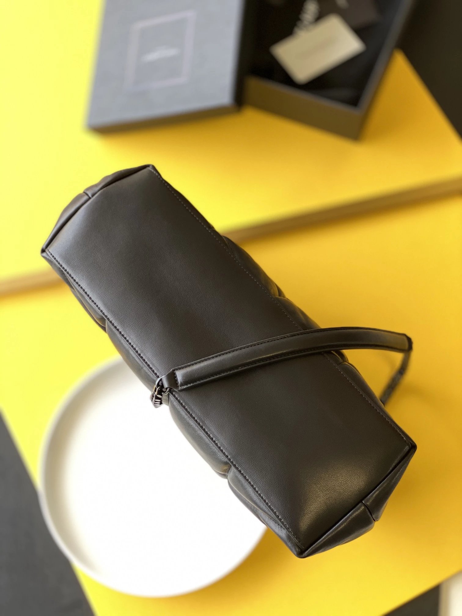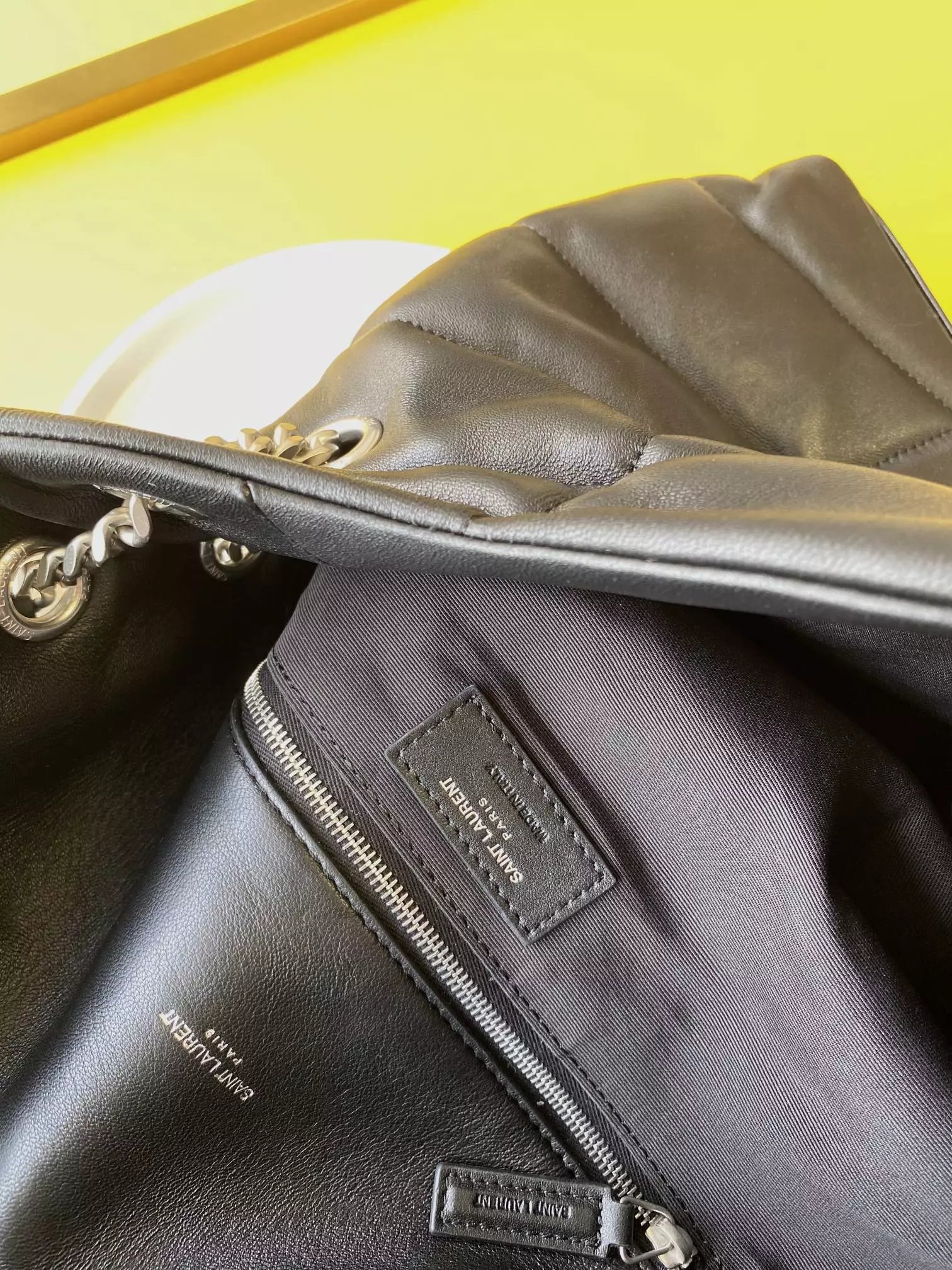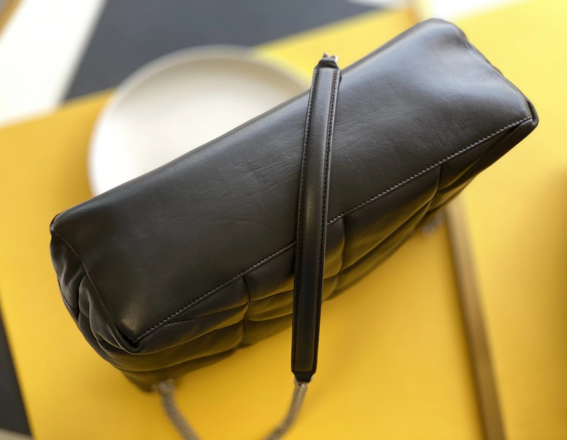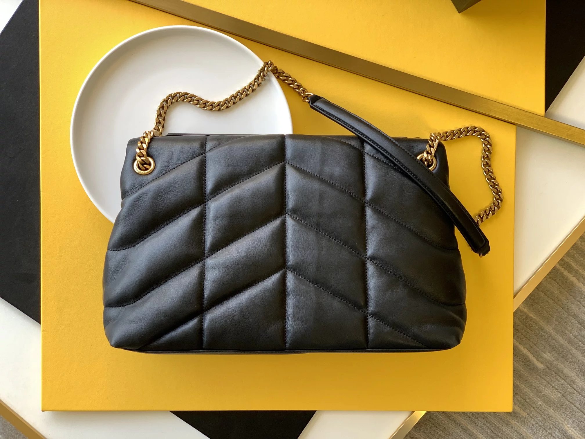 LOULOU PUFFER 绗缝小羊皮包,100%小羊皮制作,手感柔软细腻,犹如怀抱云朵般的感受;经典的Y家logo、链条及扣眼五金均采用金扣拉丝金属材质,哑光雾面的质感及其别致!