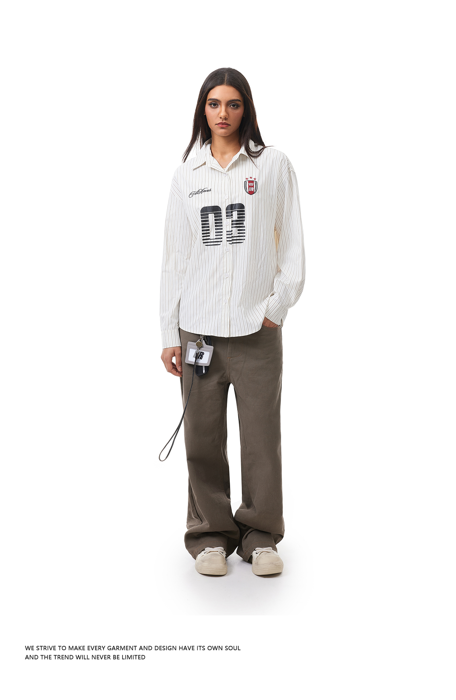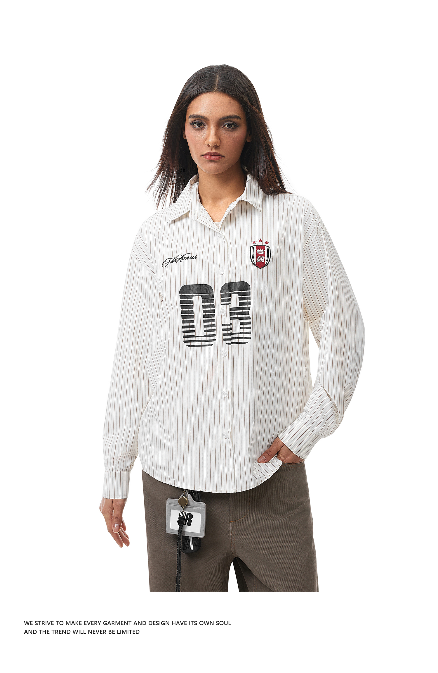 FDR官方店 美式辣妹撞色03印花条纹长袖衬衫女秋季运动宽松衬衣