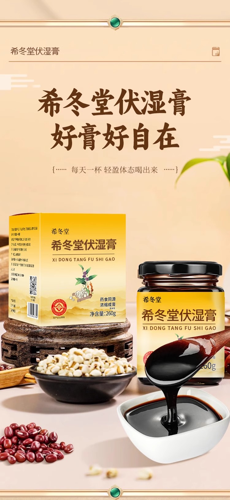 【希冬堂伏湿膏】茯苓薏仁祛湿膏调理脾胃舌苔厚正品官方旗舰店