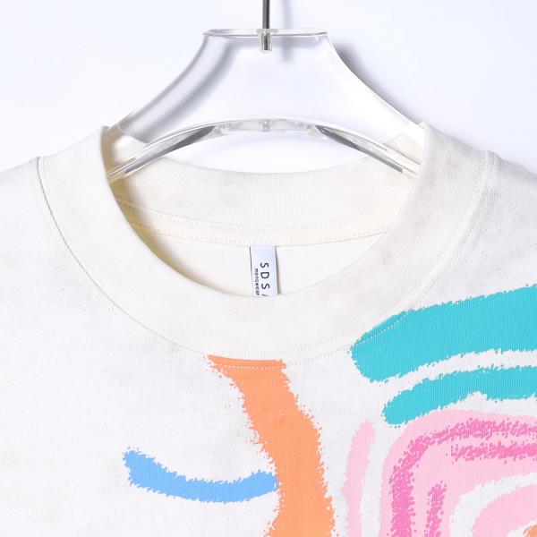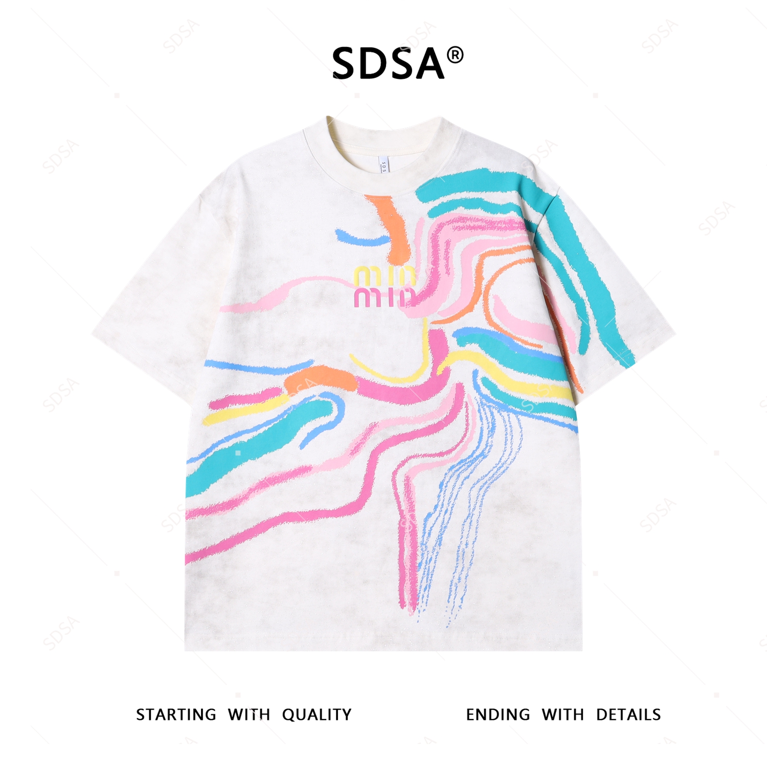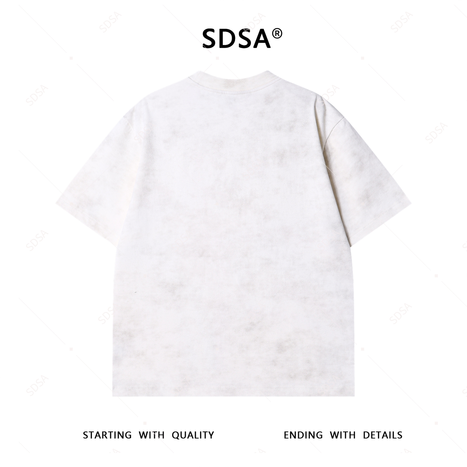T2639夏季高级感新款扎染绒面印花字母圆领短袖T恤宽松潮流套头上衣