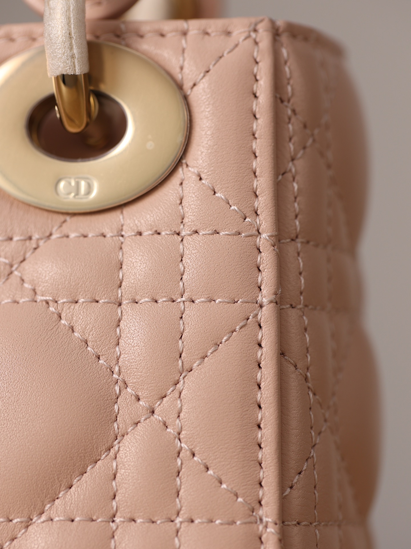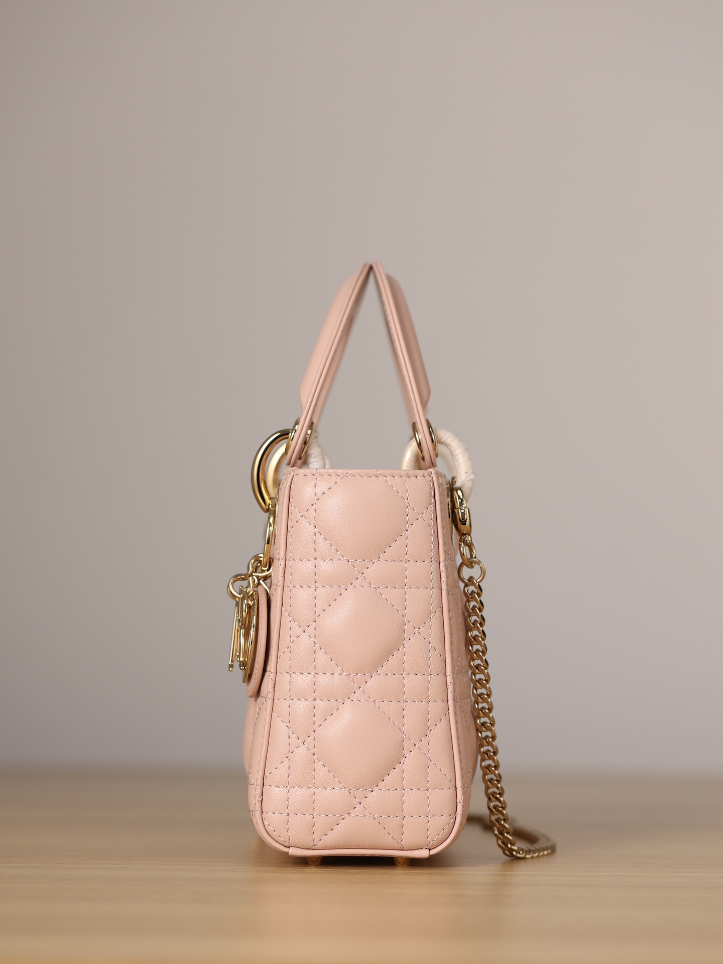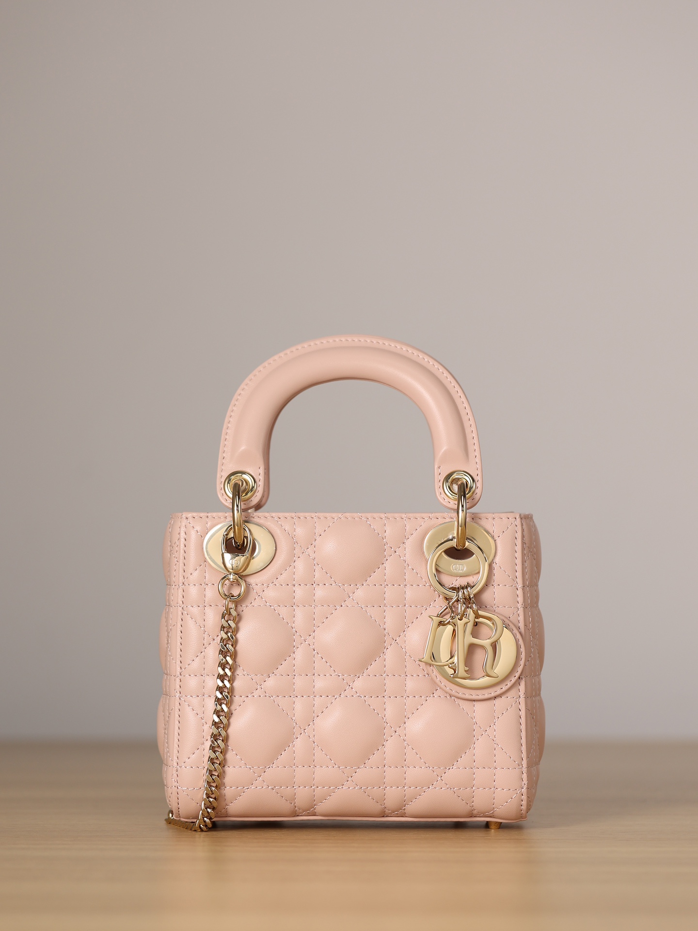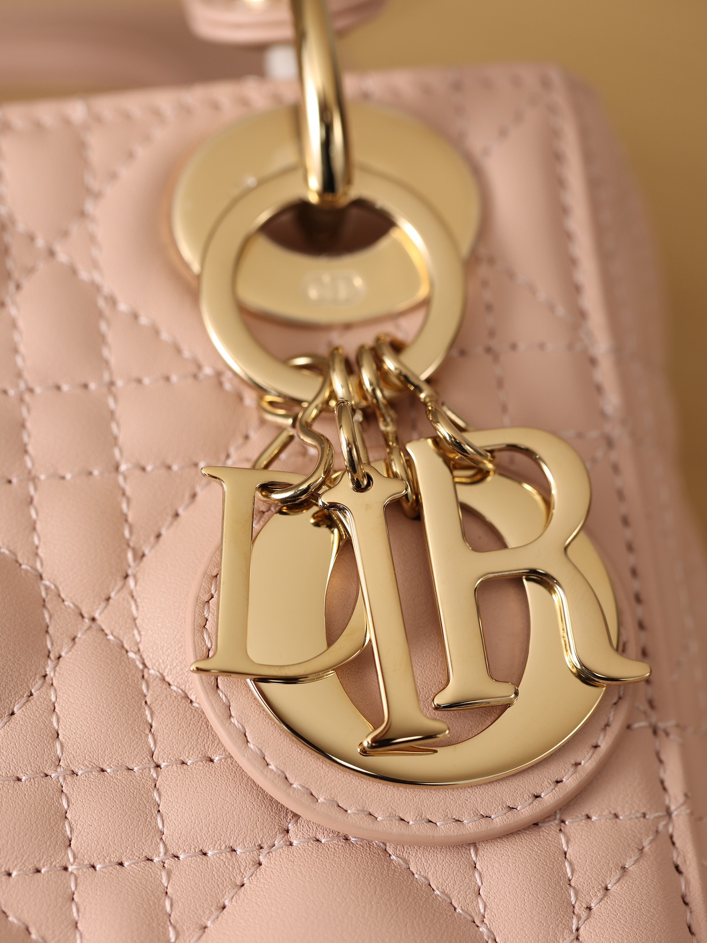 饰以金色饰面金属“D.I.O.R.”吊饰,为精美的轮廓增添一分灵动。