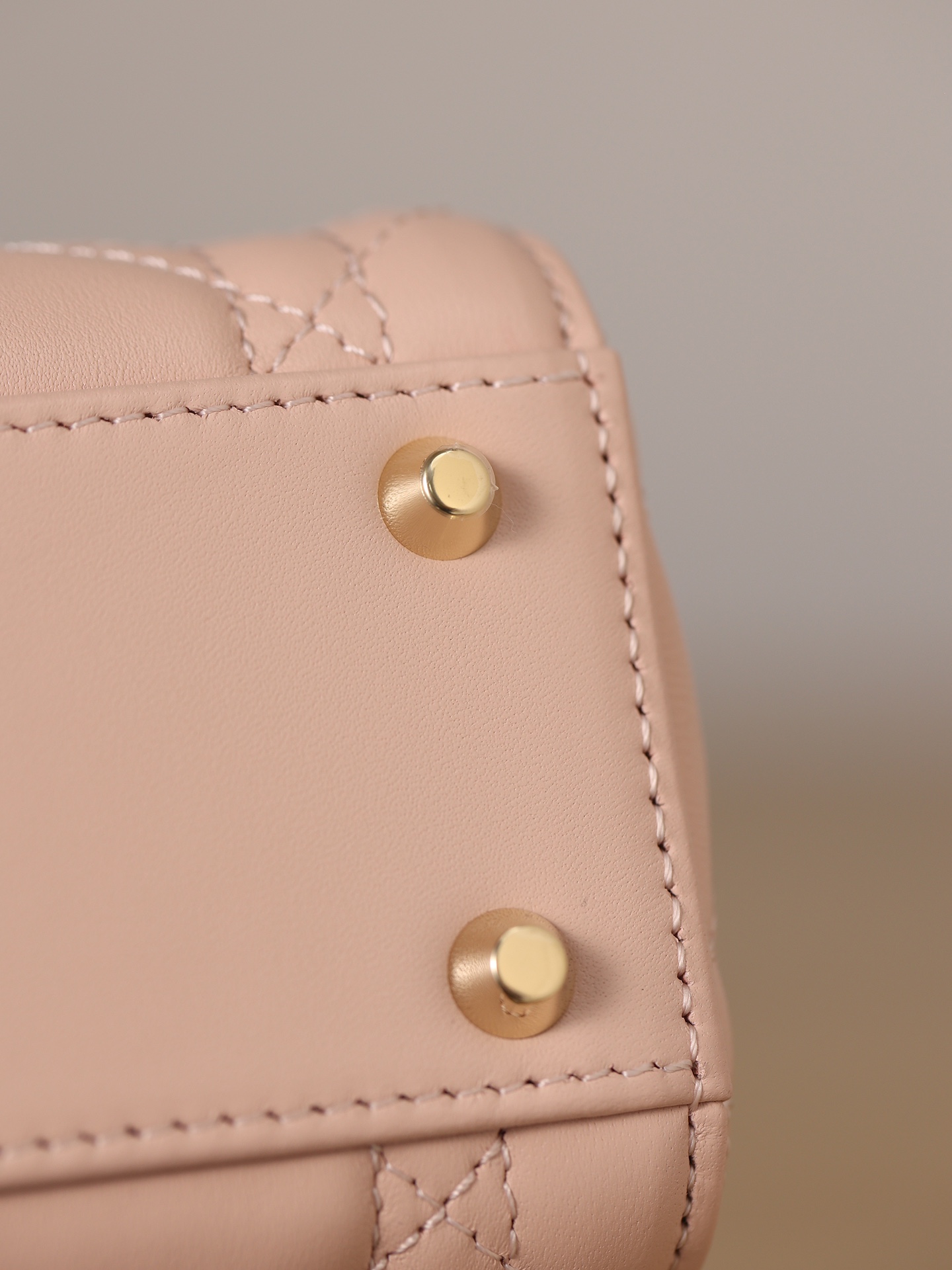 粉色羊皮革藤格纹金扣