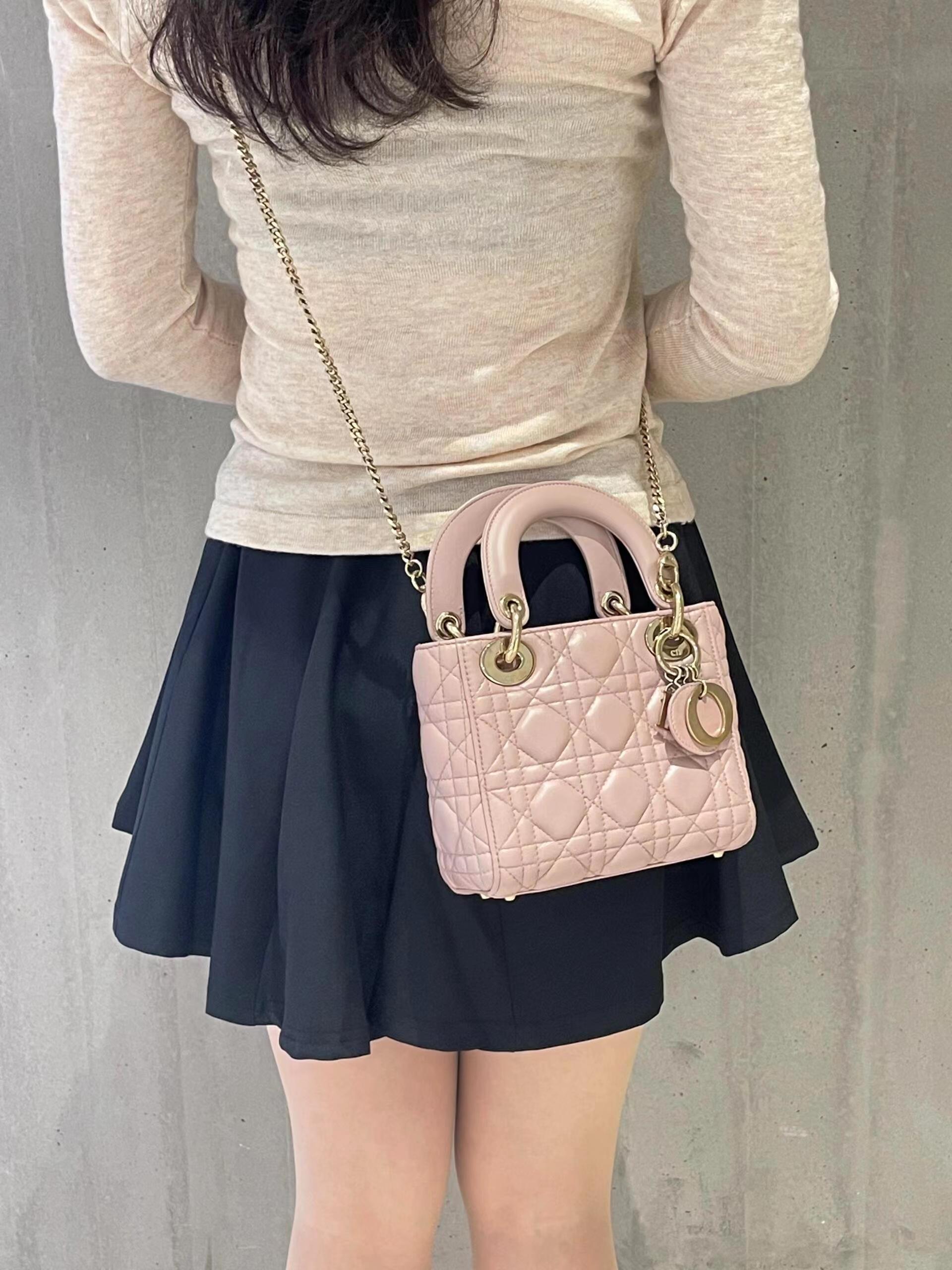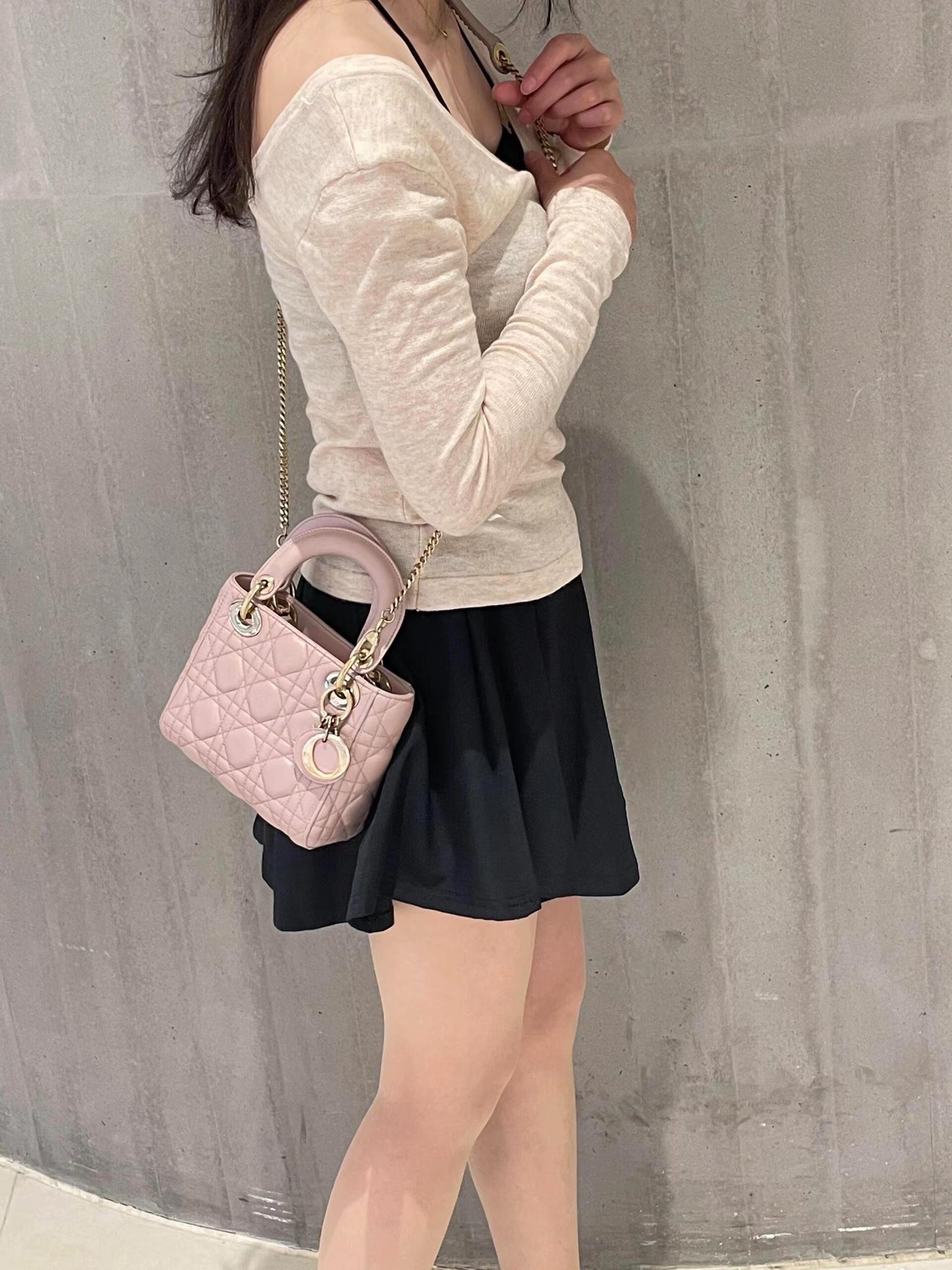 这款 Lady Dior 手袋集中体现了 Dior 对典雅和美丽的深刻洞见。