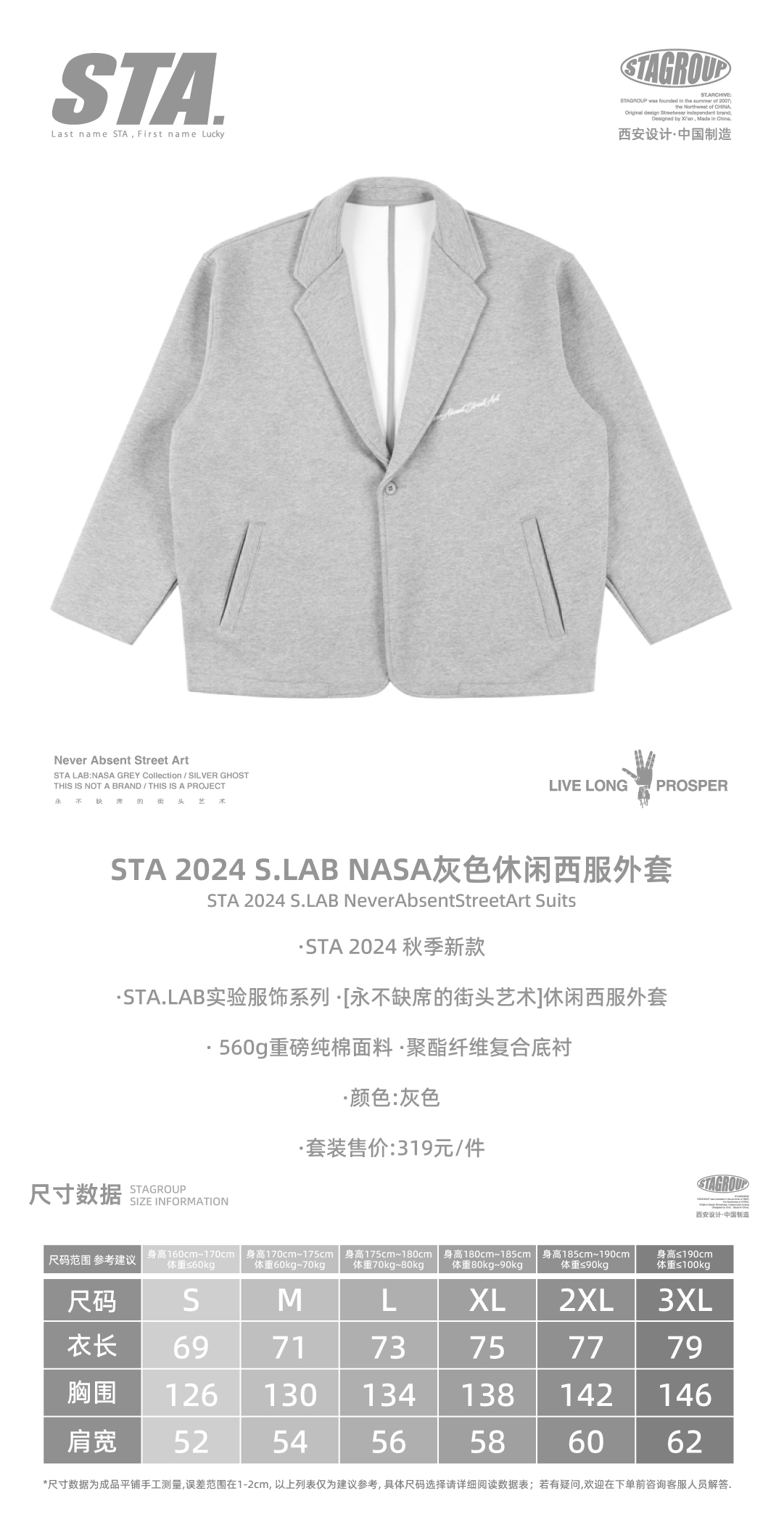 S.LAB | NASA系列灰色休闲西服外套