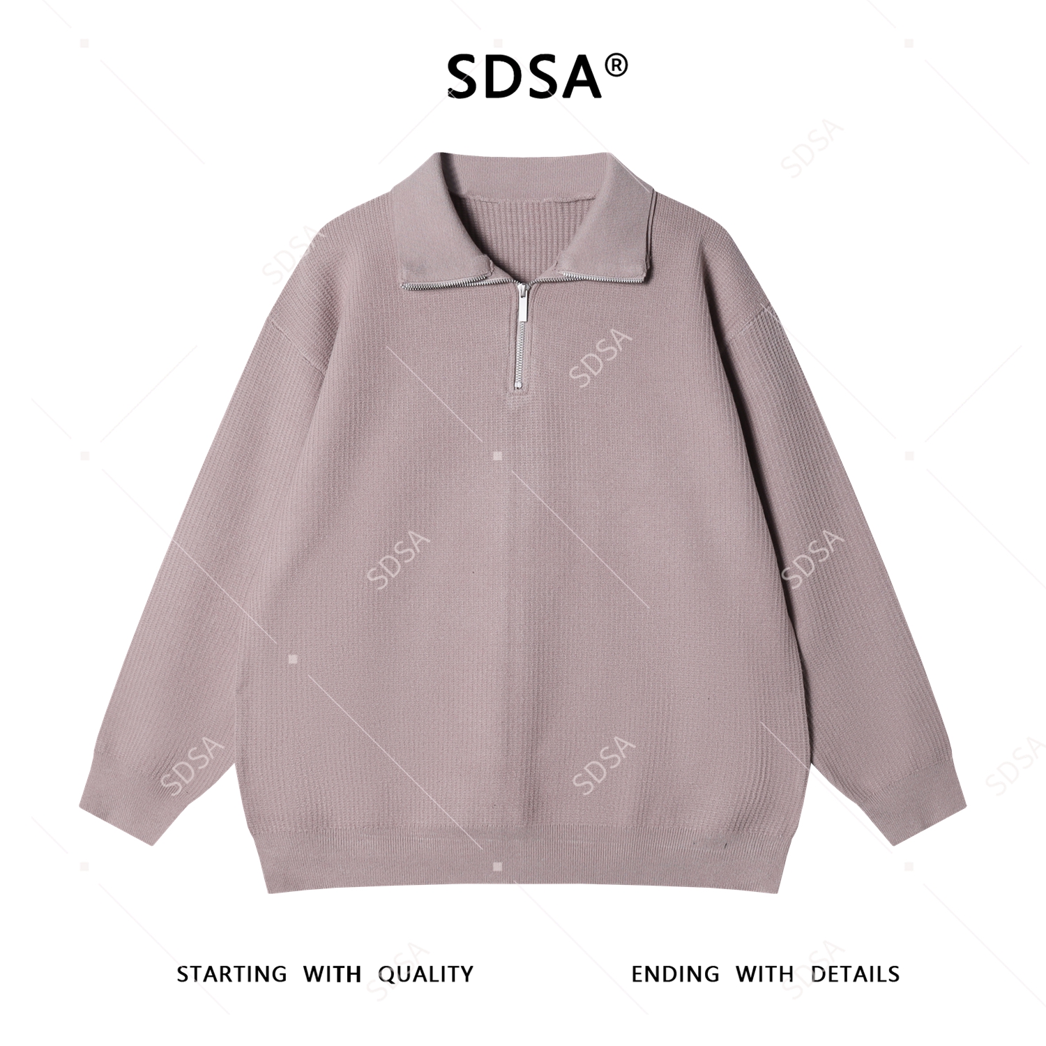 259626SDSA秋冬新款痞帅男装潮牌纯色半拉链翻领毛衣简约休闲套头上衣