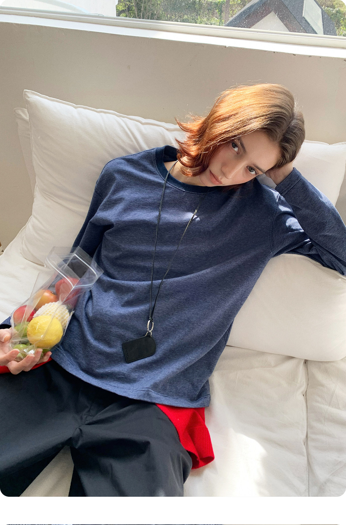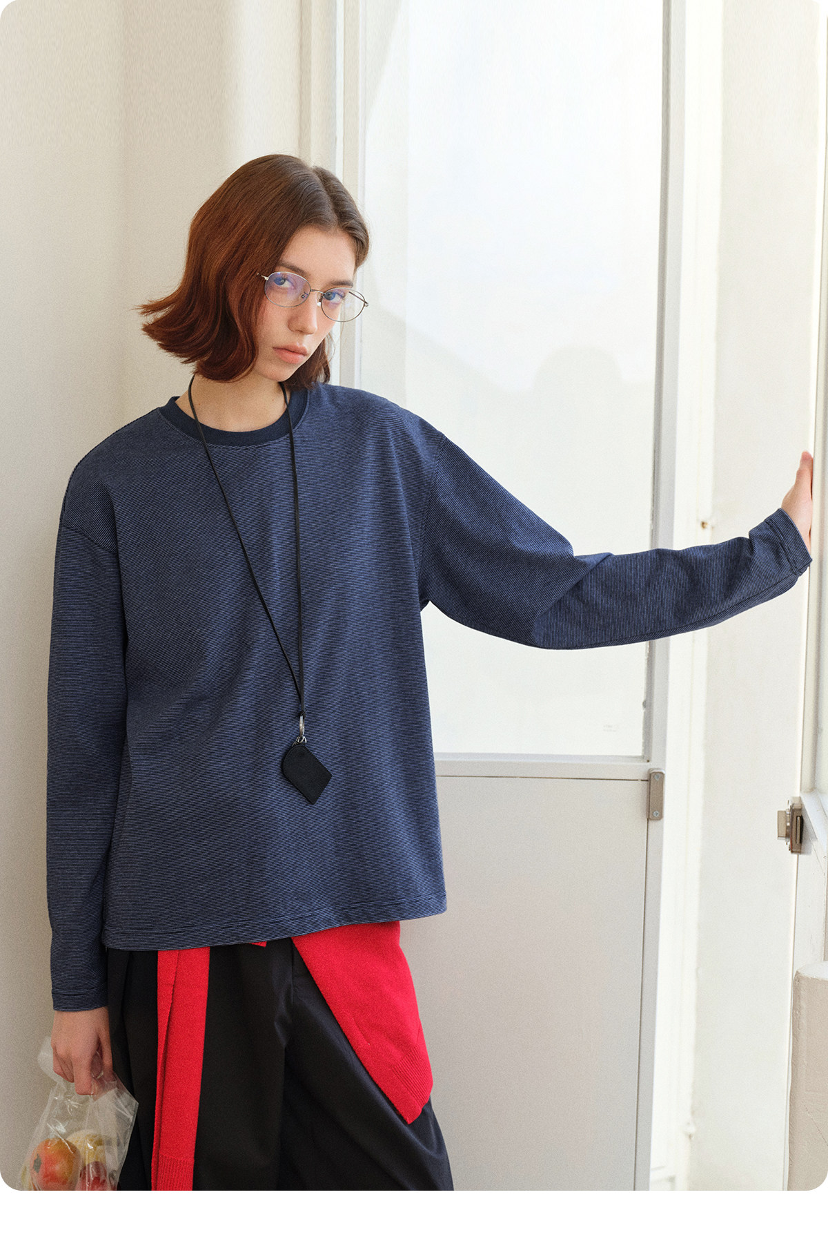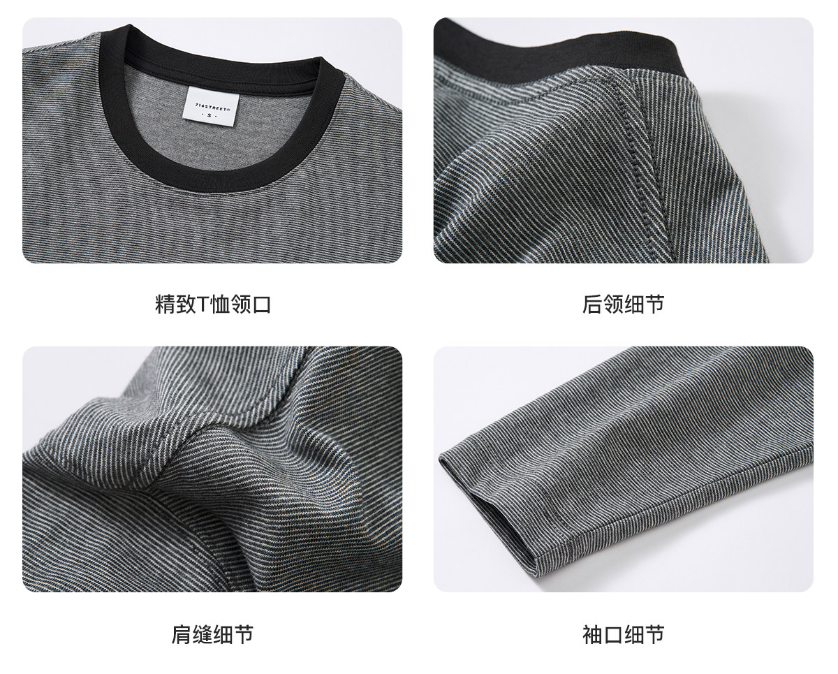 714street细条纹圆领长袖T恤