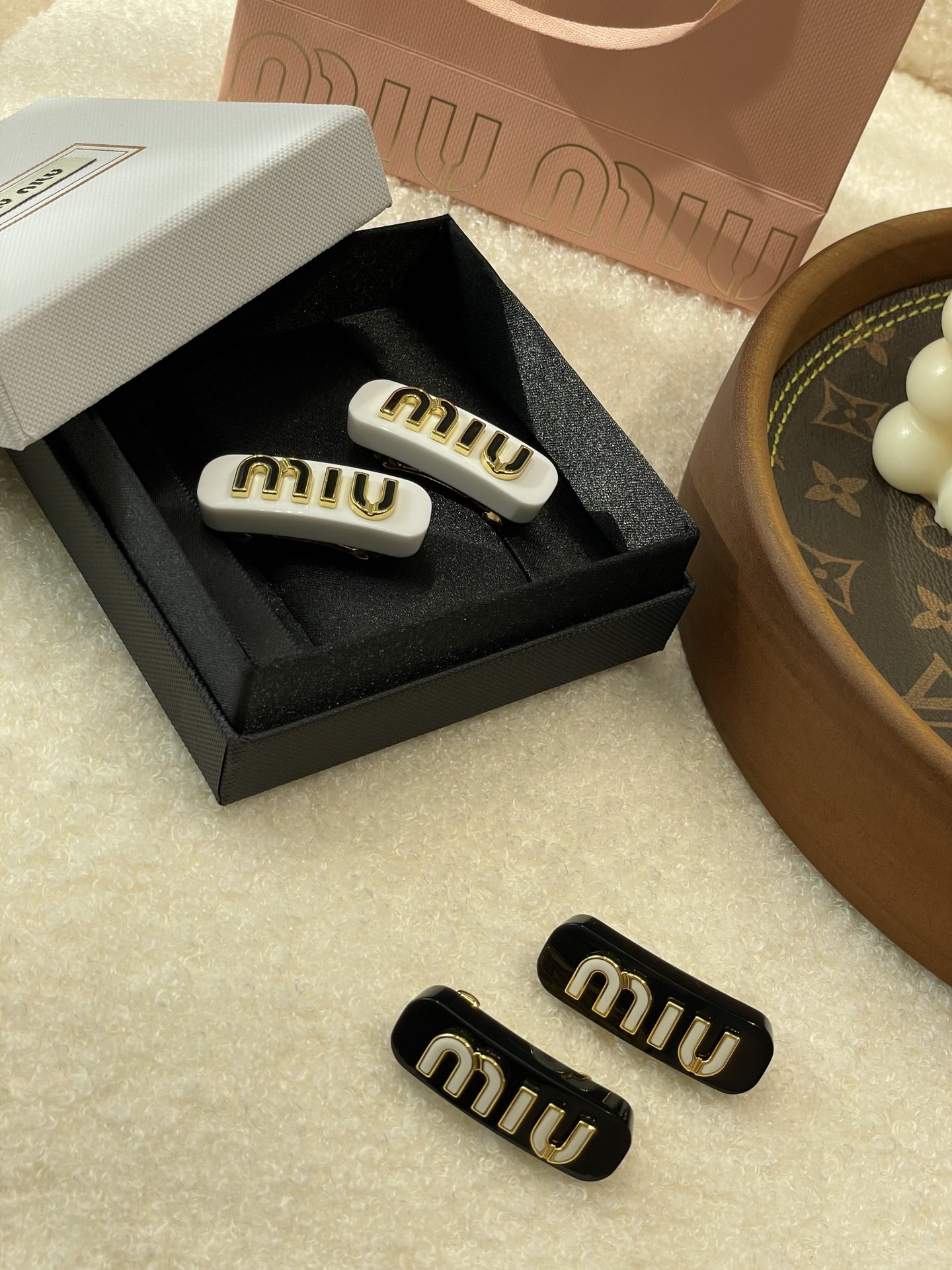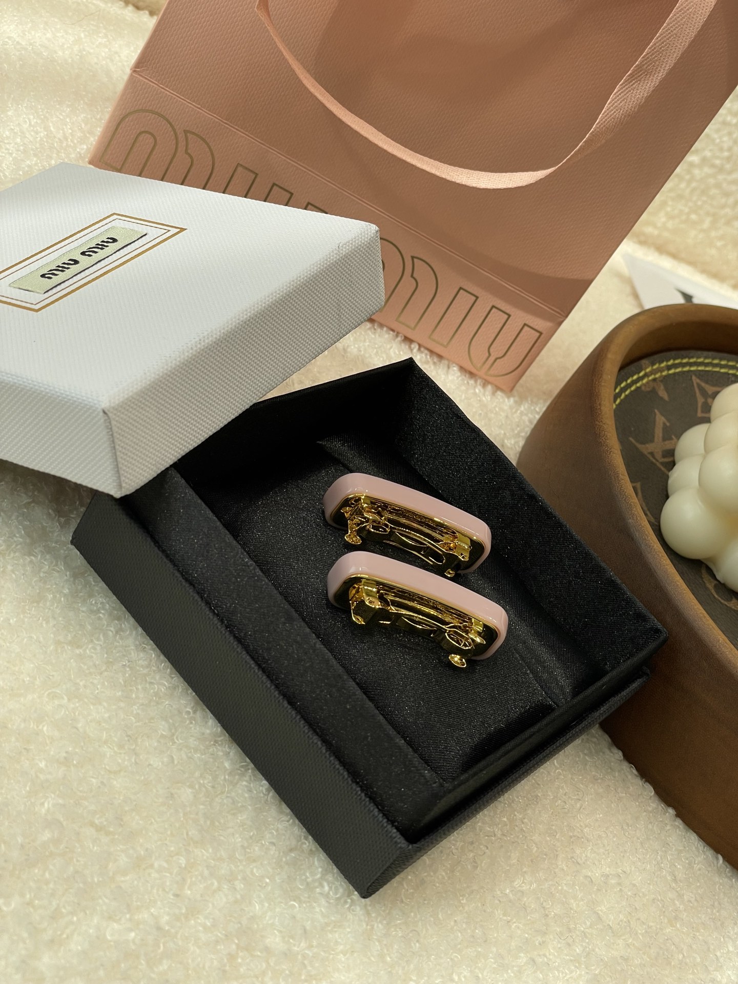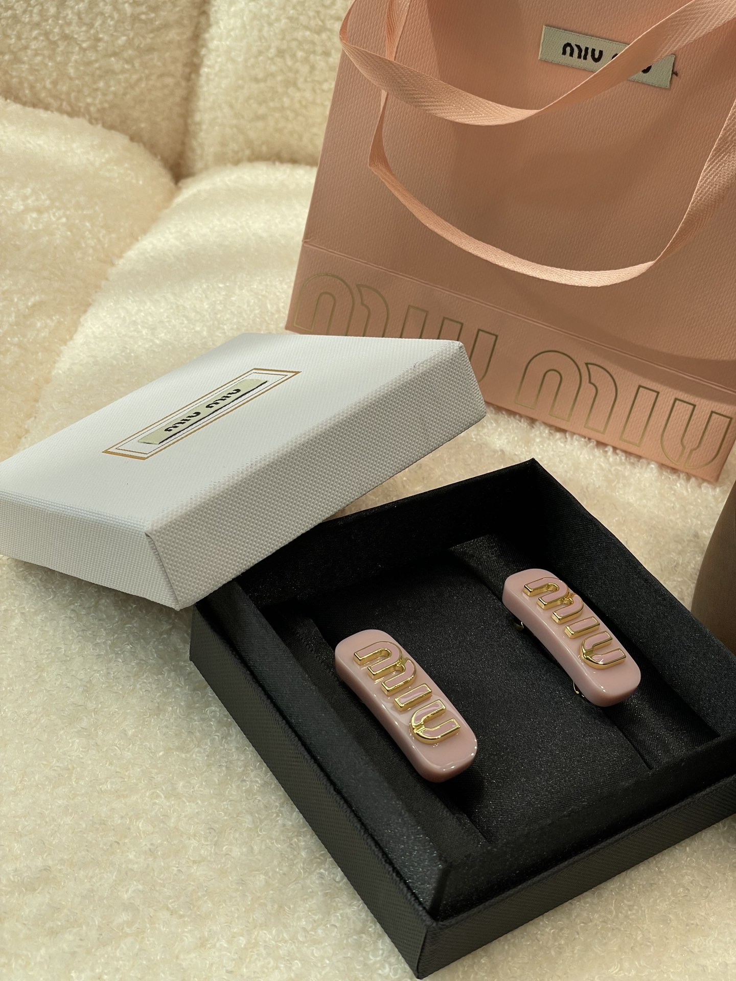 本季必入爆款发夹,新晋断货王,小精致的miu系女孩,做侧边夹或者刘海夹都很不错,闪闪亮亮,俏皮甜心!是永不过时的搭配,刘海可以随时一夹,美哭了,太公主了!对这种冰淇淋粉嫩色系发夹完全没有抵抗力,少女心爆棚!好有青春活力感,我愿称之为高级感小发夹之神!Miumiu永远了解女孩子的少女心,糖果色加上马卡龙配色,简直就是Miu小公主本人!!