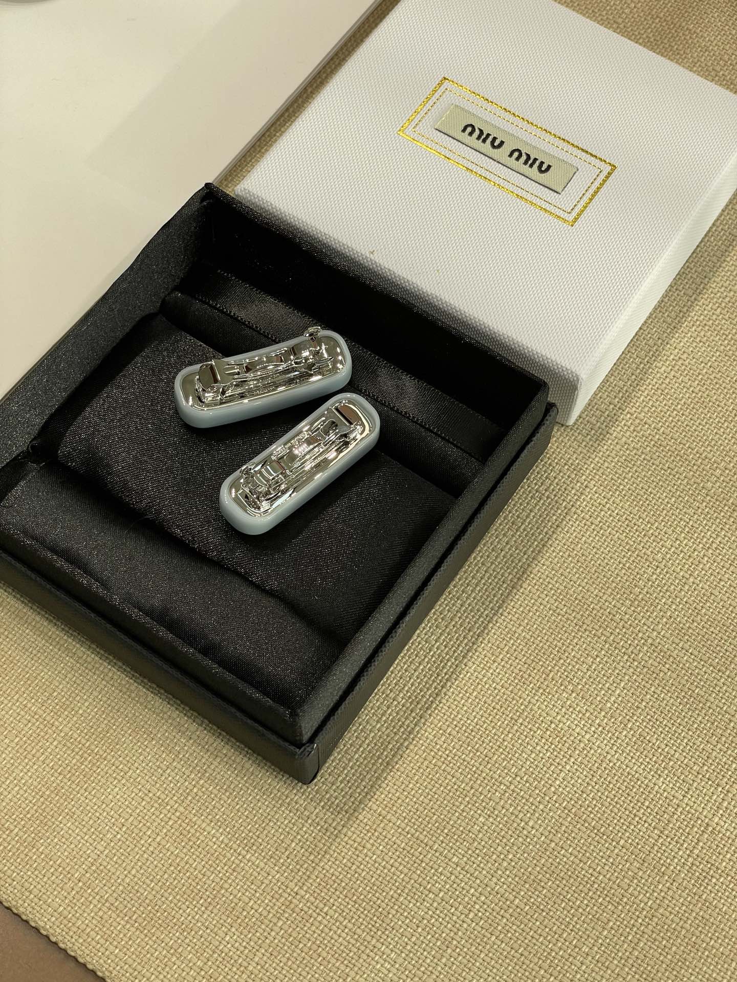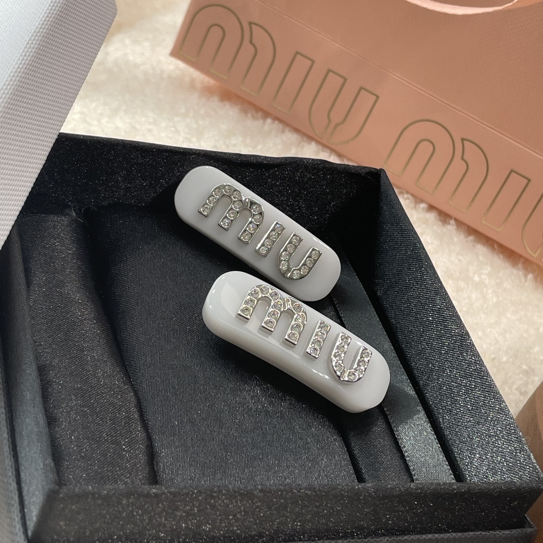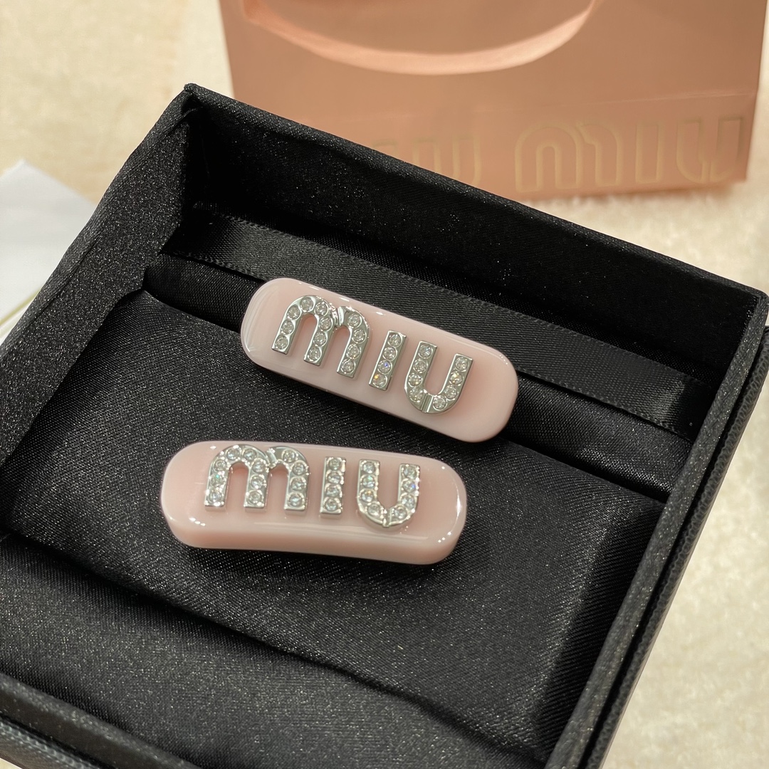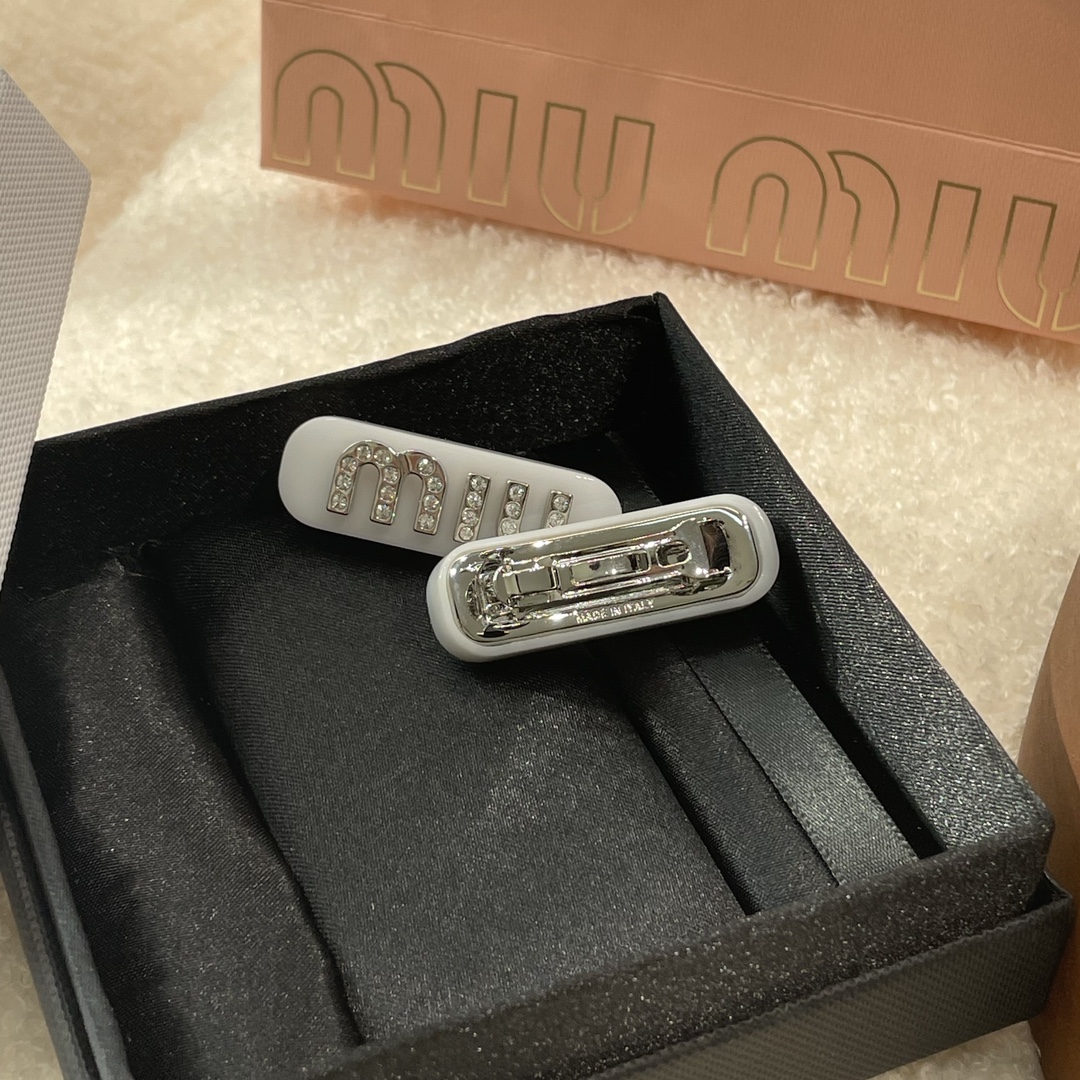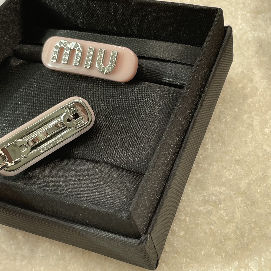 发夹的通体采用黄铜电镀白金工艺、特定树脂玻璃材质、施华洛世奇水晶,有花瓣粉、星际蓝、玳瑁色 白色 ,树脂玻璃材质,1枚发夹使用了24颗施华洛水晶,弥漫精致魅力,MIU字母镶嵌水晶,别致设计,唤起一抹优雅璀璨风情,这个冰淇淋色系很有存在感,每个颜色都有不同的气质和心情,嫩嫩的颜色甜美miu系女孩get,刘海尴尬期神器!!