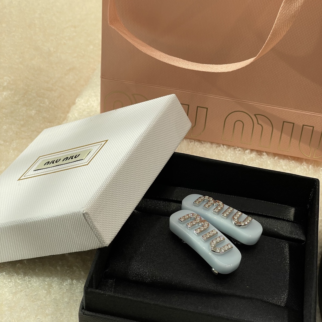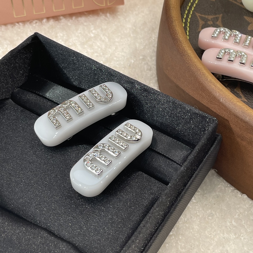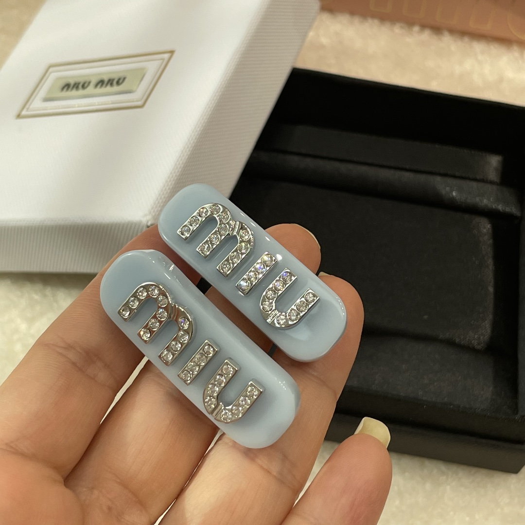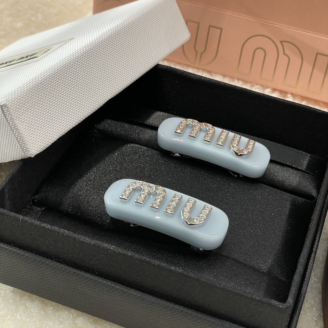MIUMIU字母水晶树脂玻璃侧边夹,官网两只售价5300rmb!张元英、金雪炫佩戴同款,冰淇淋般的色系,Miumiu新色系发夹好温柔,水钻字母印刻在发夹上,一整个闪耀住!元气甜美少女的发夹,这简直就是“梦中情夹”,适合夏天出游的小可爱复古奶油色系,花瓣粉、星际蓝、玳瑁色太好看了!MIU字母镶嵌着小水钻白净透亮,富家甜美少女感拿捏了!!