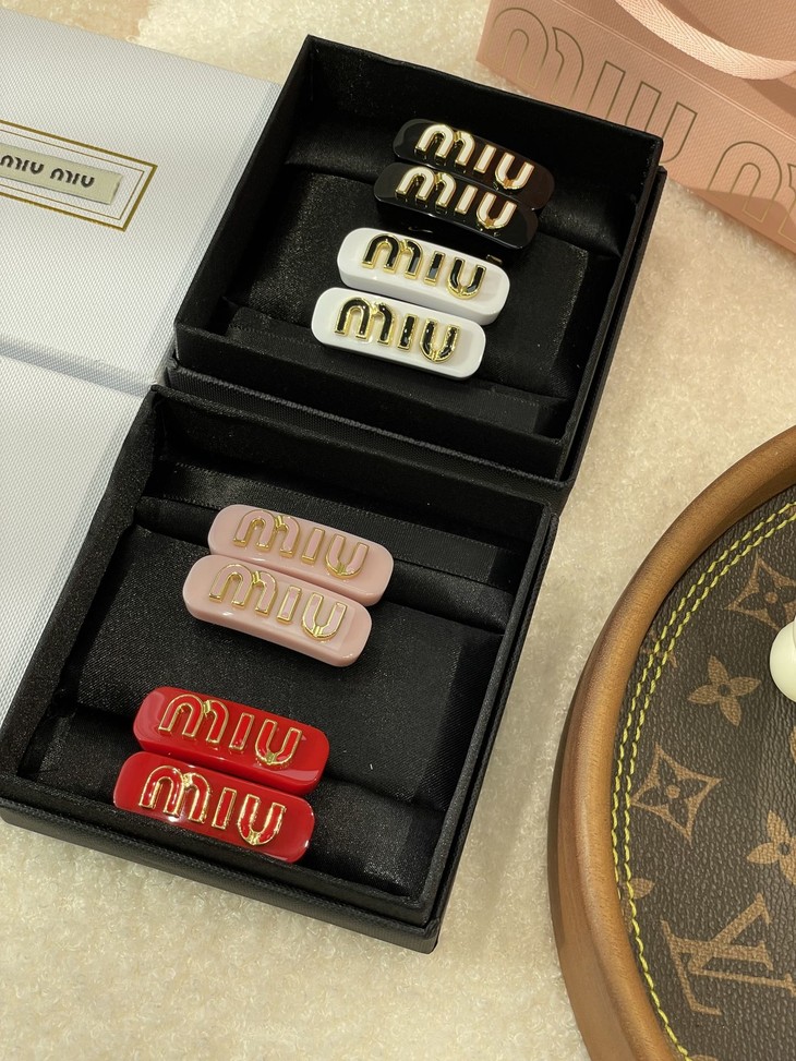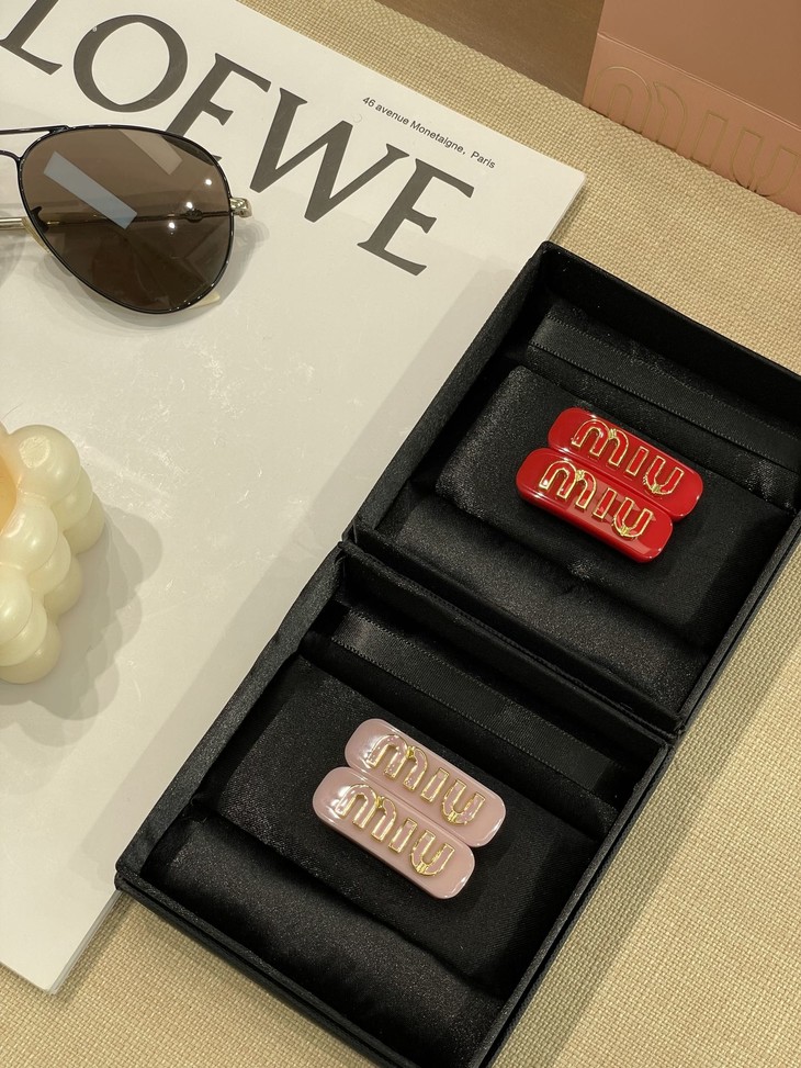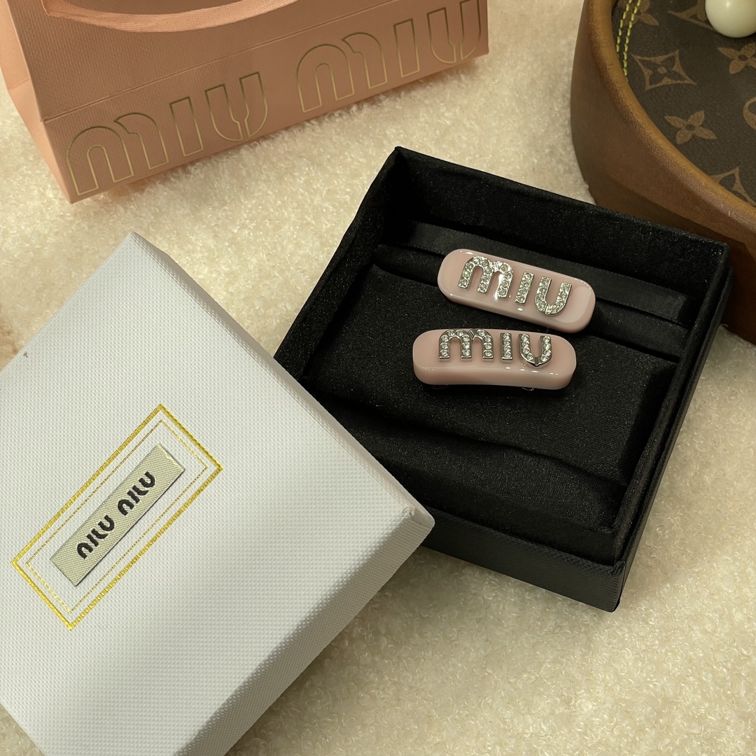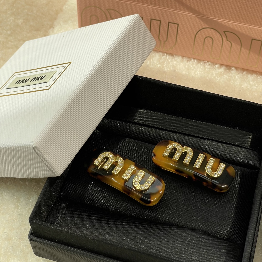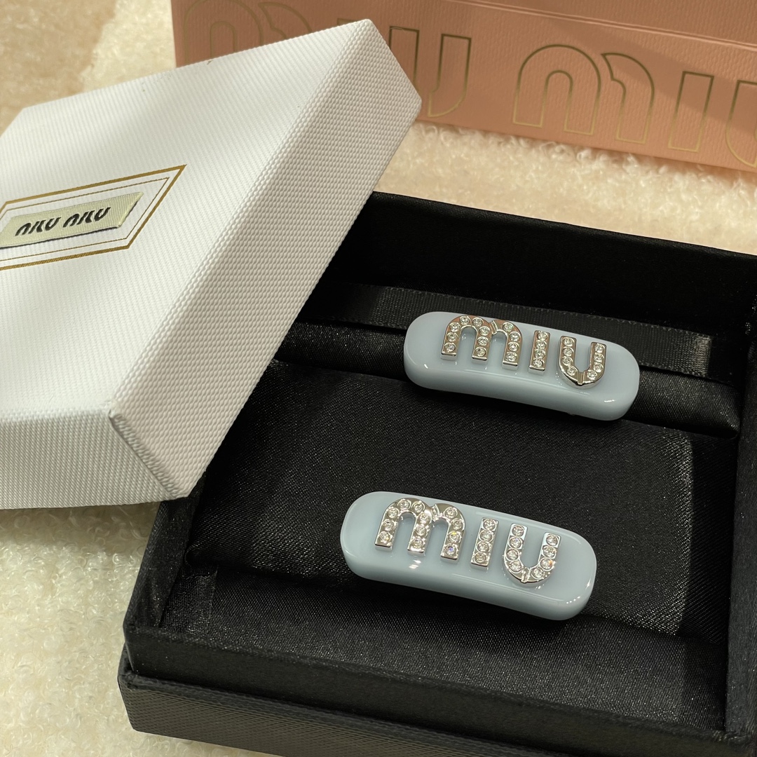 MIUMIU字母水晶树脂玻璃侧边夹,官网两只售价5300rmb!张元英、金雪炫佩戴同款,冰淇淋般的色系,Miumiu新色系发夹好温柔,水钻字母印刻在发夹上,一整个闪耀住!元气甜美少女的发夹,这简直就是“梦中情夹”,适合夏天出游的小可爱复古奶油色系,花瓣粉、星际蓝、玳瑁色太好看了!MIU字母镶嵌着小水钻白净透亮,富家甜美少女感拿捏了!!