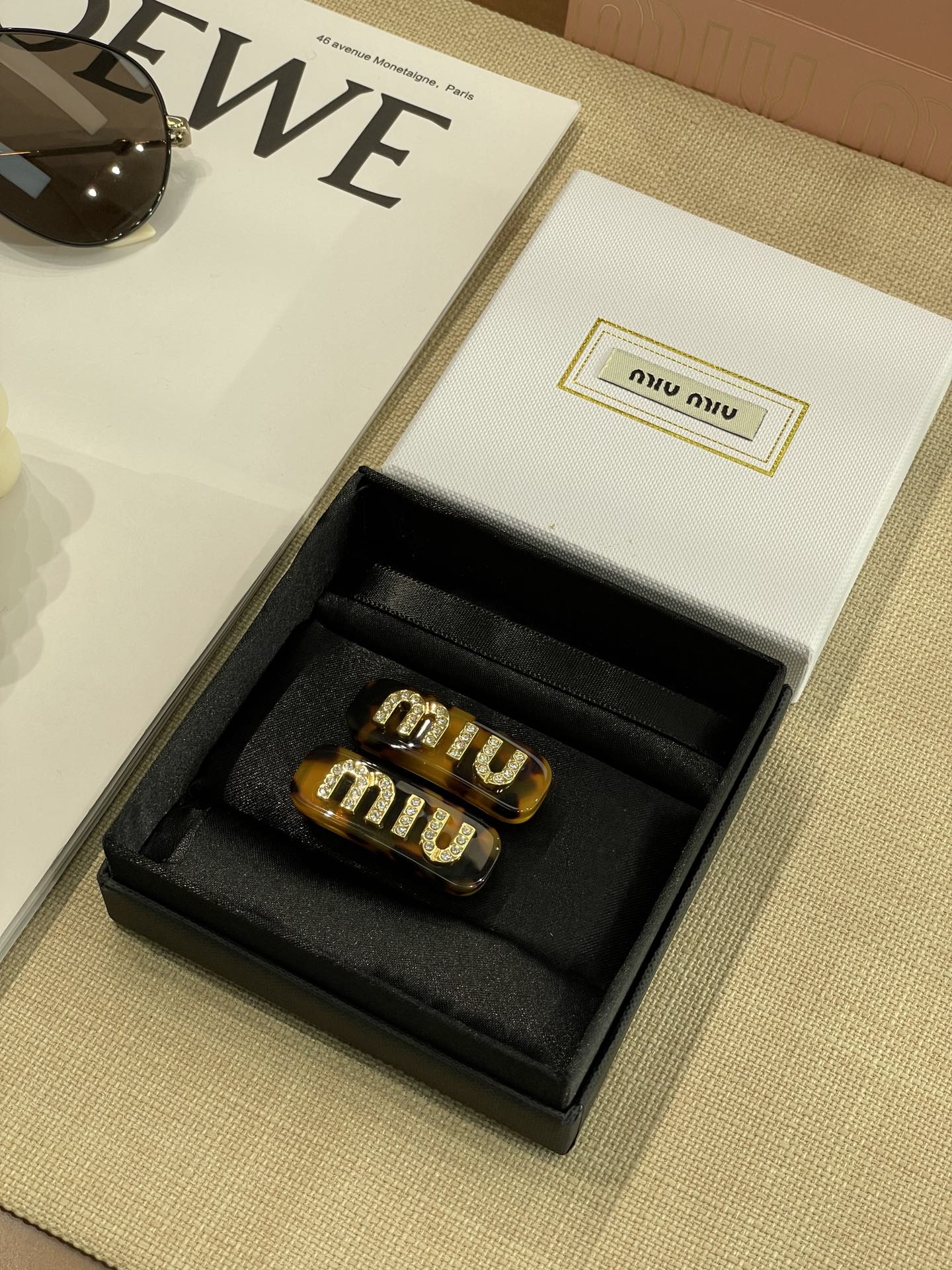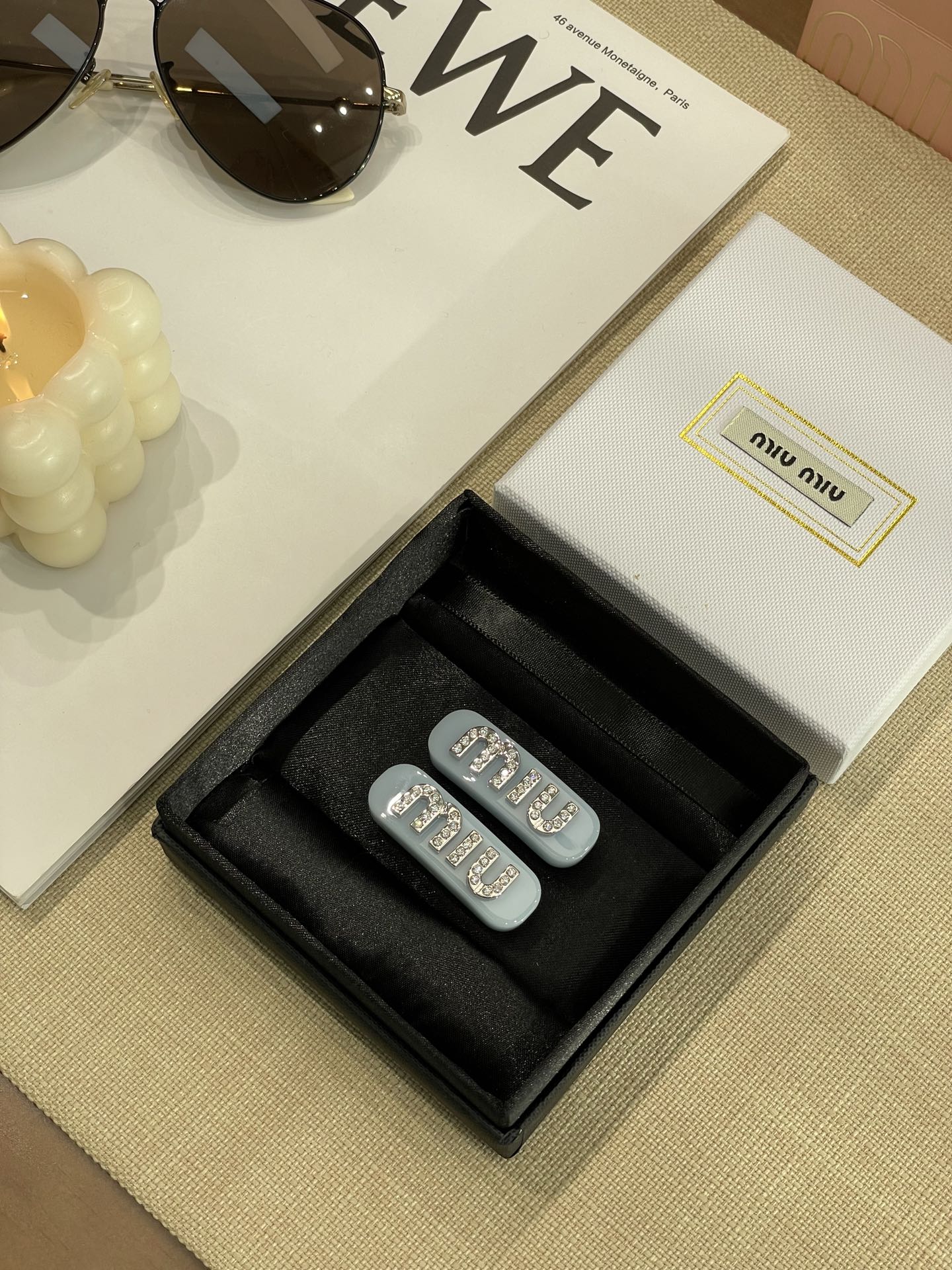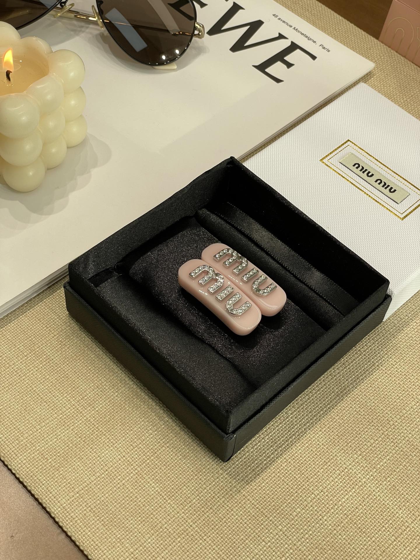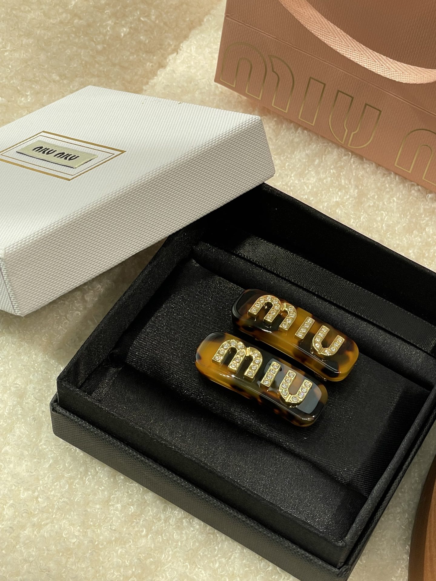MIUMIU字母水晶树脂玻璃侧边夹,官网两只售价5300rmb!张元英、金雪炫佩戴同款,冰淇淋般的色系,Miumiu新色系发夹好温柔,水钻字母印刻在发夹上,一整个闪耀住!元气甜美少女的发夹,这简直就是“梦中情夹”,适合夏天出游的小可爱复古奶油色系,花瓣粉、星际蓝、玳瑁色太好看了!MIU字母镶嵌着小水钻白净透亮,富家甜美少女感拿捏了!!