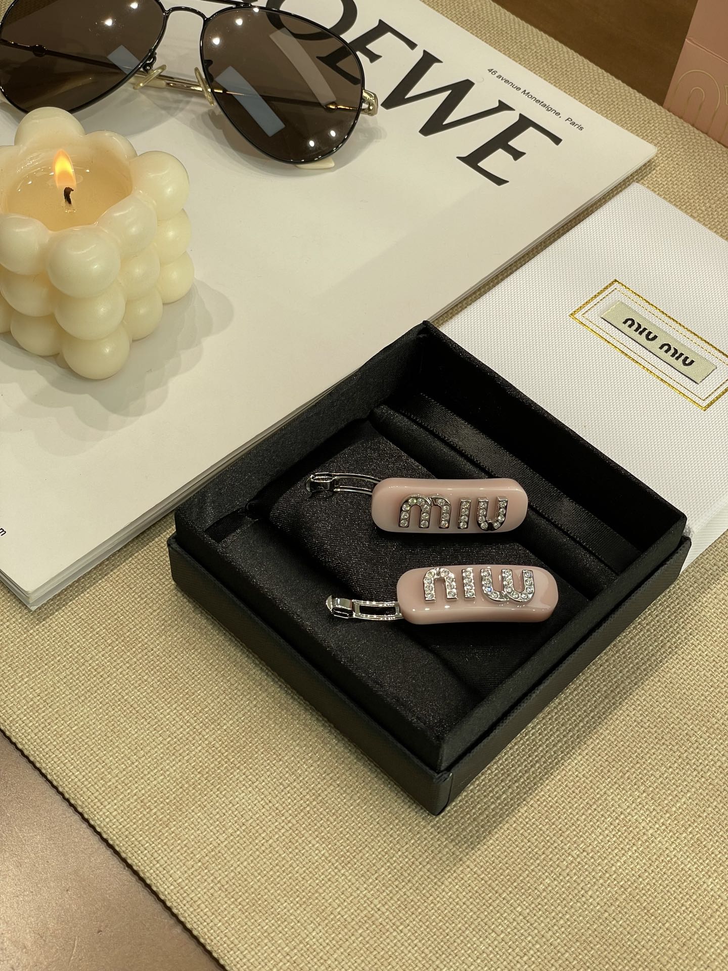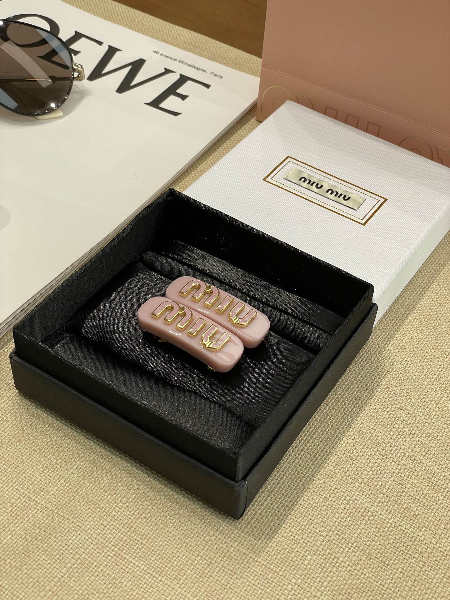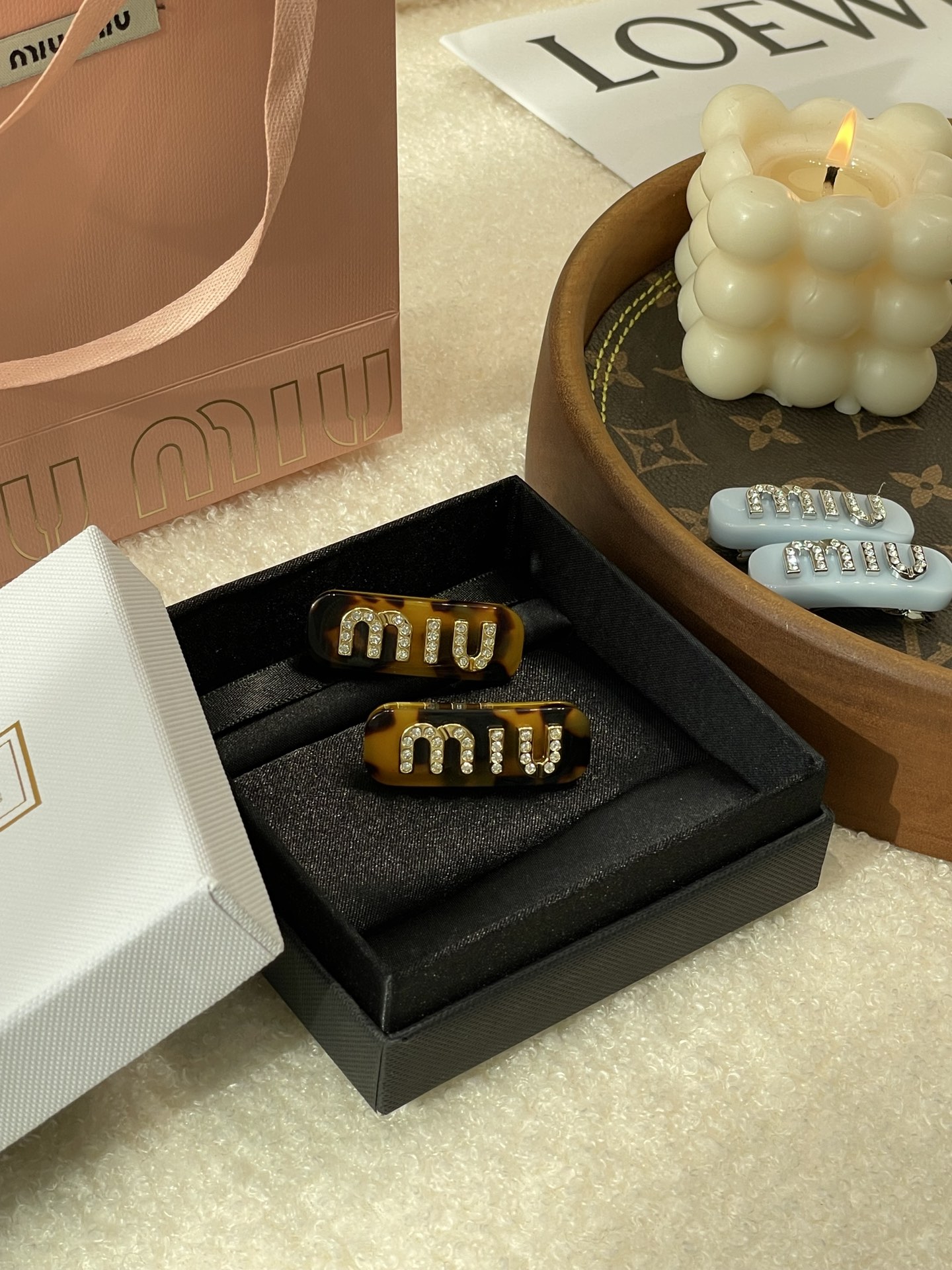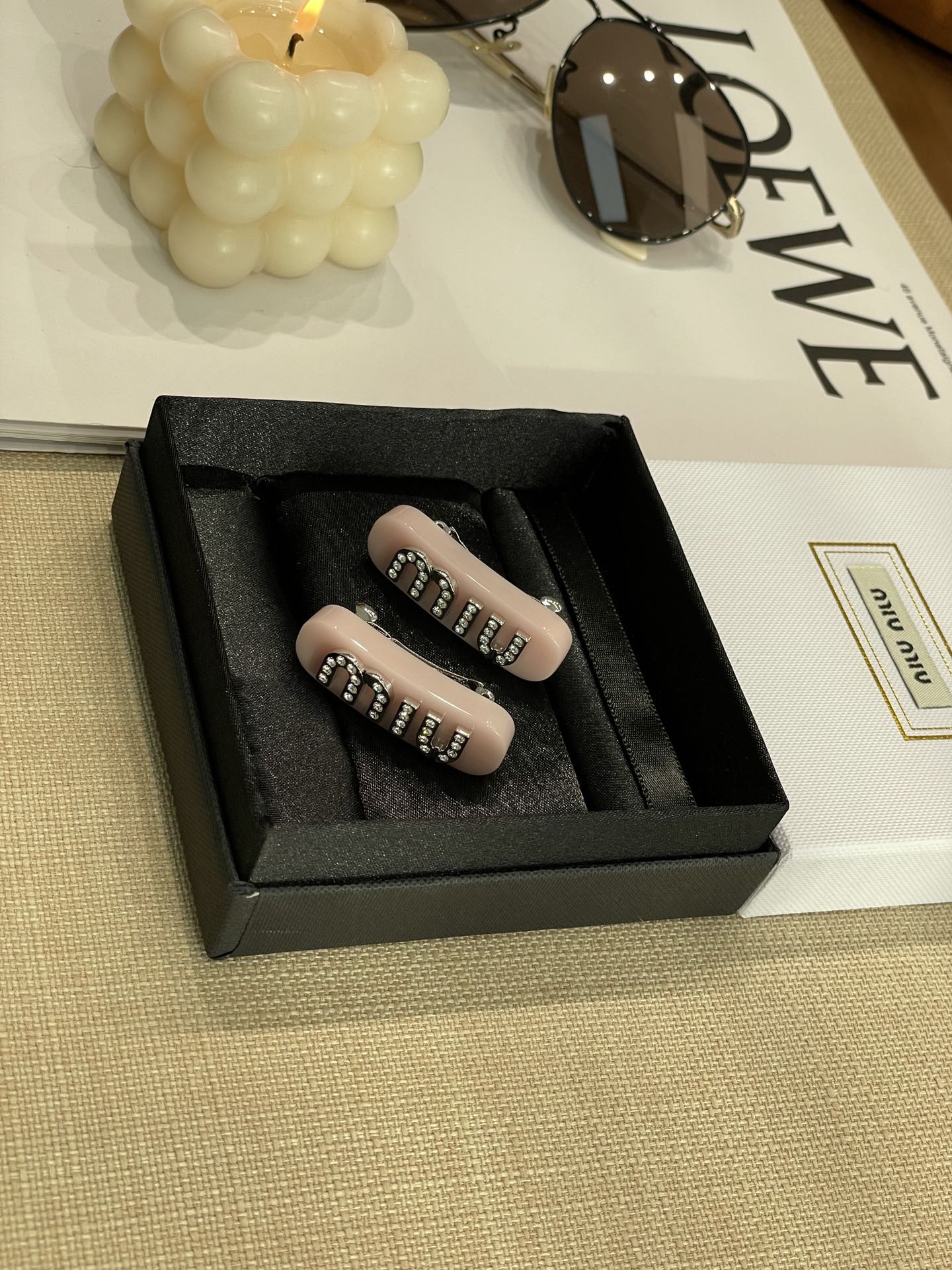 MIUMIU字母水晶树脂玻璃侧边夹,官网两只售价5300rmb!张元英、金雪炫佩戴同款,冰淇淋般的色系,Miumiu新色系发夹好温柔,水钻字母印刻在发夹上,一整个闪耀住!元气甜美少女的发夹,这简直就是“梦中情夹”,适合夏天出游的小可爱复古奶油色系,花瓣粉、星际蓝、玳瑁色太好看了!MIU字母镶嵌着小水钻白净透亮,富家甜美少女感拿捏了!!