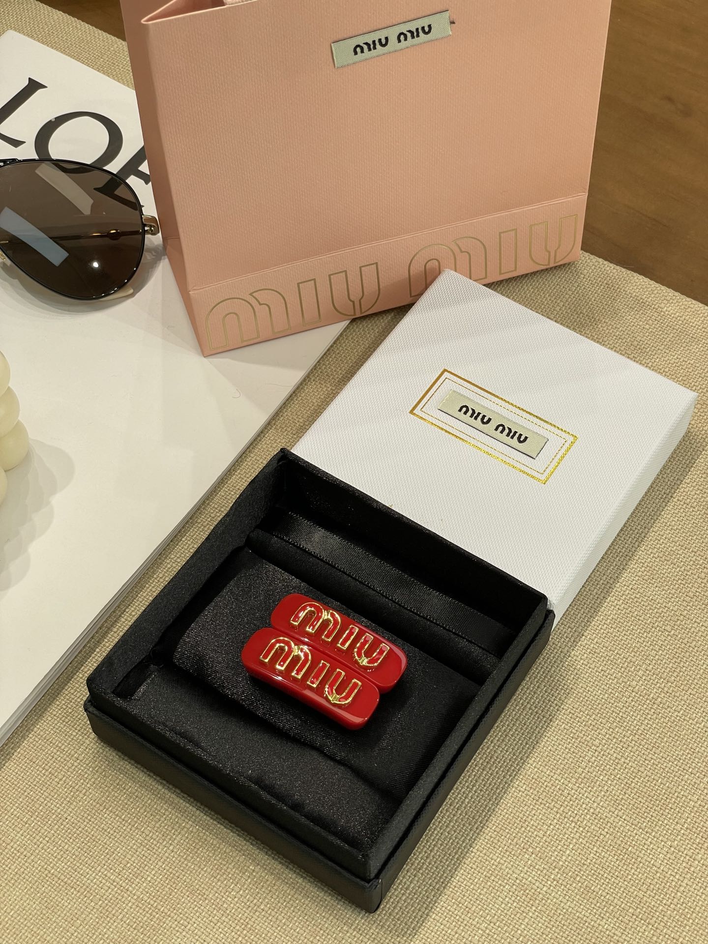MIU MIU 张元英同款MIU字母水晶树脂玻璃对夹