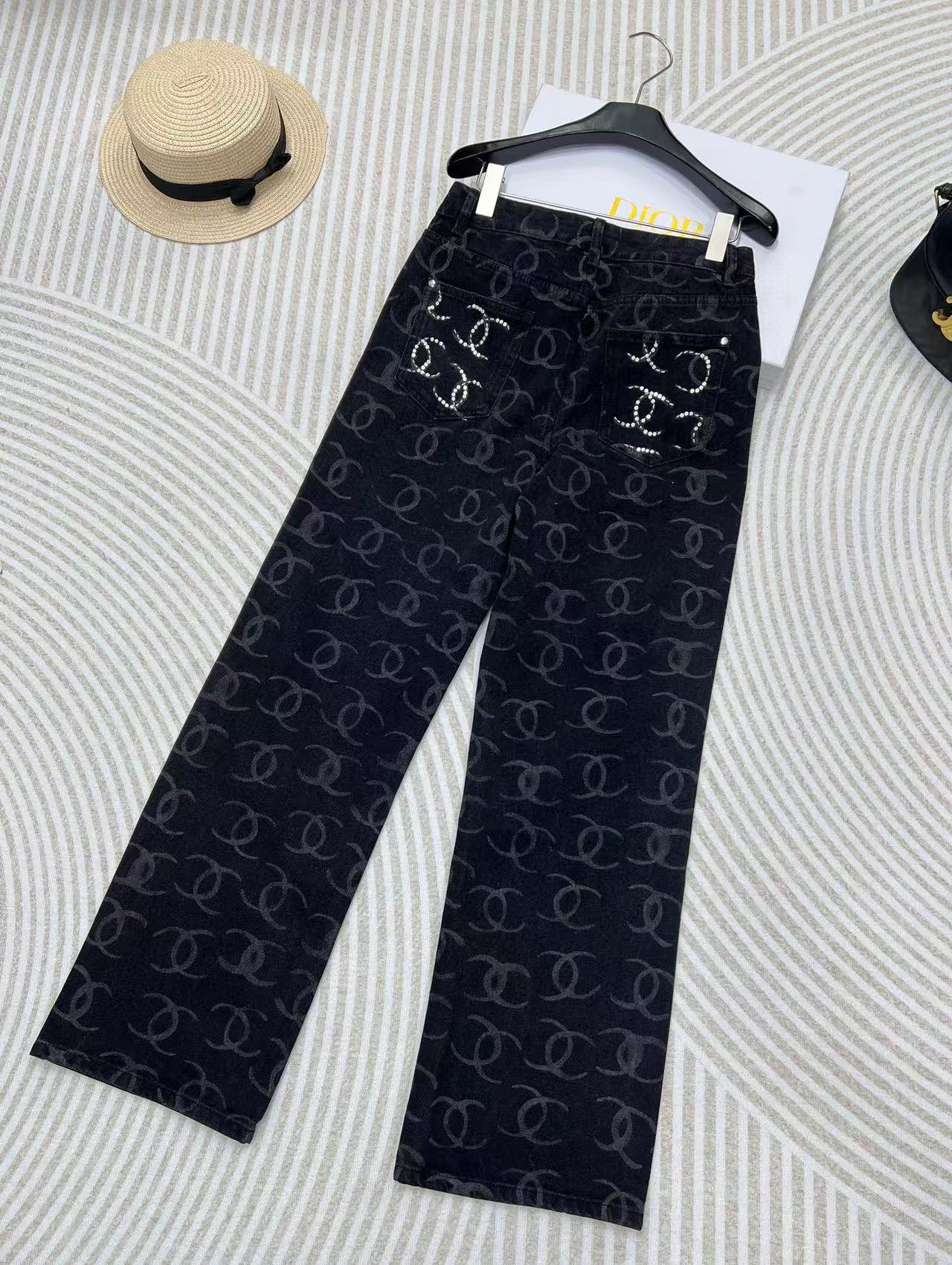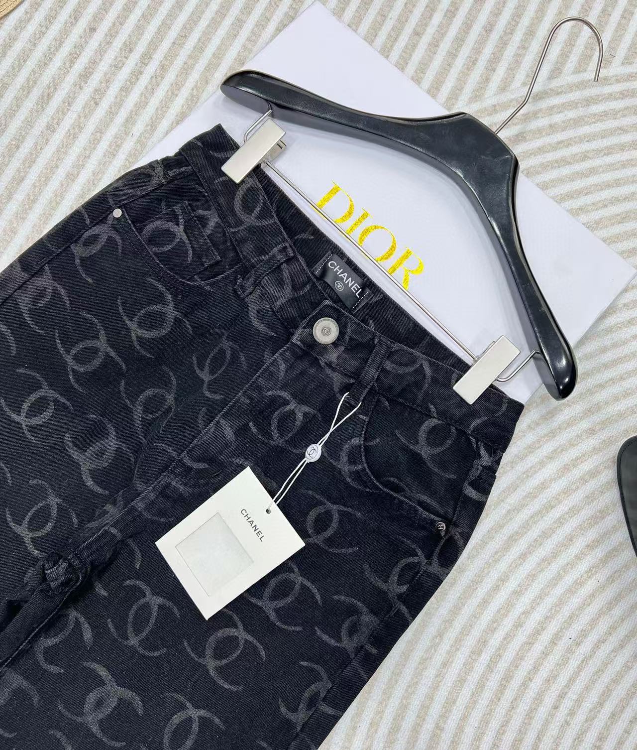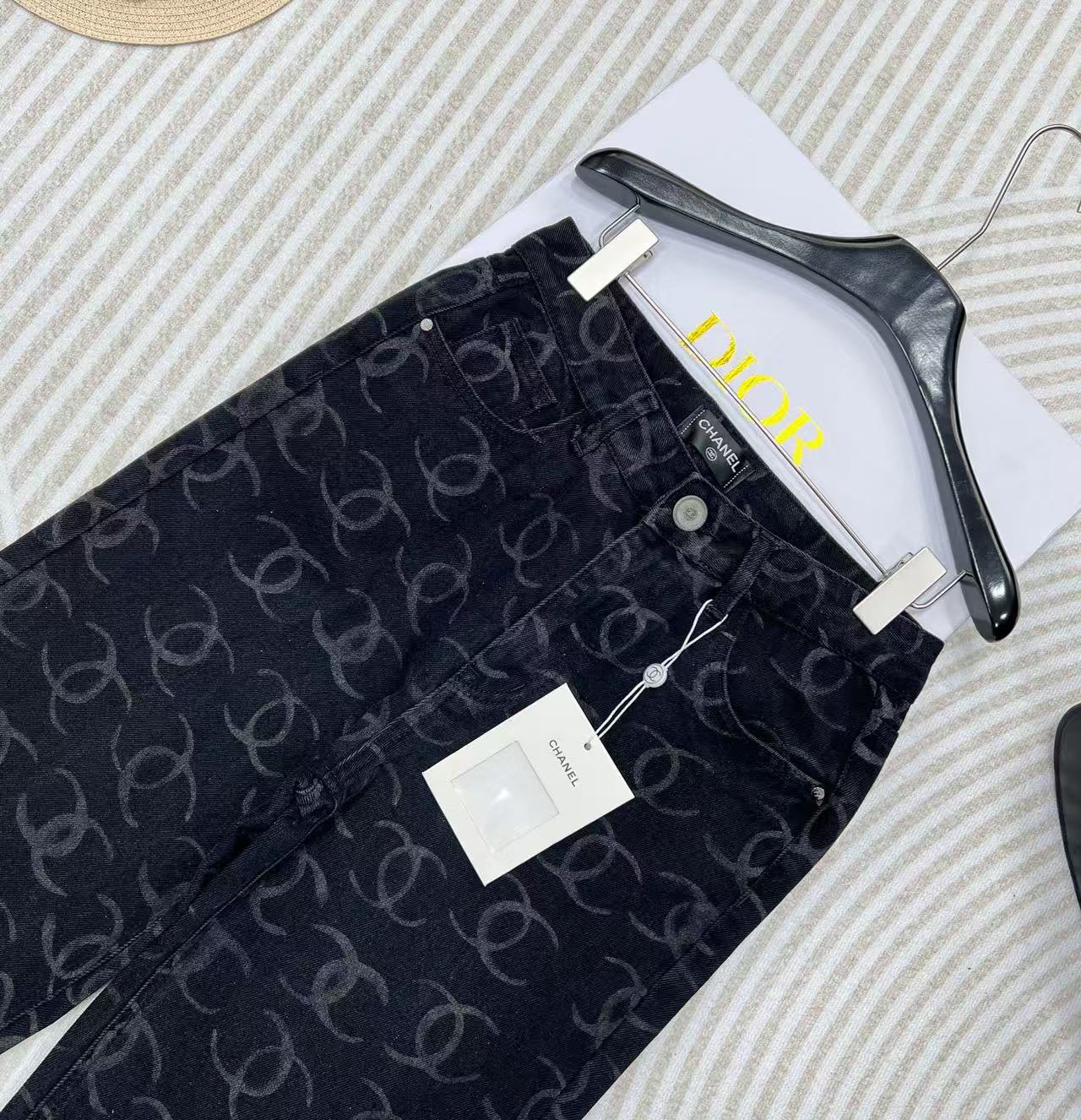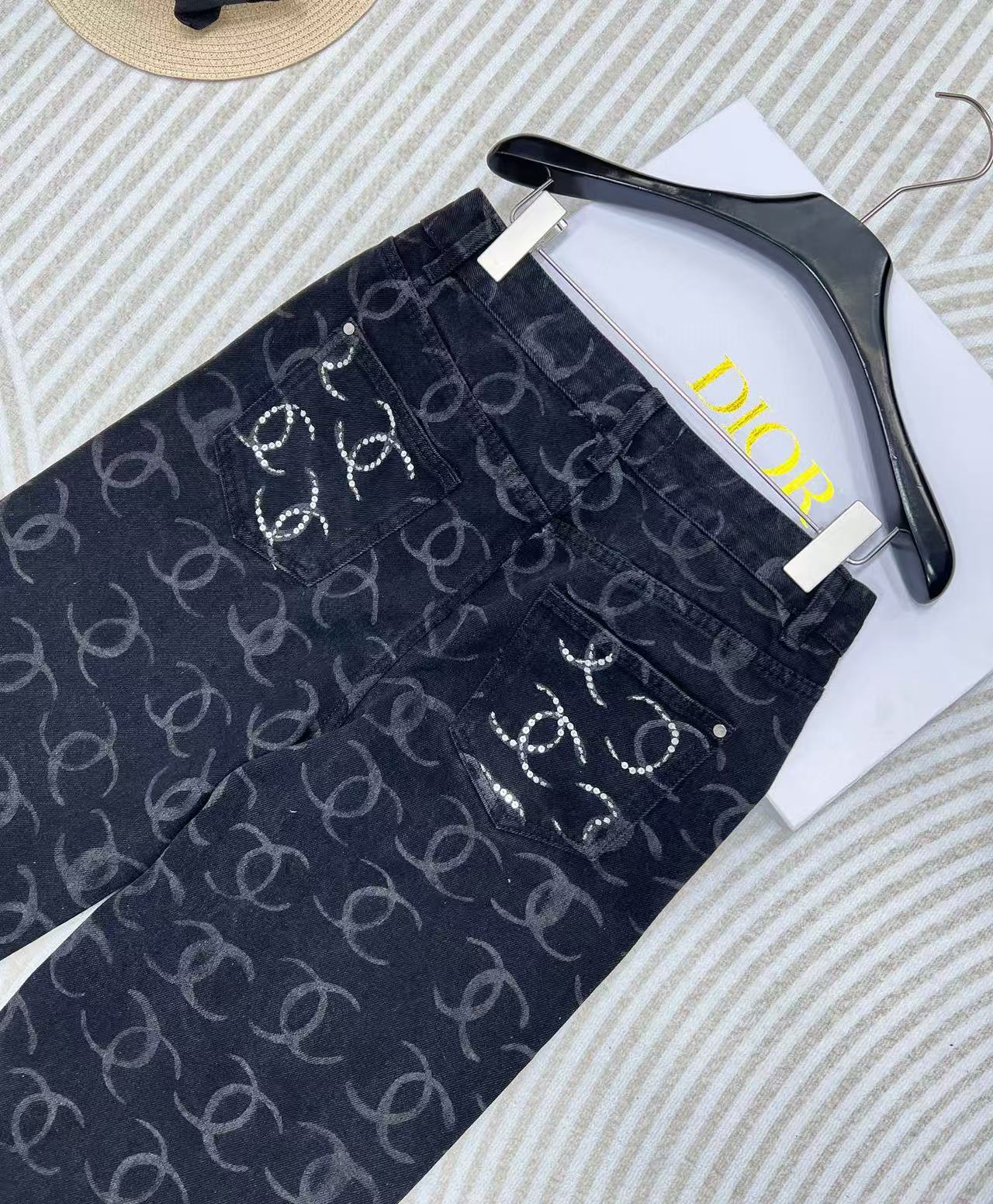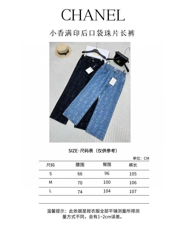 CHANEL24SS小香满印后袋珠片长裤Angelababy同款✔️爆款单品🔥 🔥 采用进口机激光满印双c后口袋手工钉缝闪片