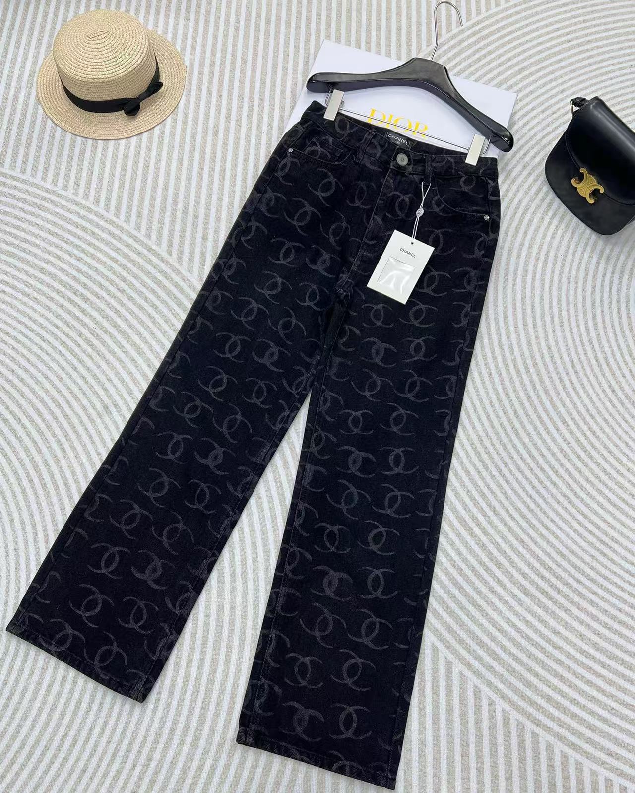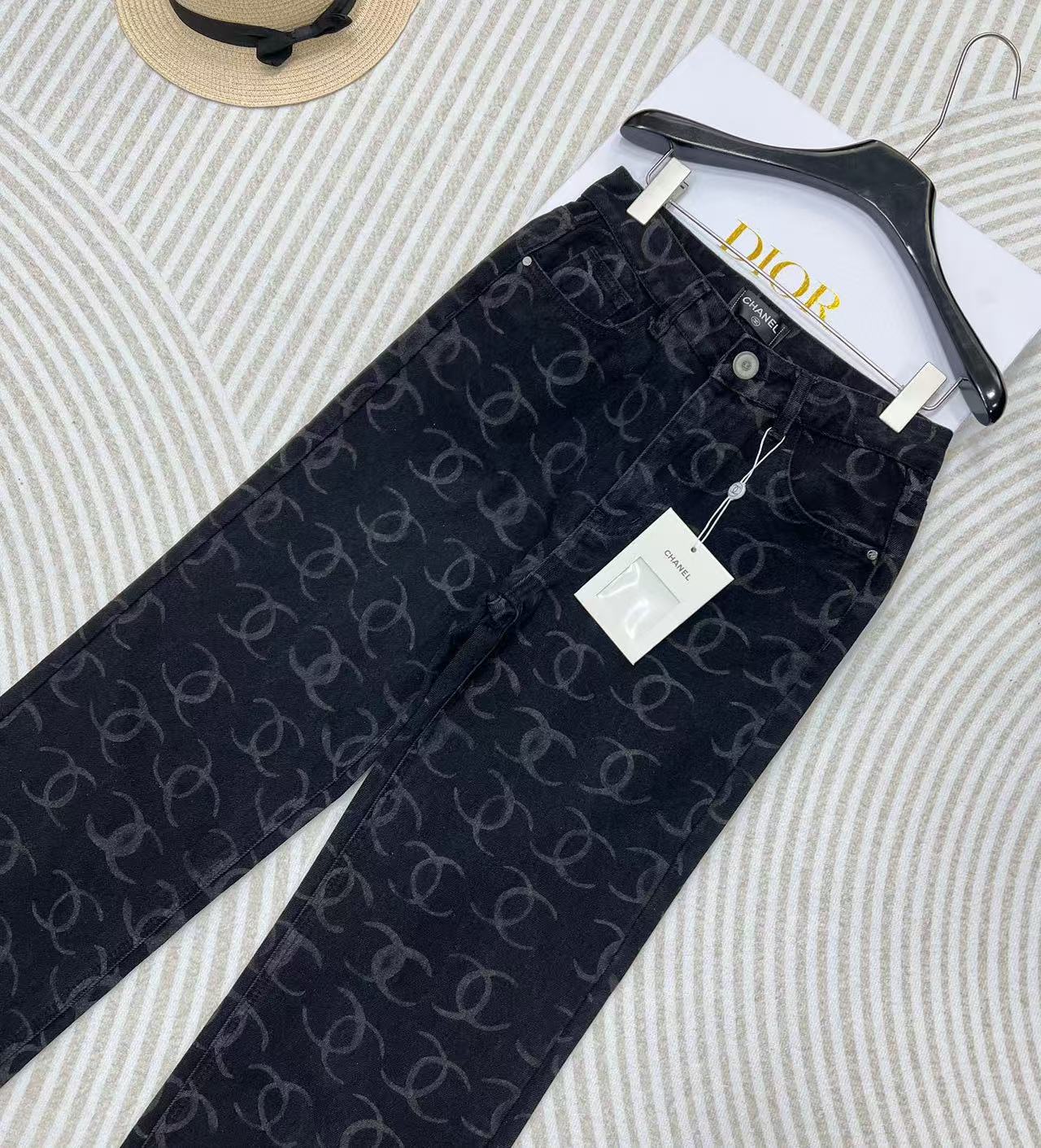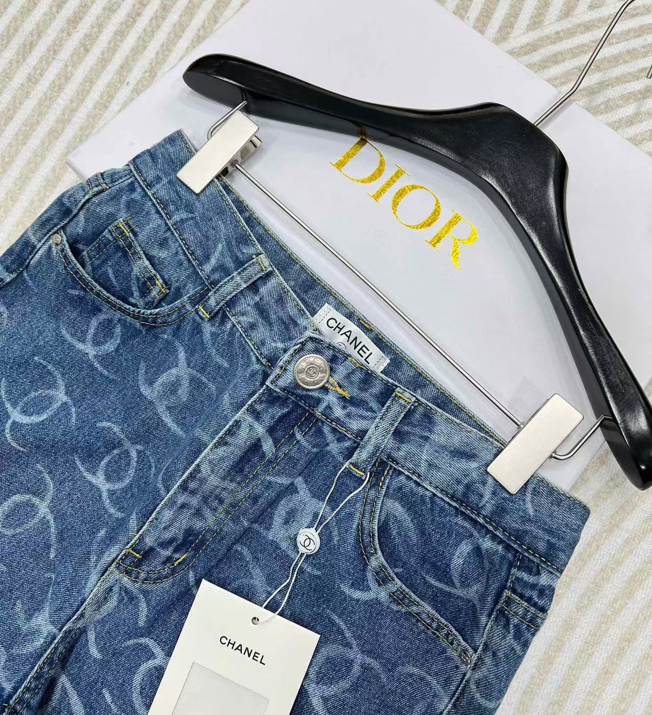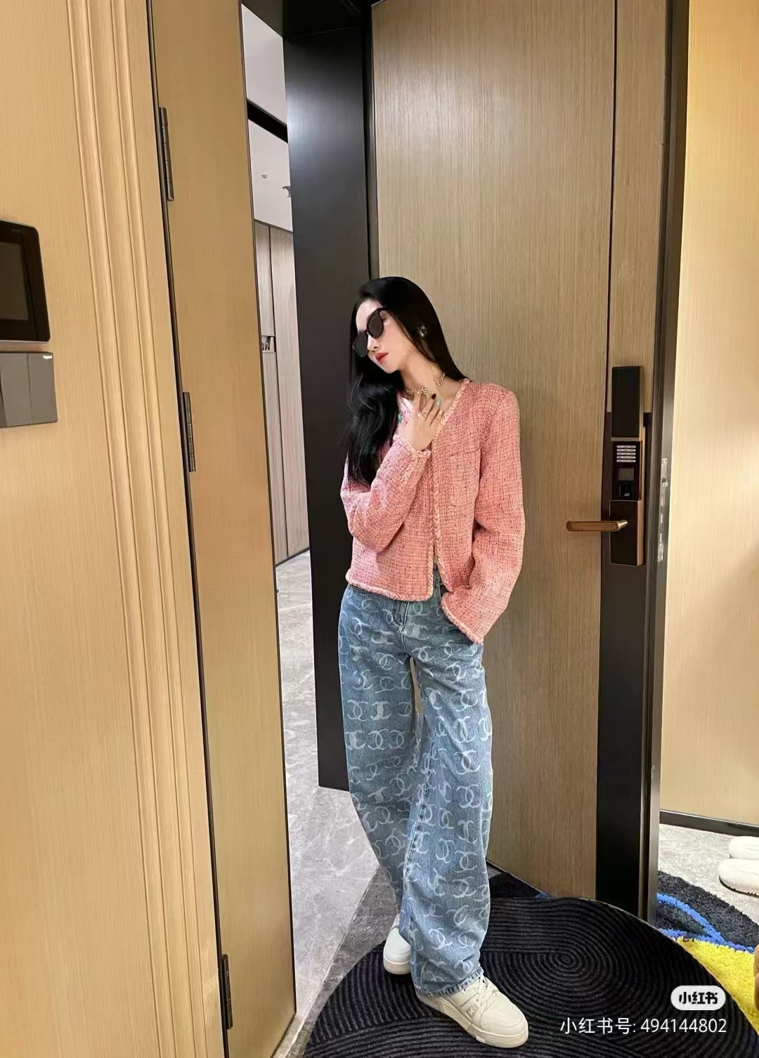 CHANEL24SS小香满印后袋珠片长裤Angelababy同款✔️爆款单品🔥 🔥 采用进口机激光满印双c后口袋手工钉缝闪片