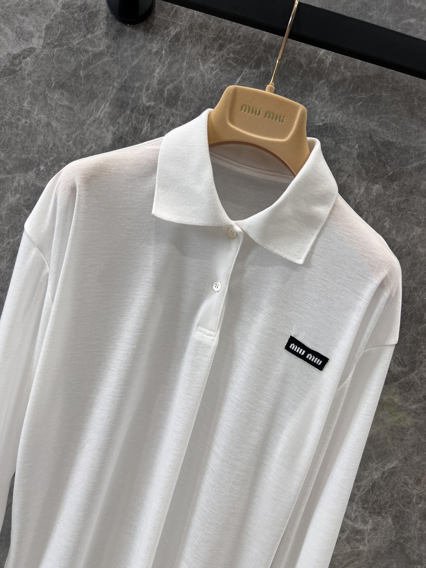 🆕Miumi* 24Fw秋冬新款 罗纹针织长袖polo衫丨⚠独家高版出品!柔软舒适的针织面料呈现简约线条,点缀徽标贴饰,彰显经典风范与独特个性 polo领口 纽扣开合 单穿叠穿的经典单品