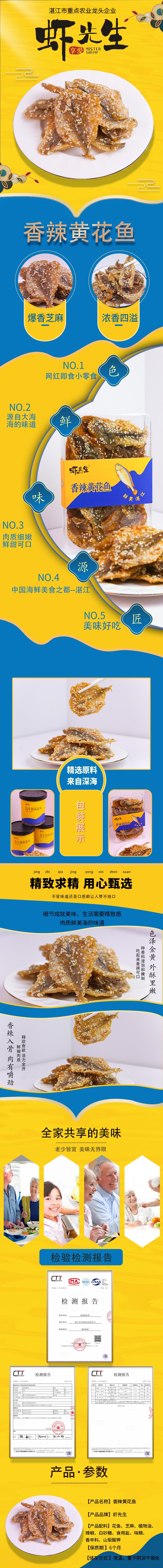 广东湛江虾先生即食香辣黄花鱼100g/罐