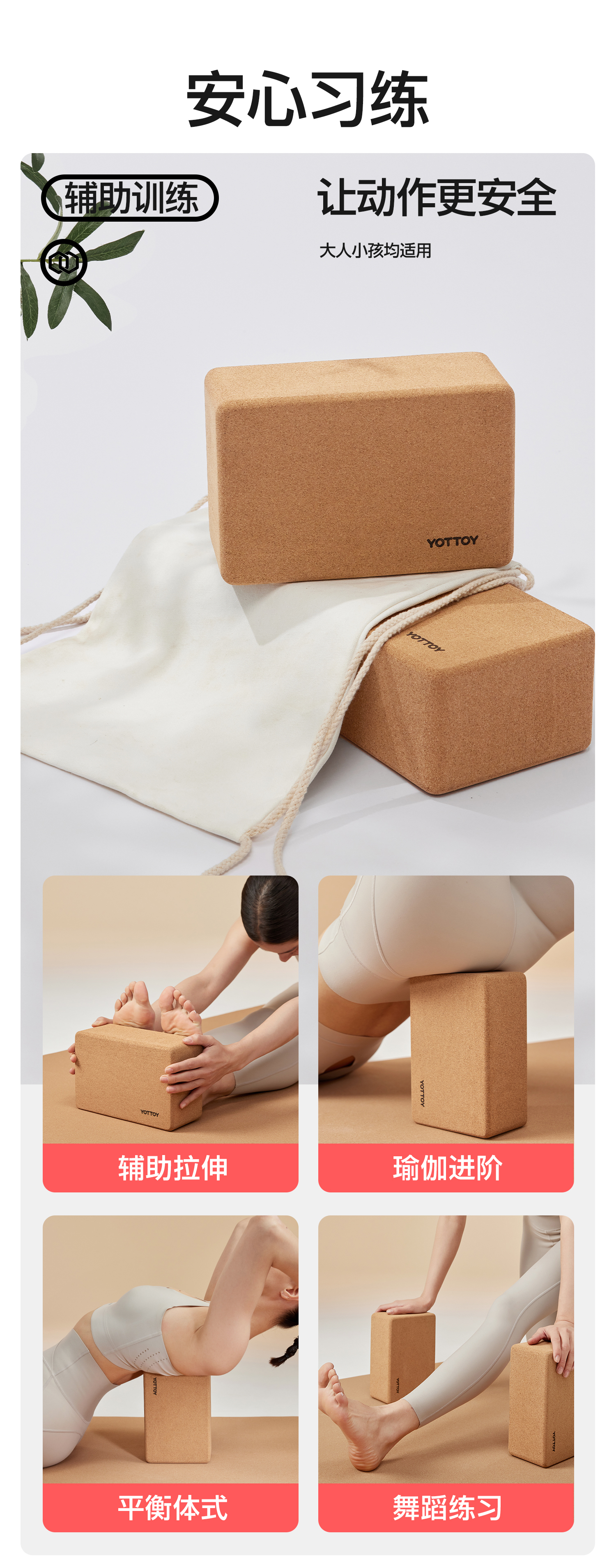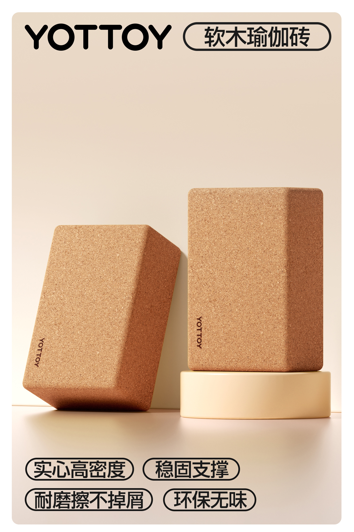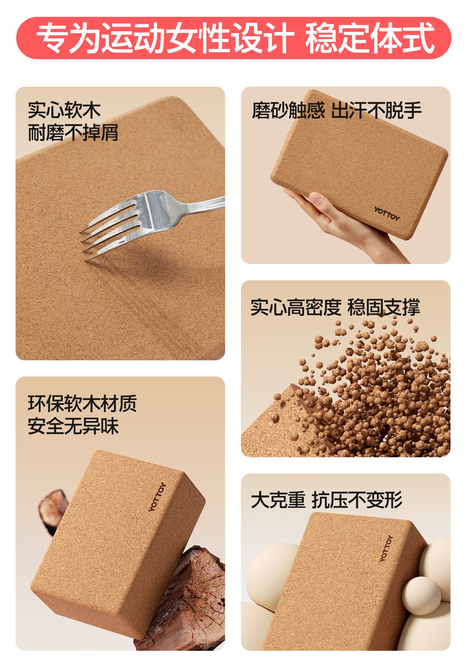 软木瑜伽砖高密度防滑木屑砖瑜伽块舞蹈健身砖头练功拉伸辅助工具