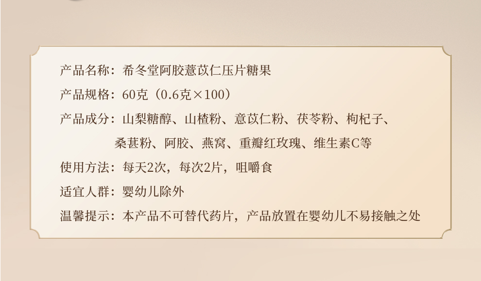 【官方旗舰店】希冬堂薏仁片阿胶薏苡仁压片糖果焕活代谢正品保障