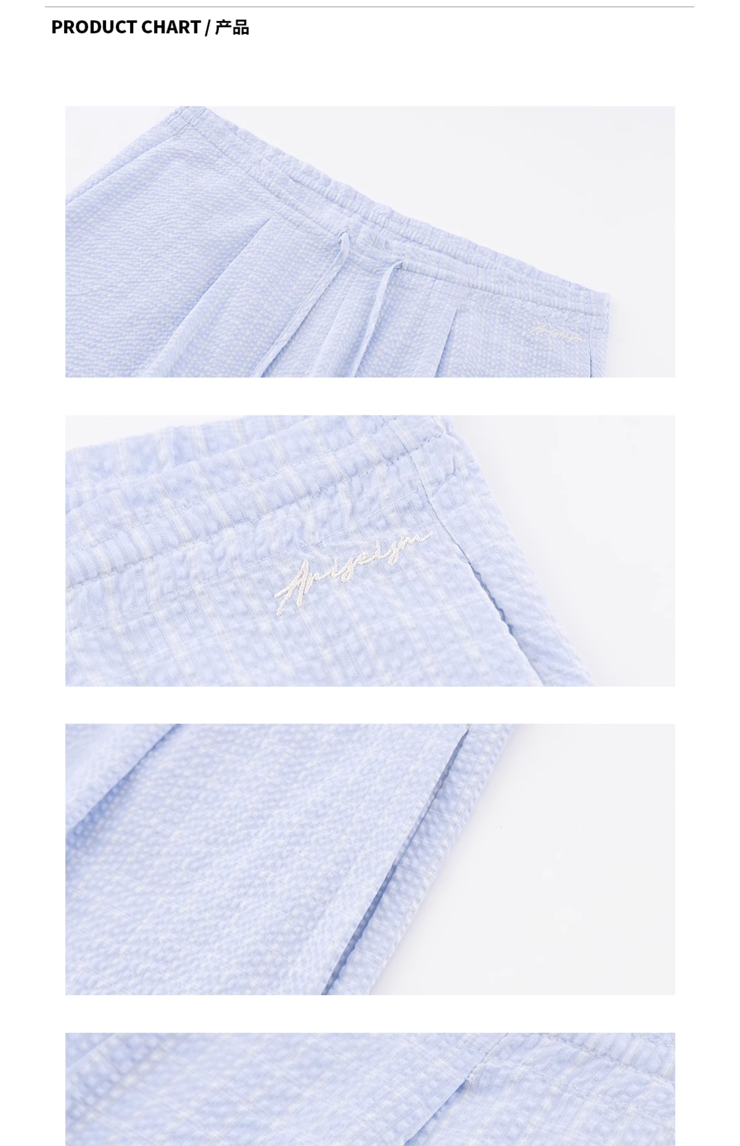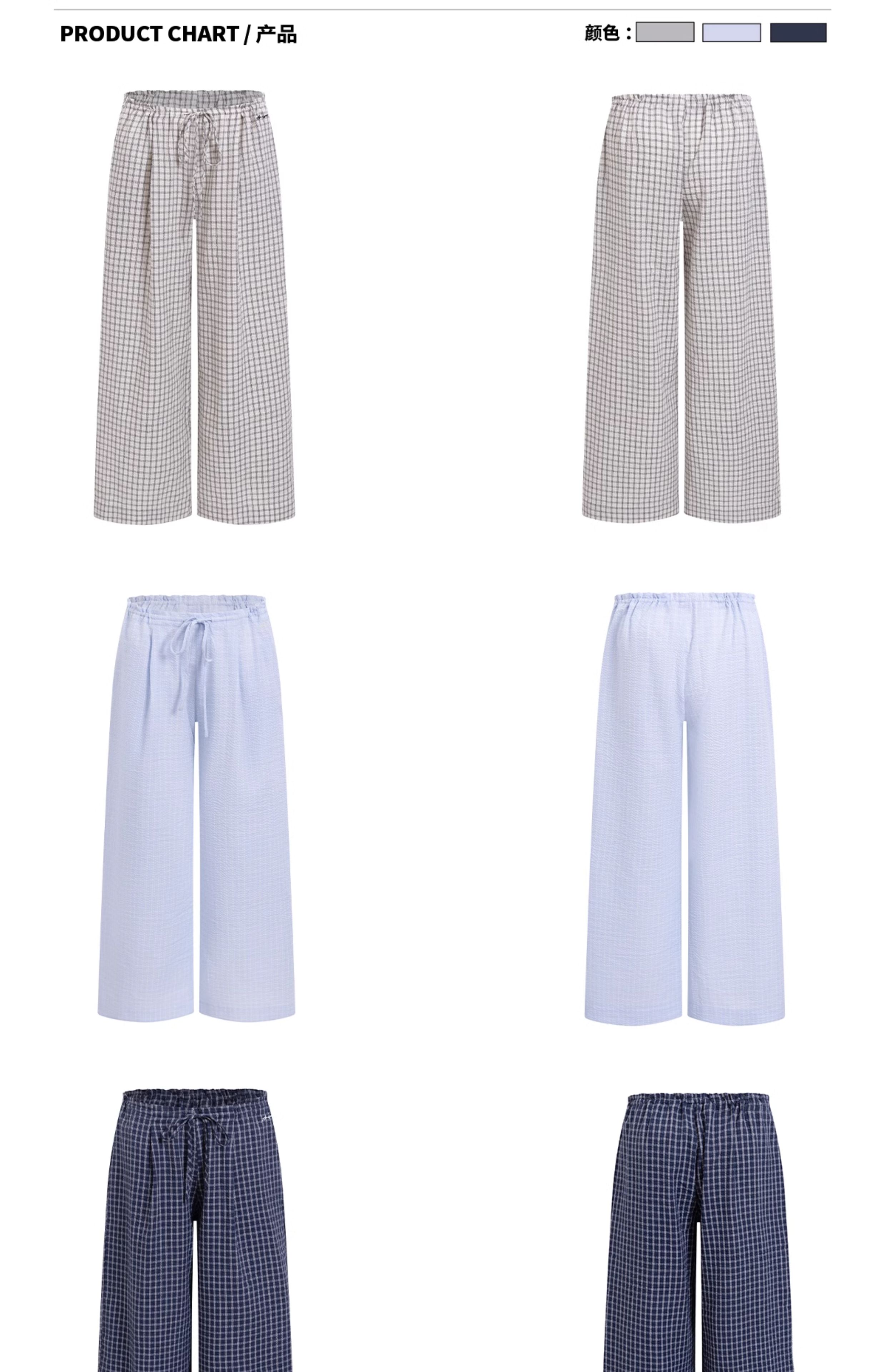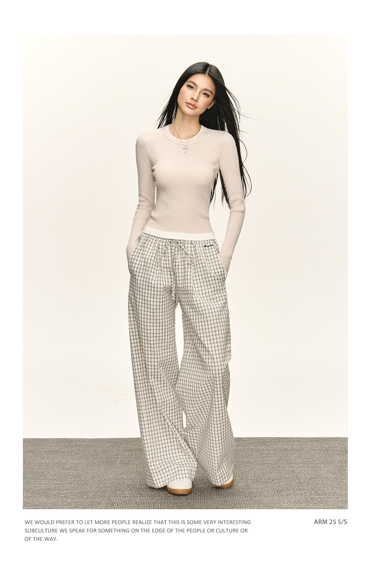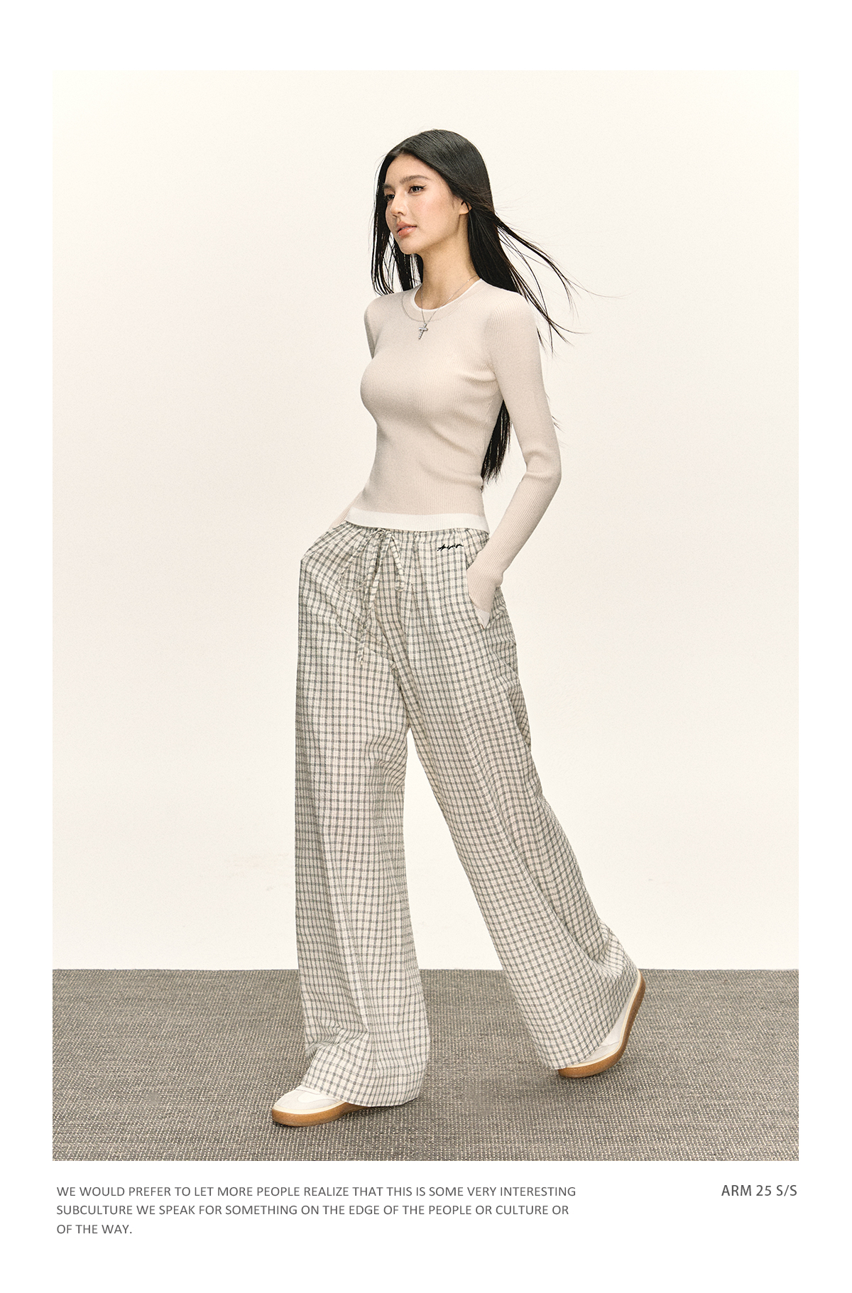 Ariseism美式复古薄款蓝色格子休闲裤女夏季新款低腰宽松阔腿裤子