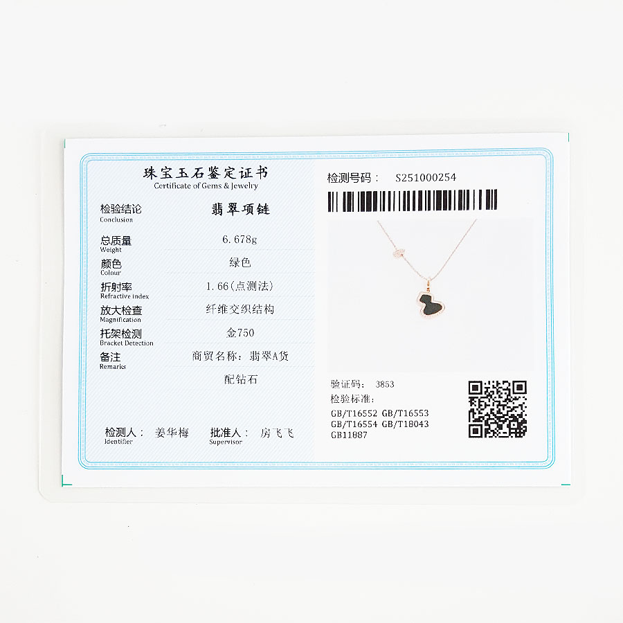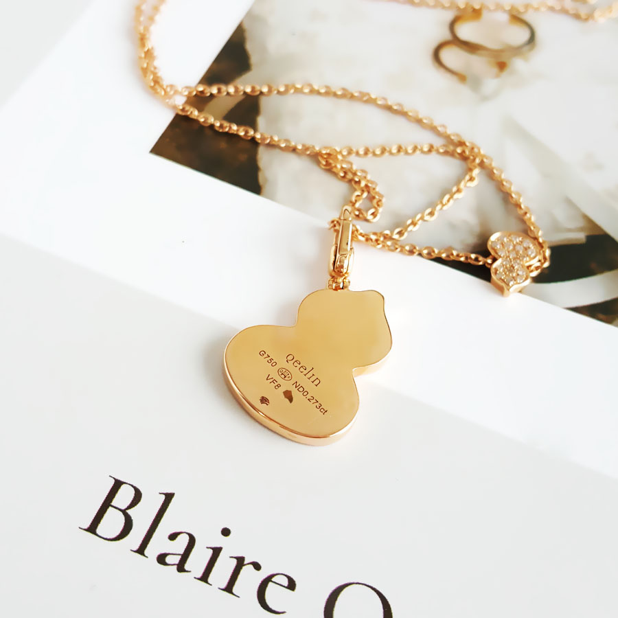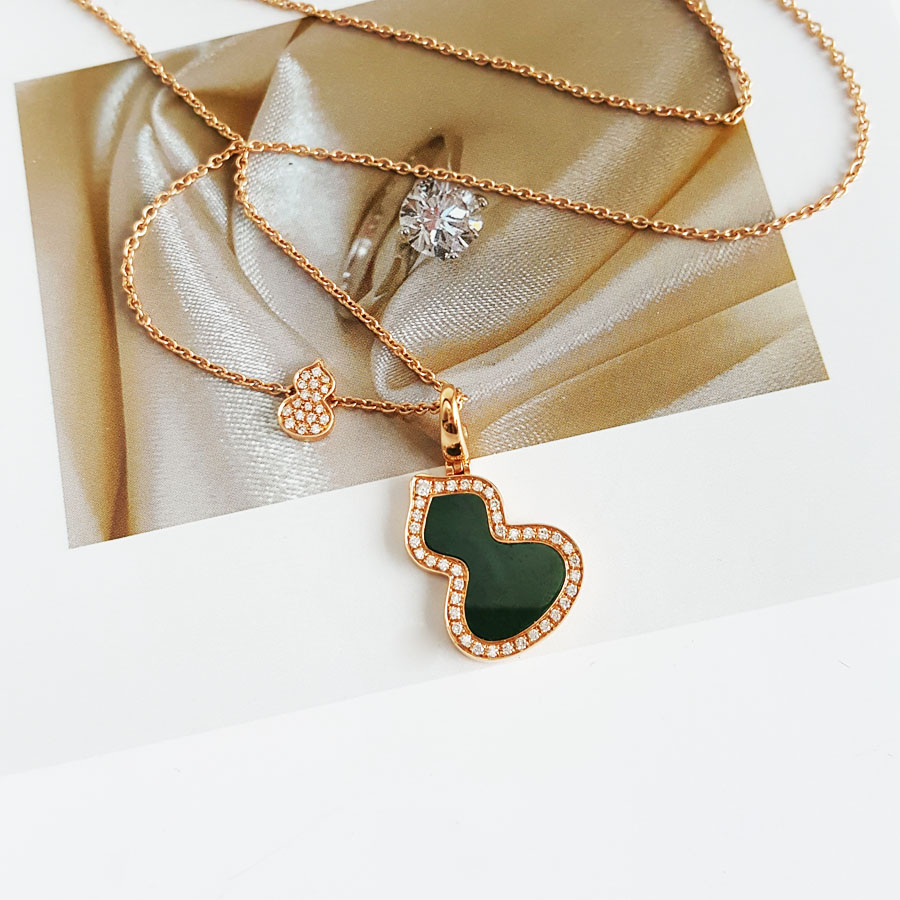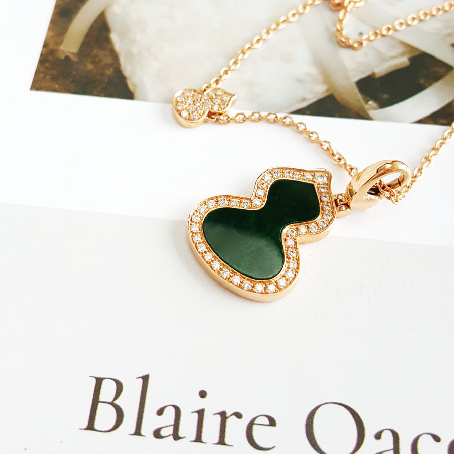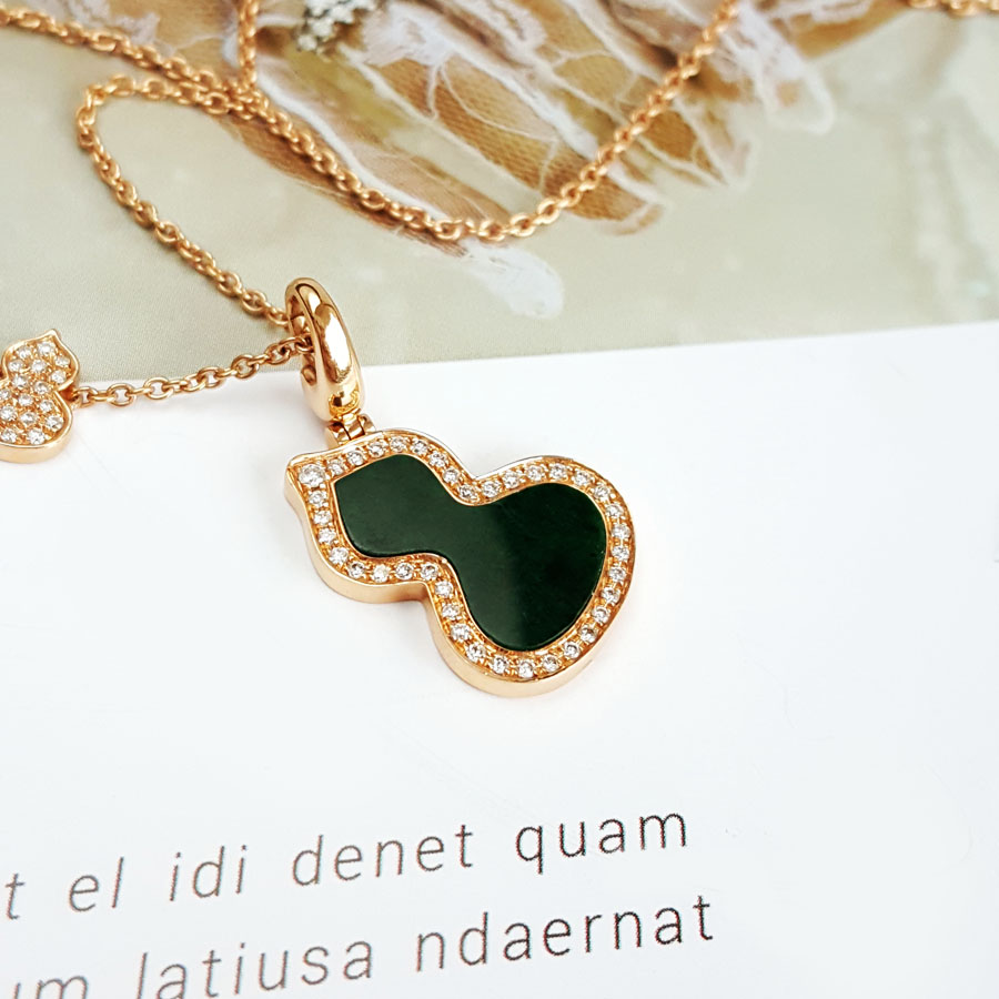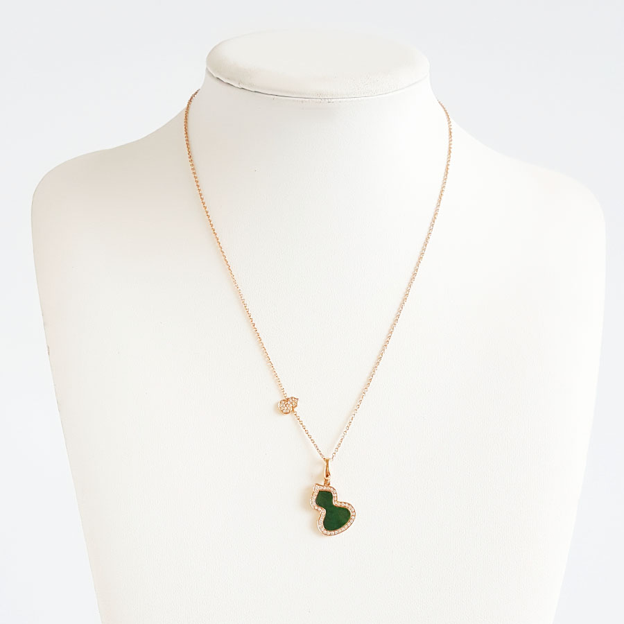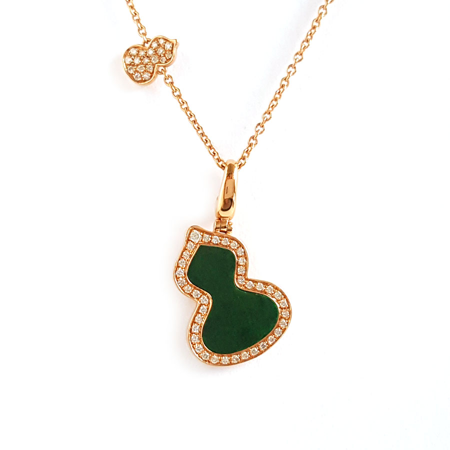 【天然正品】AU750玫瑰金镶钻时尚高定定制款葫芦(福禄平安)翡翠吊坠项链 链长:46CM(长度可调节)女士091025NJS50