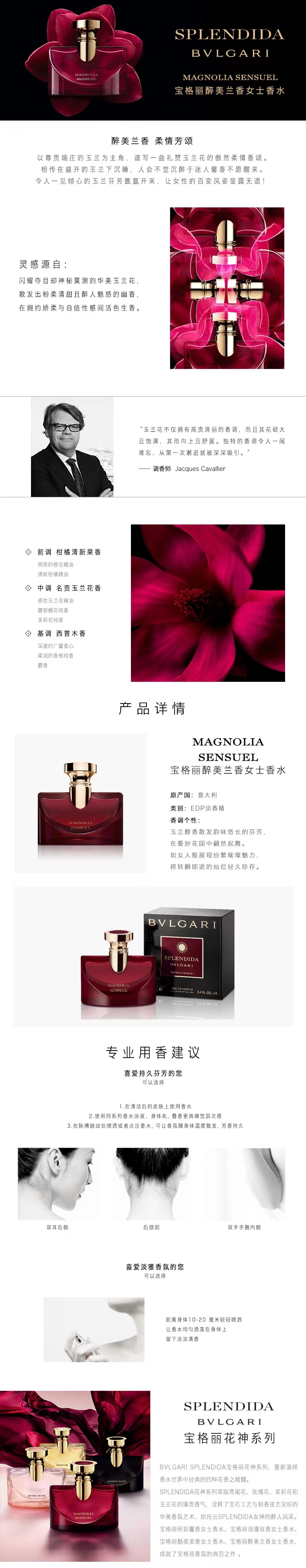 宝格丽醉美兰香女士香水是对女性美丽气质的致敬,以为其带来灵感的花朵形象,让珍贵的天然成分释放出浓烈而迷人的芳香。