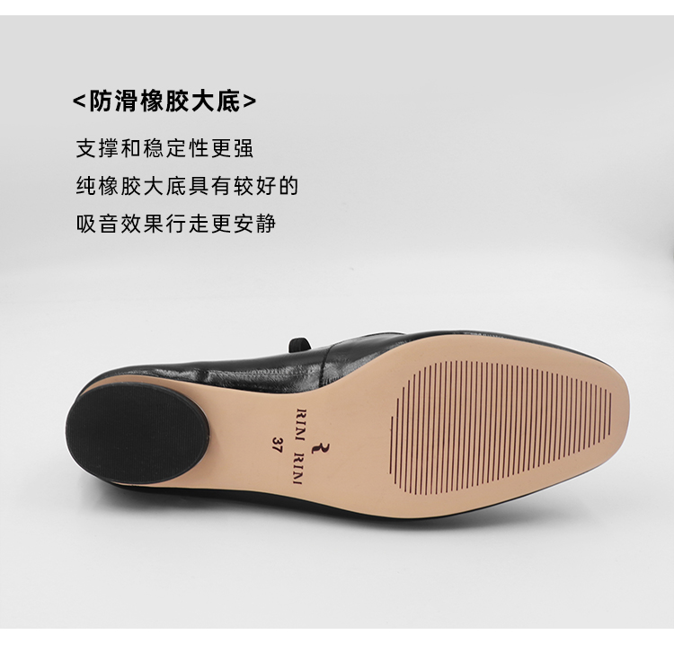 RIM RIM塑型马皮鞋法式爆款百搭粗跟带浅口玛丽珍单鞋复古女鞋2430-1