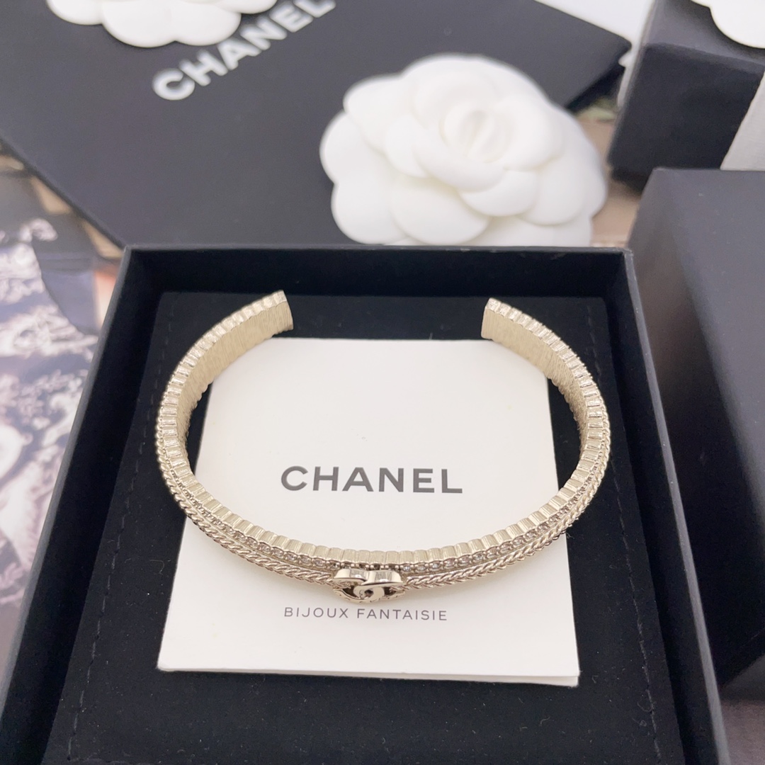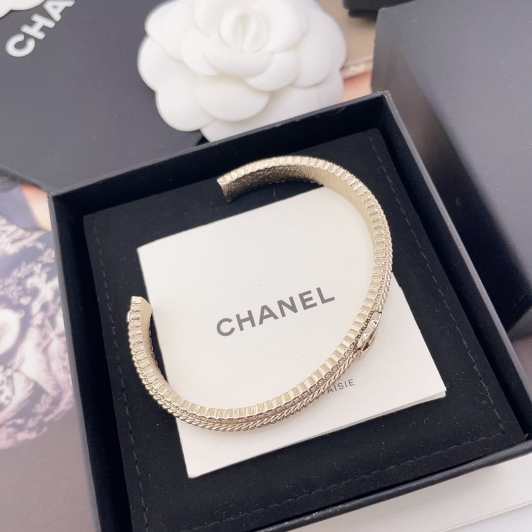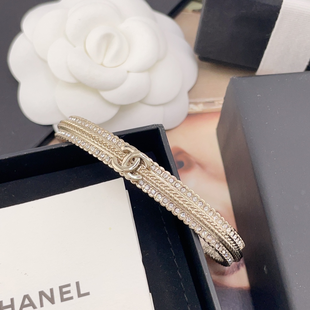 编码241108851,配送包装 简约大方日常款,上边颗颗施华洛世奇水晶,中间立体细腻的链条⛓️纹路+双c logo设计!背面,侧面纯手工拉丝工艺,超级重工精致绝对是低调中带着华丽丽的女神范,无法抗拒!浅金色太高级了!