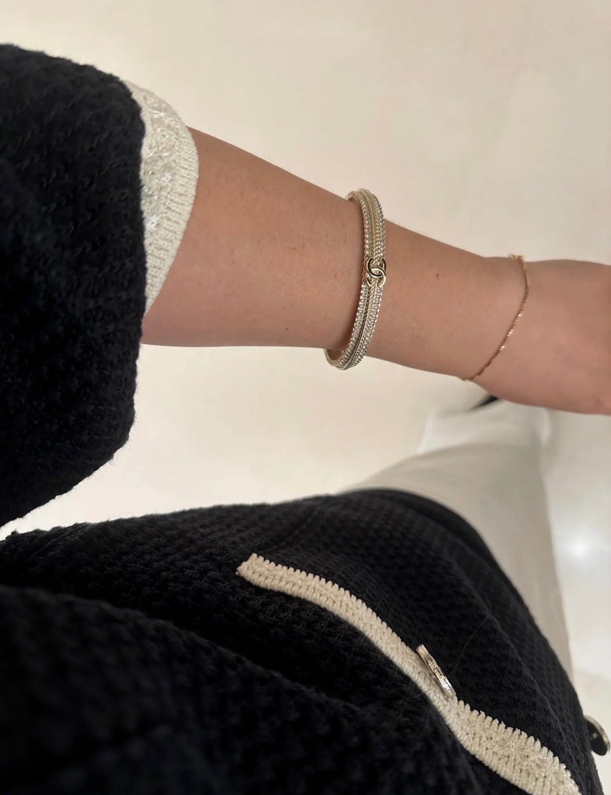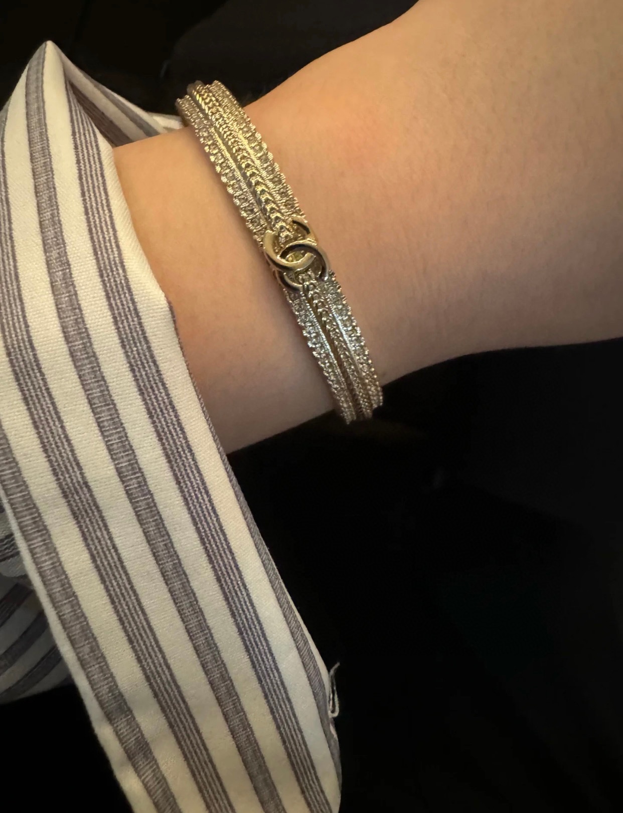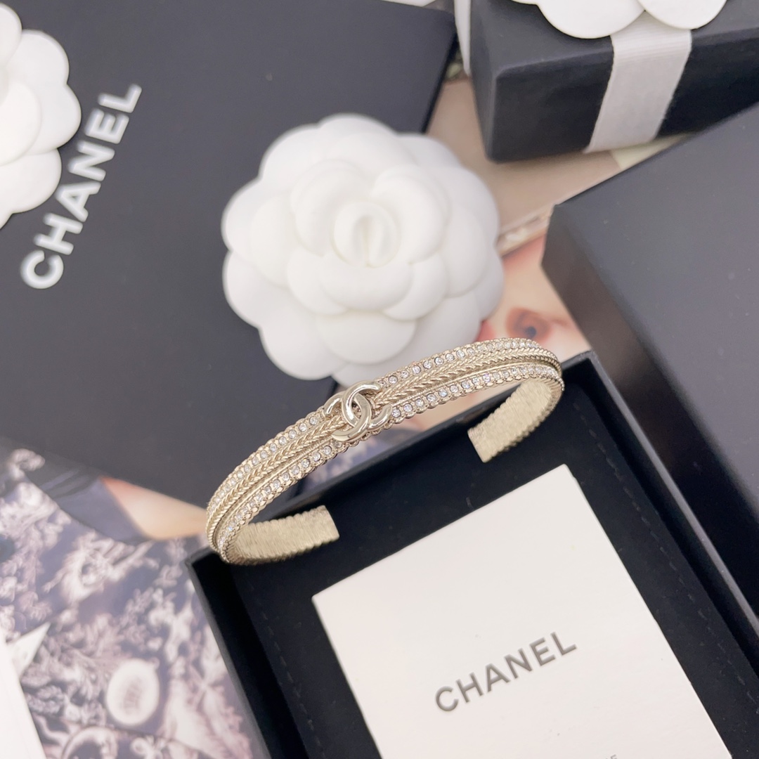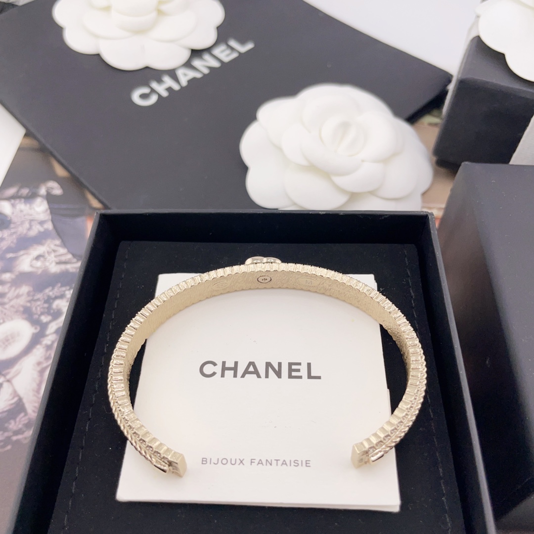 编码241108851,配送包装 简约大方日常款,上边颗颗施华洛世奇水晶,中间立体细腻的链条⛓️纹路+双c logo设计!背面,侧面纯手工拉丝工艺,超级重工精致绝对是低调中带着华丽丽的女神范,无法抗拒!浅金色太高级了!