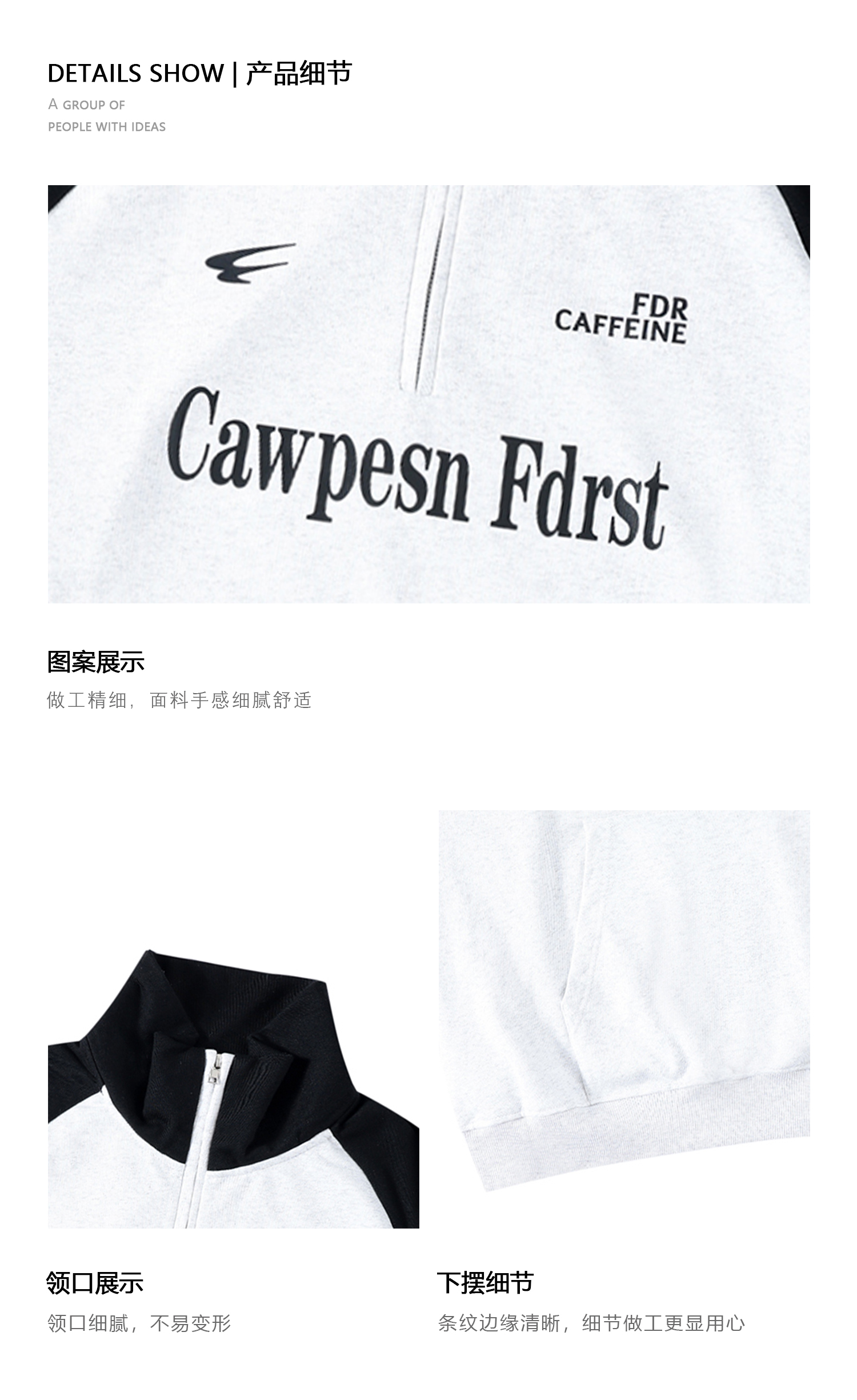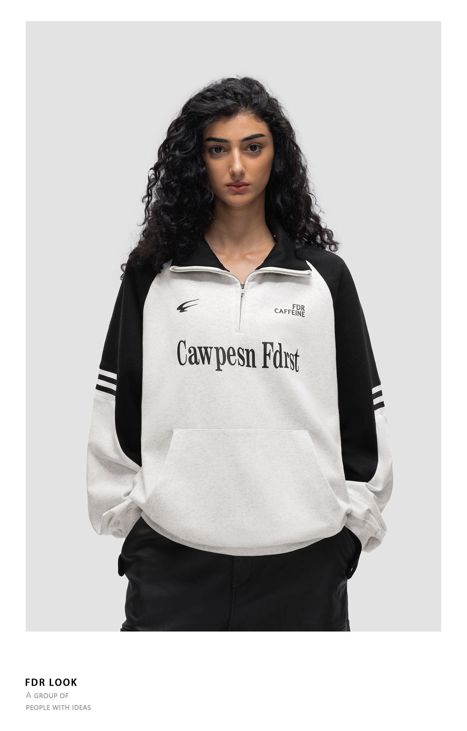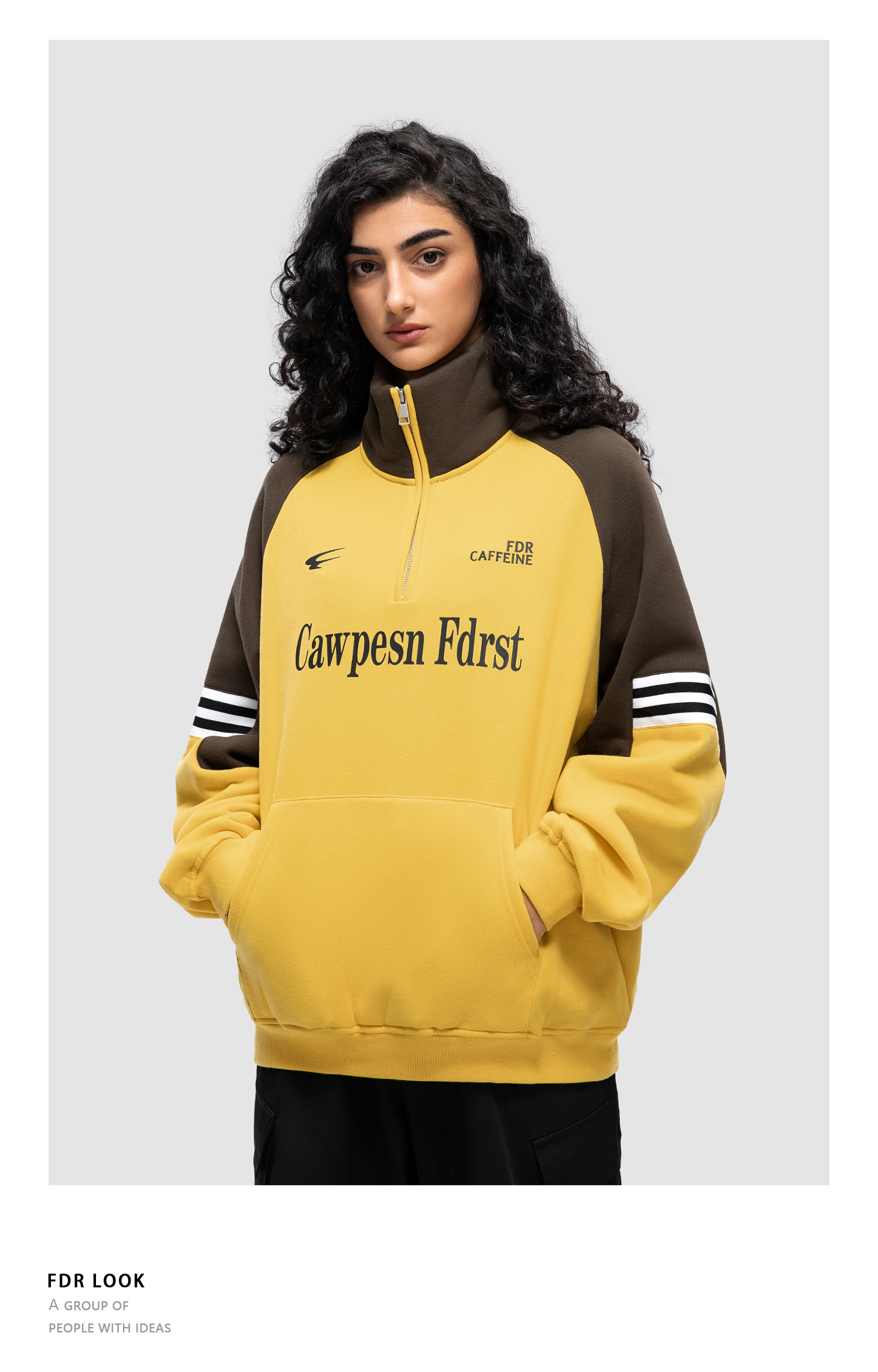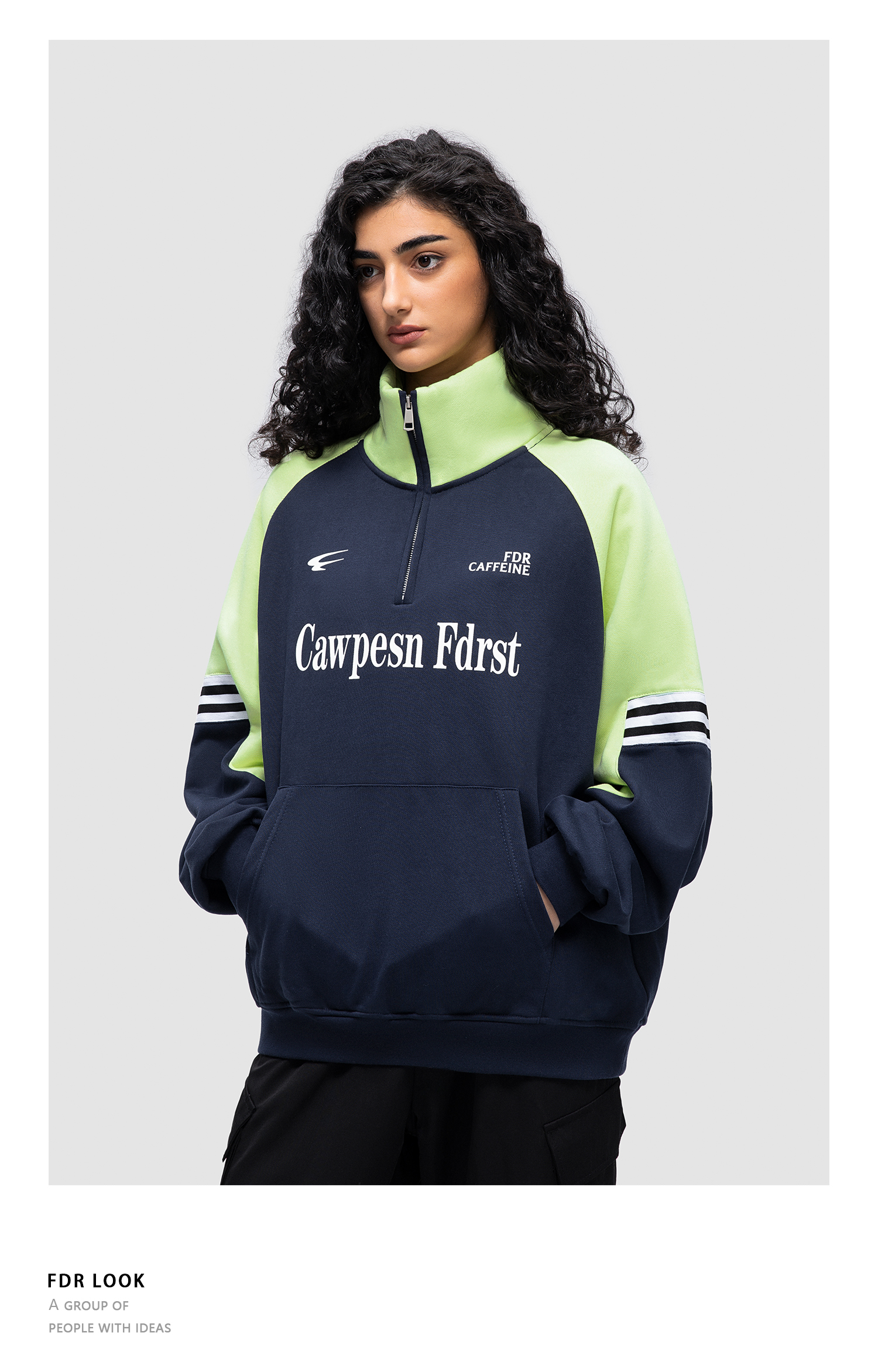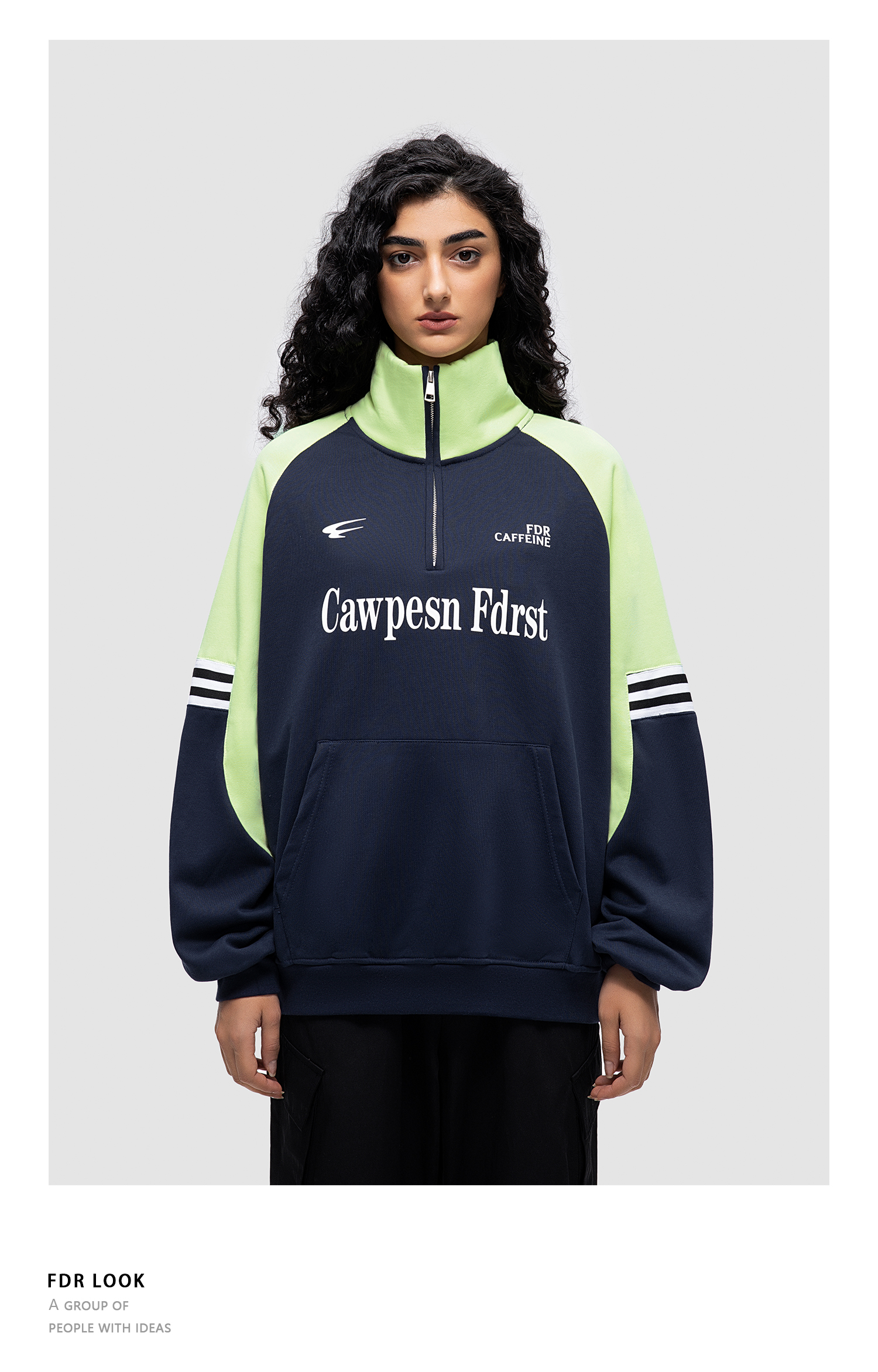 FDR 国潮拼接高领半拉链卫衣男女春秋季美式高街情侣宽松插肩上衣