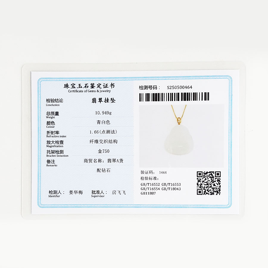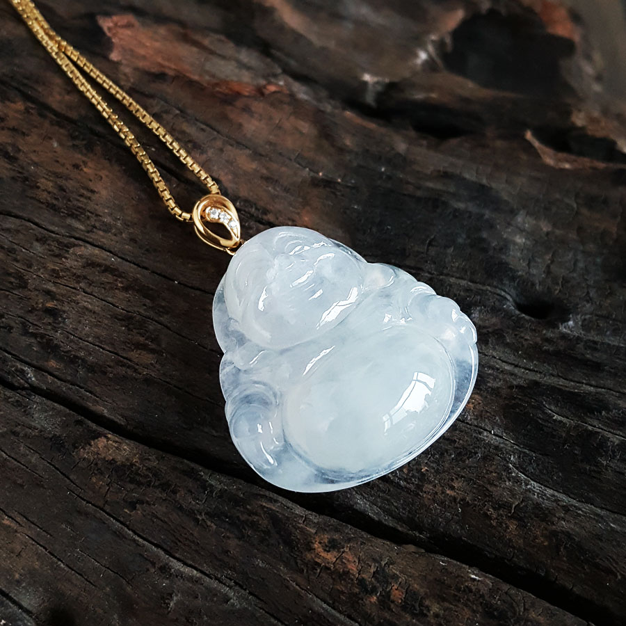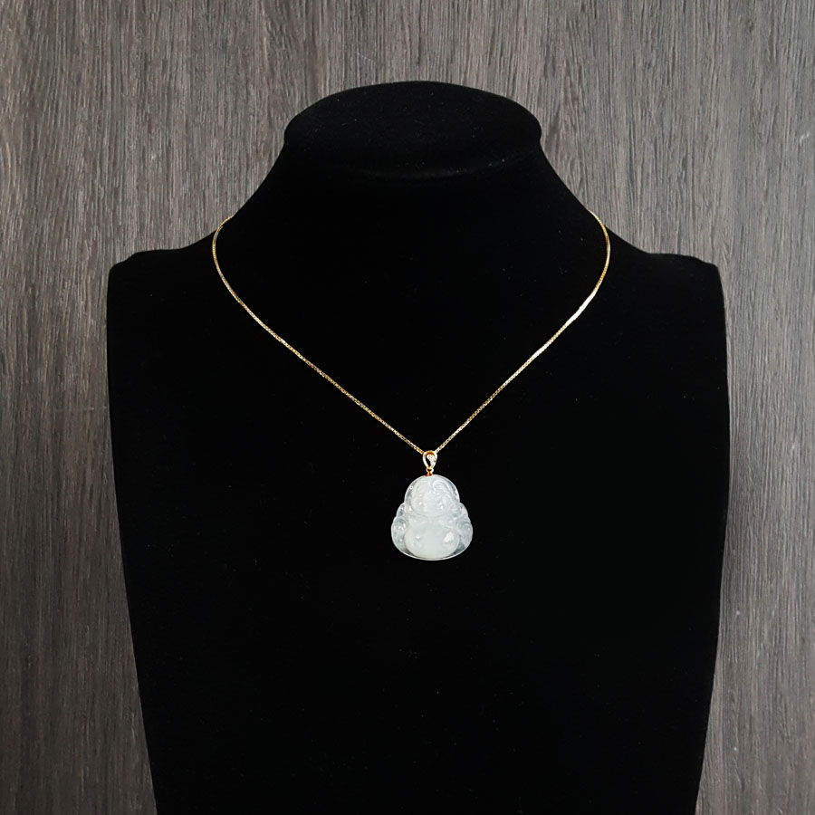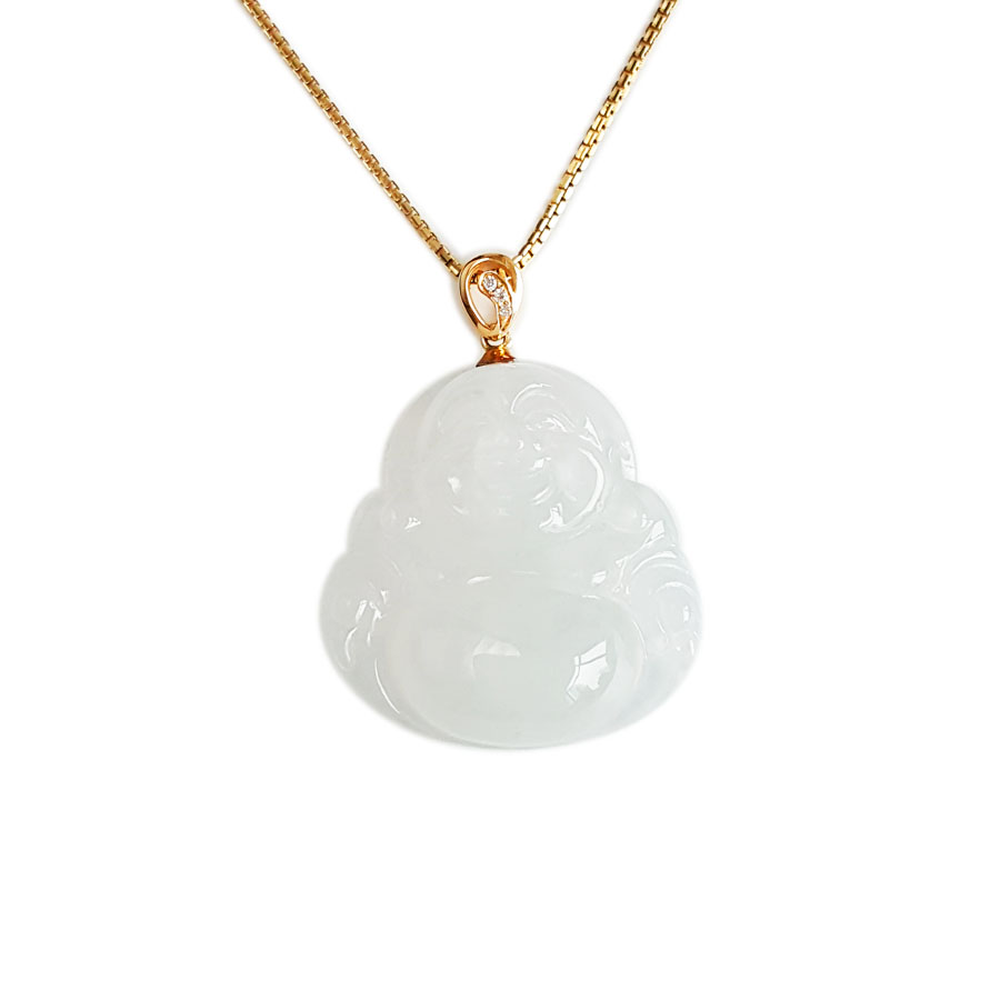 名称 | AU750黄金镶钻镶天然冰种佛公翡翠(平安、吉祥)吊坠项链 |