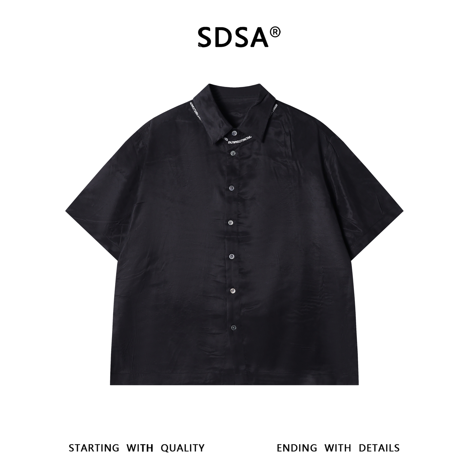 SDSA男装2026新款高贵轻奢美式撞色领口刺绣字母短袖衬衫百搭休闲