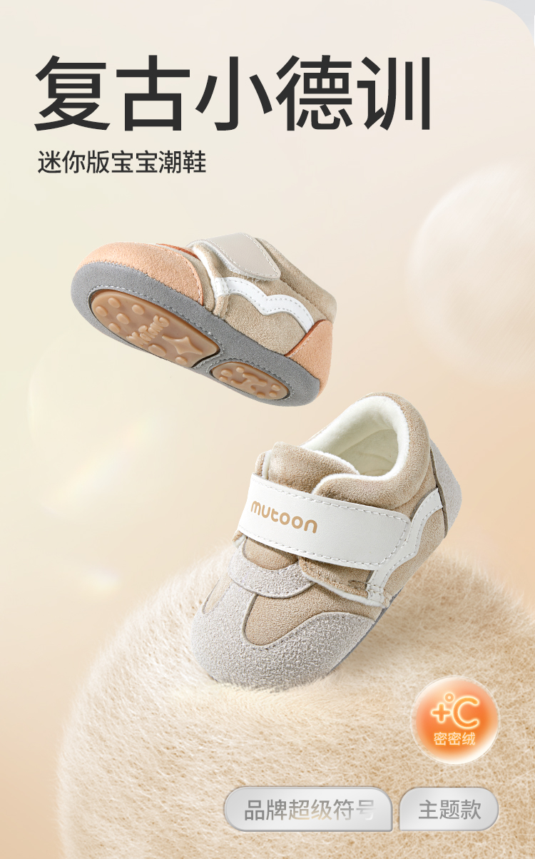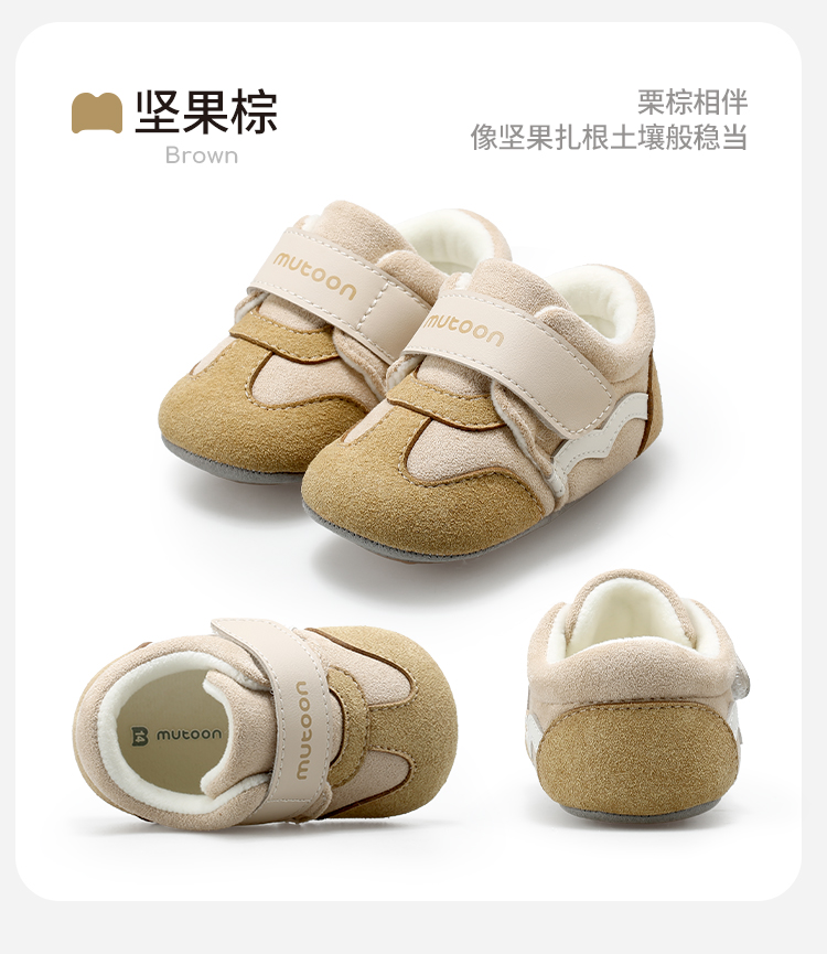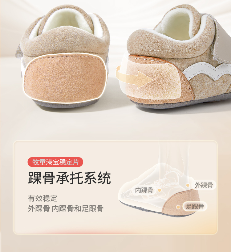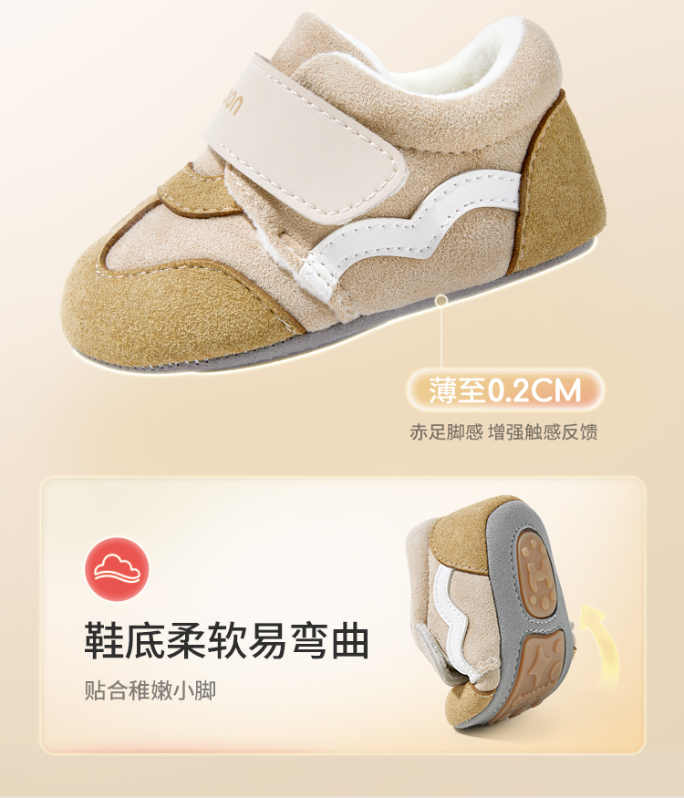 牧童2025冬季婴幼儿保暖加绒步前鞋宝宝软底防滑学步鞋加绒棉鞋子
