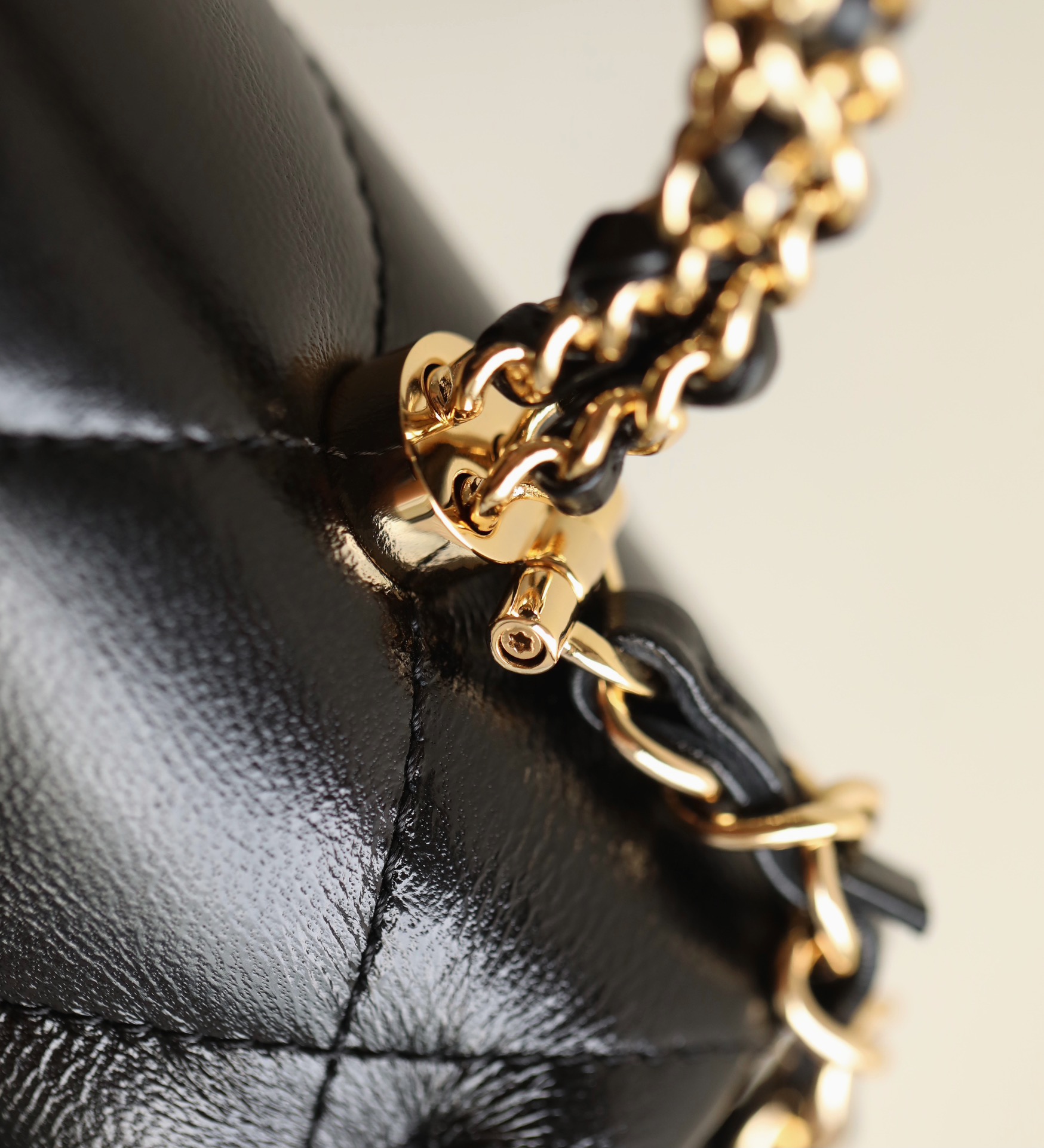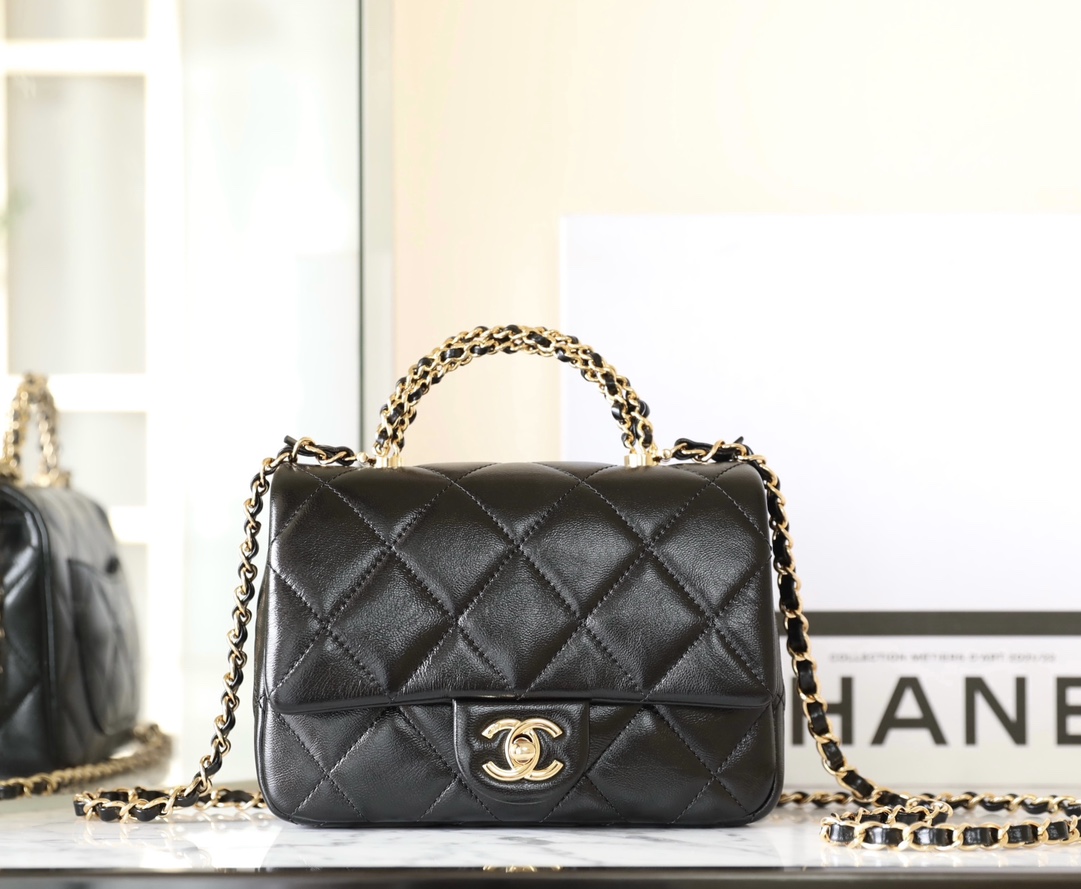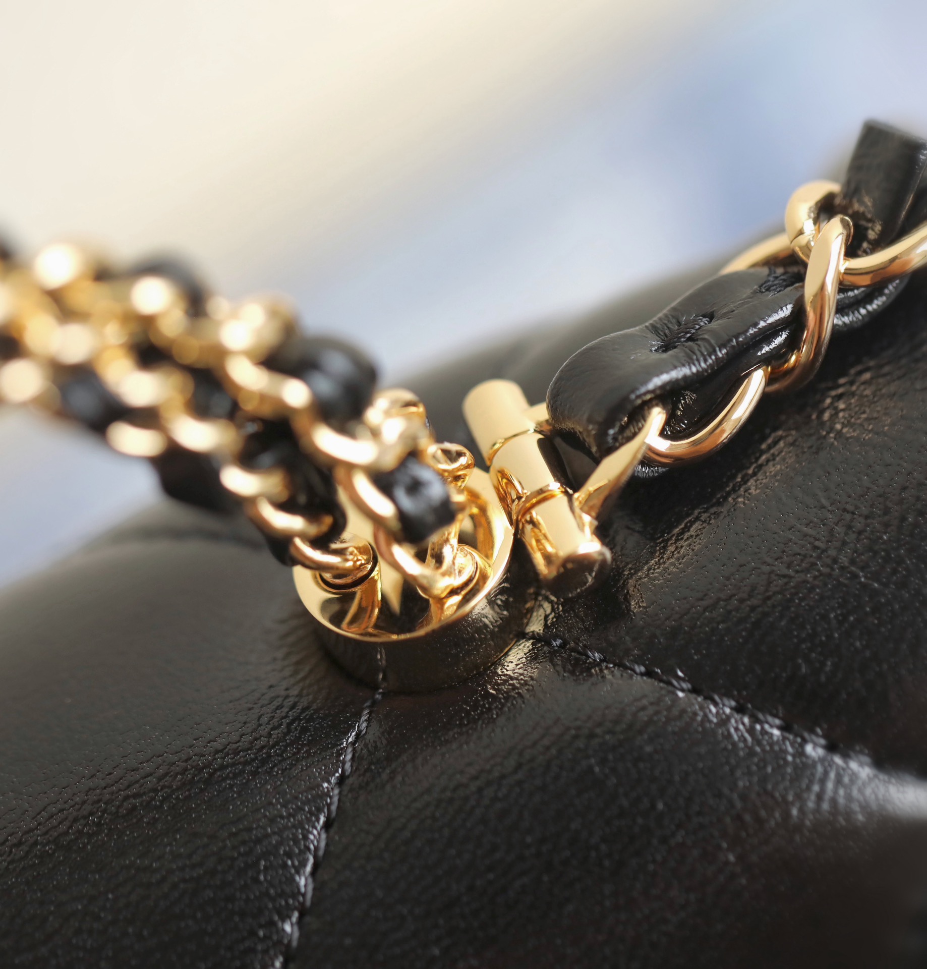 𝖢𝗁𝖺𝗇𝖾𝟣独特链条拧转手柄设计ꫛꫀꪝ 不仅大方美观,还提供舒适的握持感 这种设计既保留小香的经典元素, 又赋予了包包新的艺术气息时尚感 五金:厚镀𝟤𝟦𝗄亮金扣 皮料:𝖡𝗈𝗇𝖺𝗎𝖽𝗈亮面小羊皮 小号尺寸: 𝟣𝟦*𝟣𝟫*𝟪 𝖼𝗆