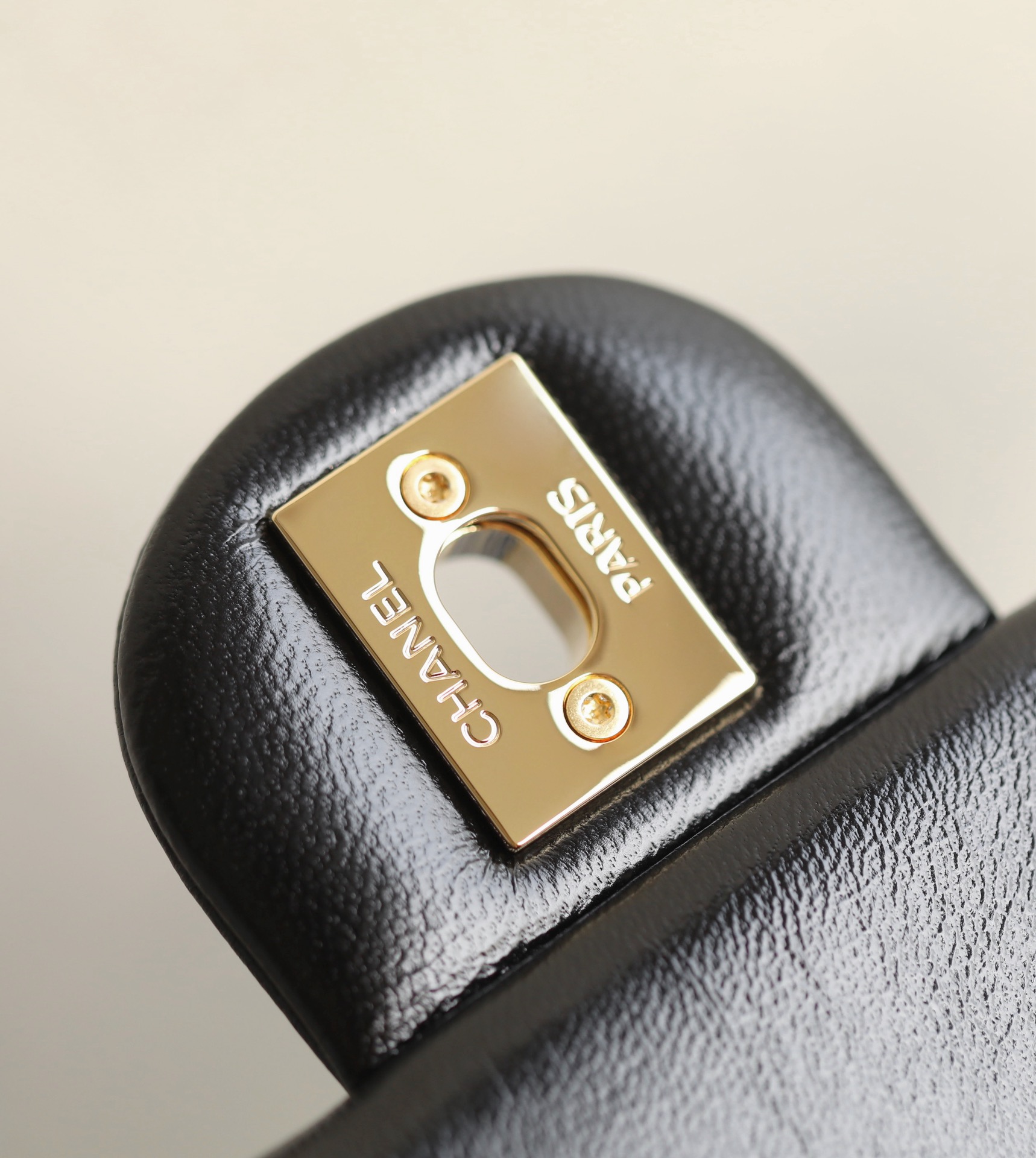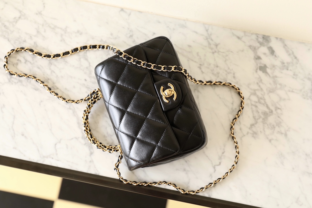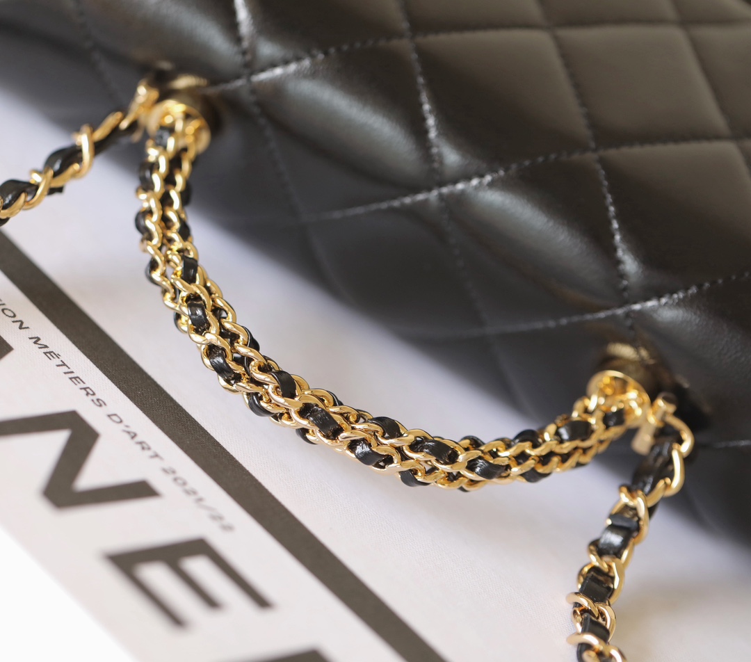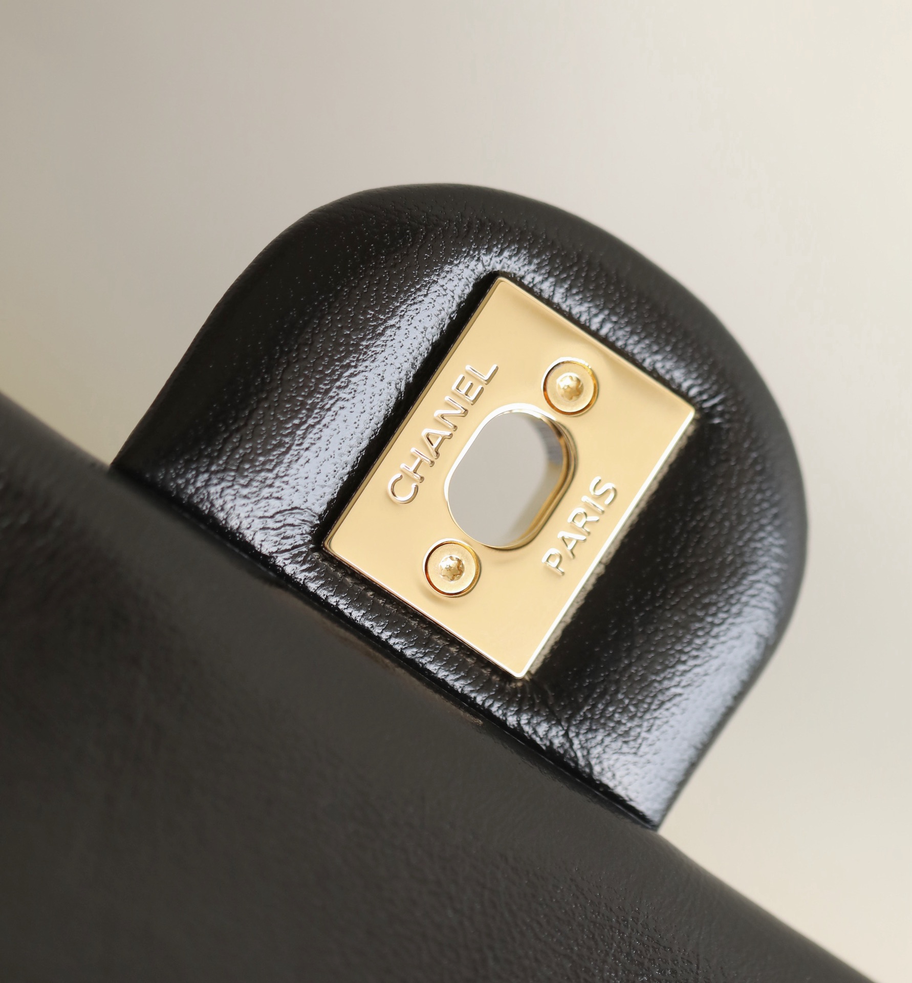 𝖢𝗁𝖺𝗇𝖾𝟣独特链条拧转手柄设计ꫛꫀꪝ 不仅大方美观,还提供舒适的握持感 这种设计既保留小香的经典元素, 又赋予了包包新的艺术气息时尚感 五金:厚镀𝟤𝟦𝗄亮金扣 皮料:𝖡𝗈𝗇𝖺𝗎𝖽𝗈亮面小羊皮 小号尺寸: 𝟣𝟦*𝟣𝟫*𝟪 𝖼𝗆