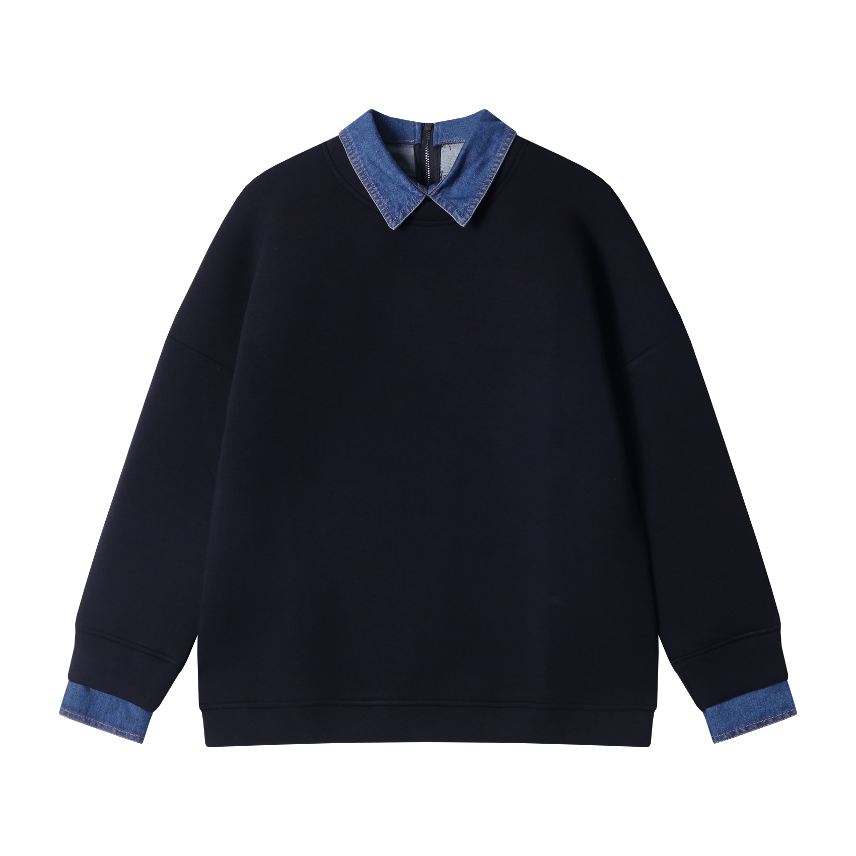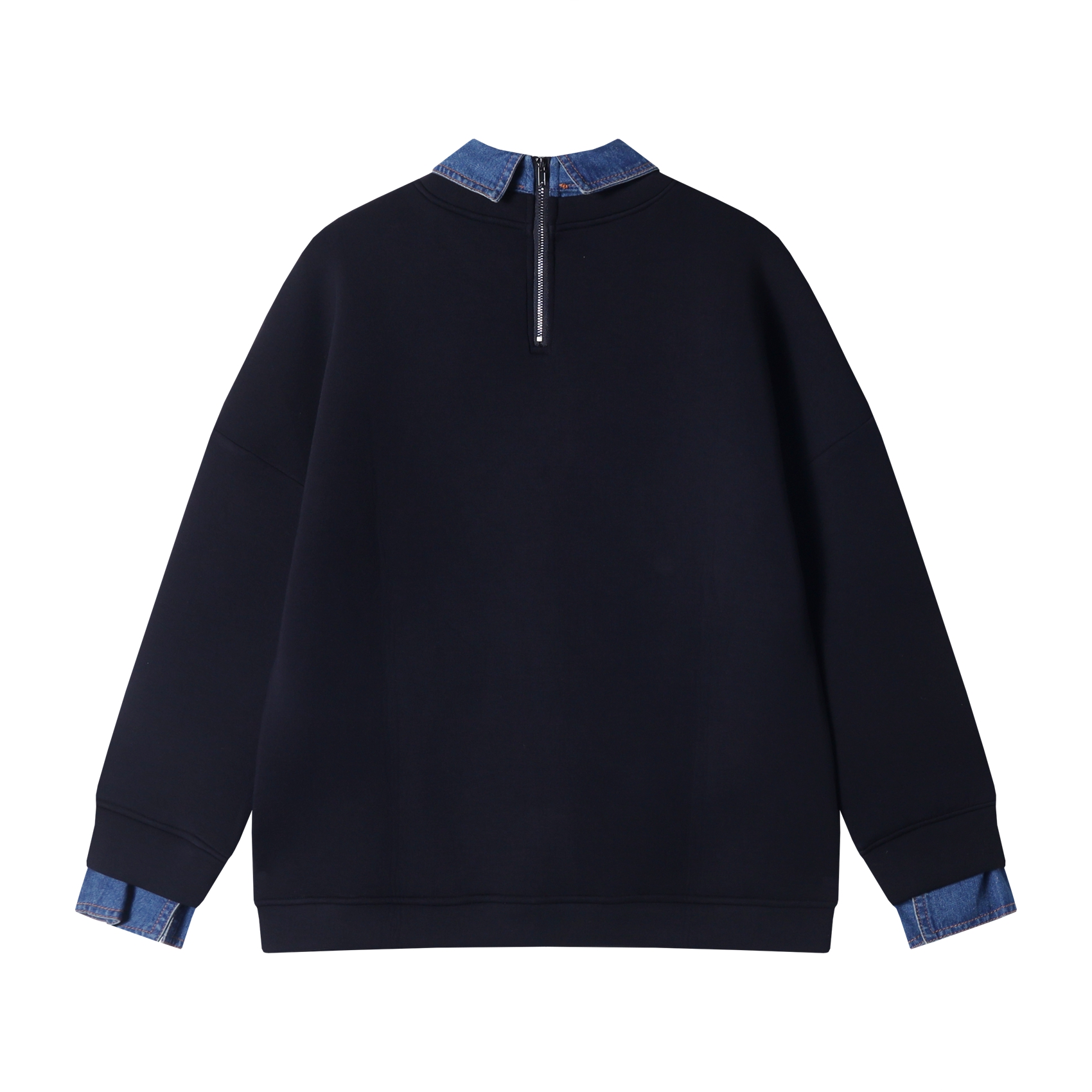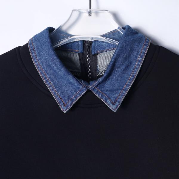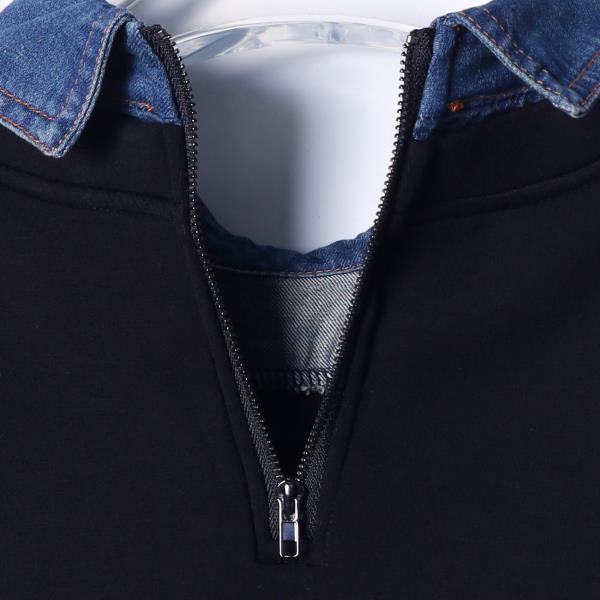 WY694新款男士翻领假两件半拉链时尚设计宽松百搭日常长袖套头