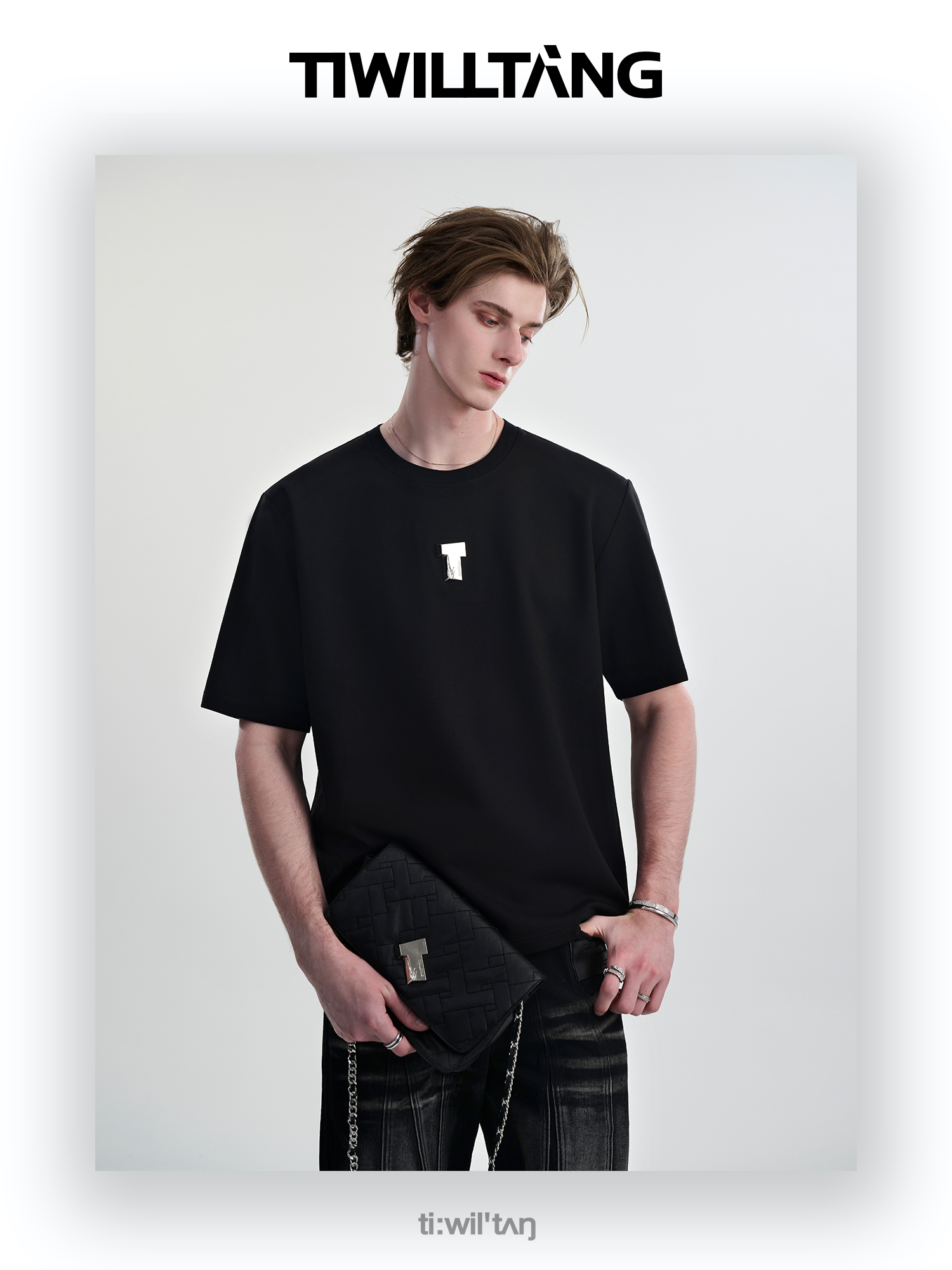 启世录TIWILLTANG“溯御垚寂”暗门襟镂空拼接T恤小众高级短袖
