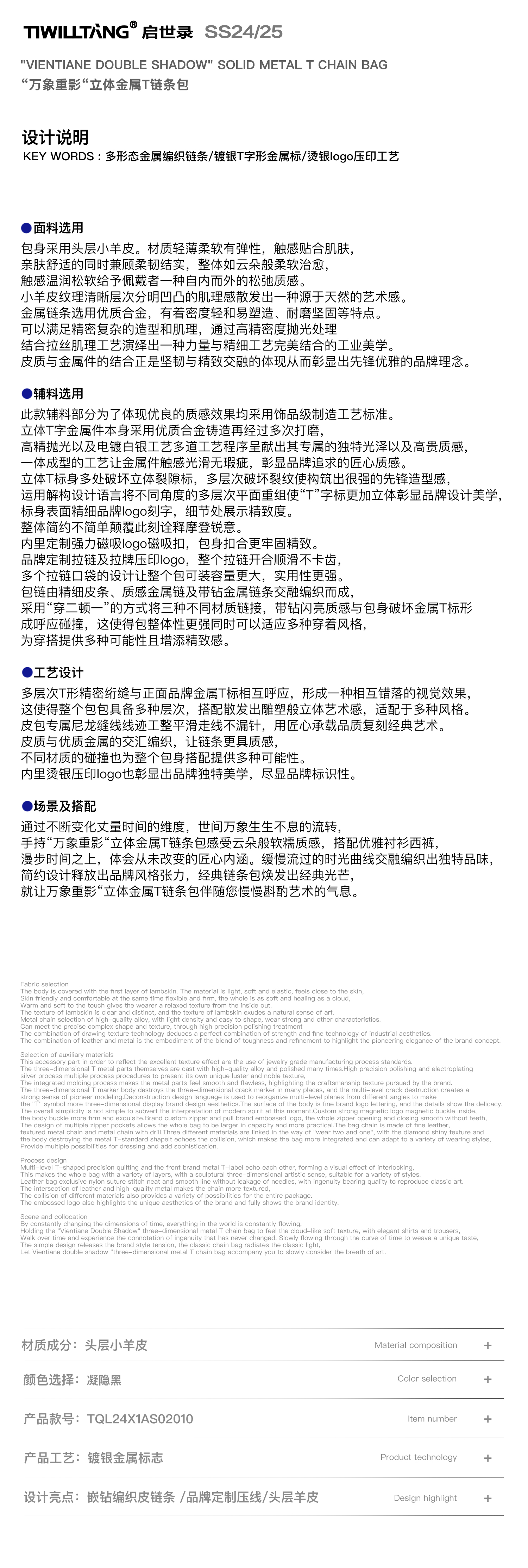 TIWILLTANG启世录“万象重影“立体金属T链条包头层小羊皮