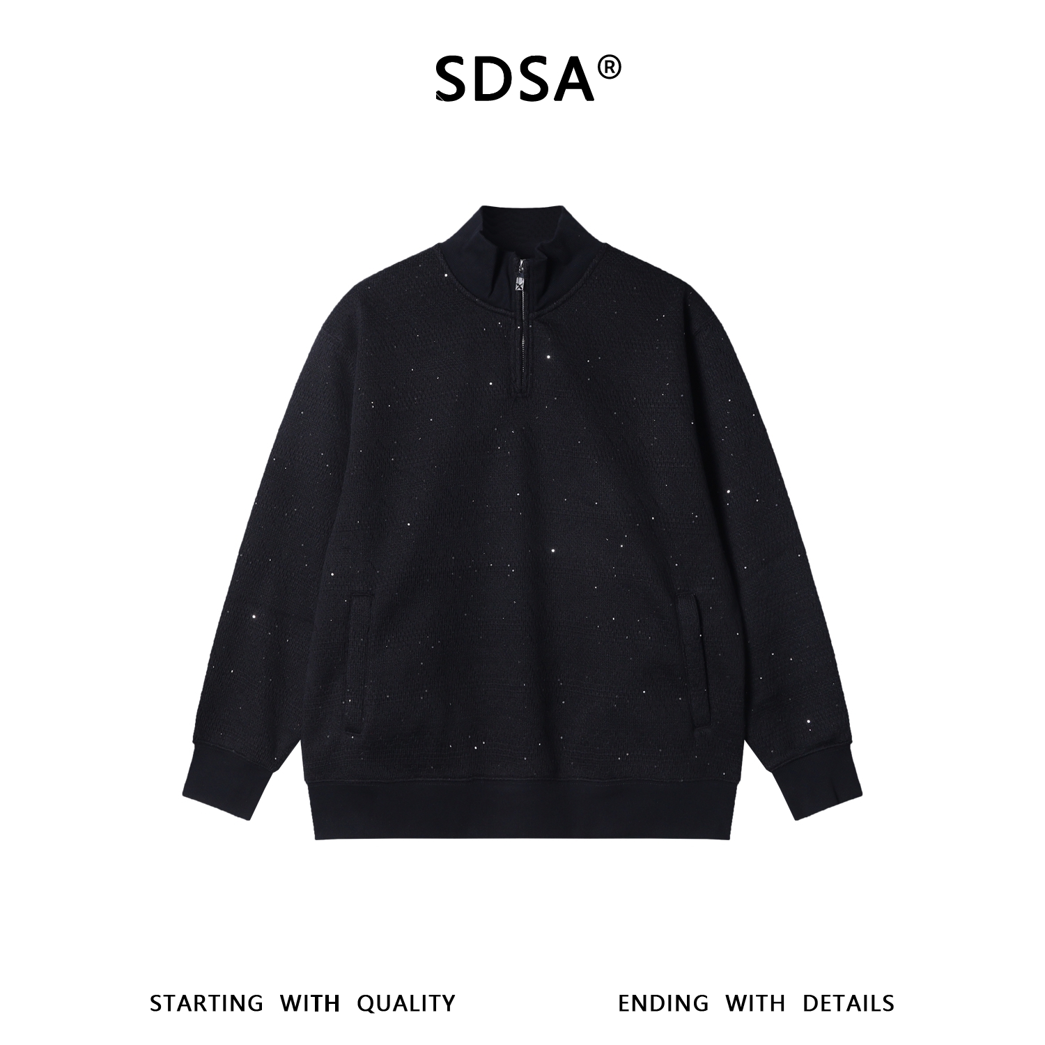 9553SDSA男士秋冬新款痞帅男装美式复古亮片半拉链立领卫衣百搭宽松潮