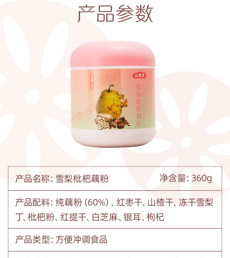 山景源雪梨枇杷藕粉 藕香浓郁真材实料 清润舒爽不怕燥 360g/罐