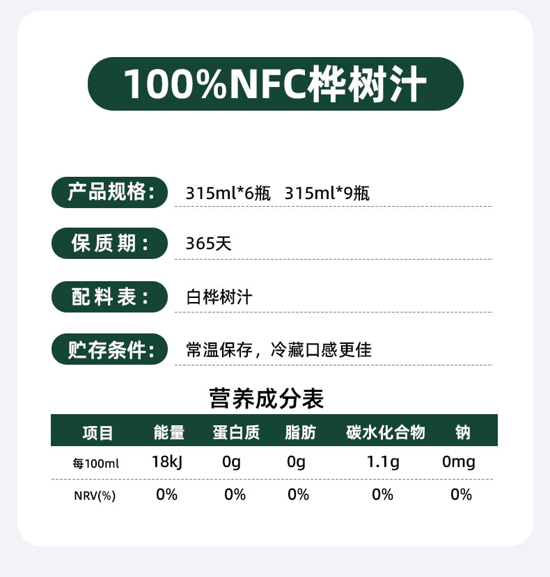 【顺丰包邮】黑河产区伊森阳光白桦树汁315ml/瓶