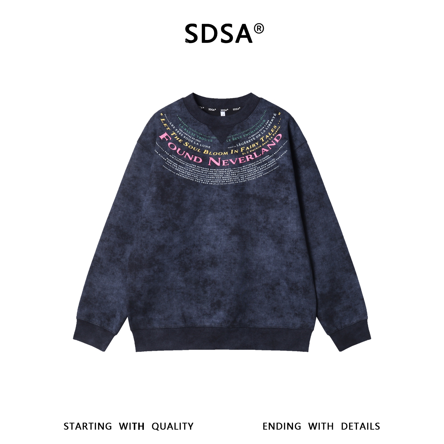 WY1566SDSA男士秋冬新款痞帅男装潮牌美式扎染印花字母圆领卫衣百搭宽松