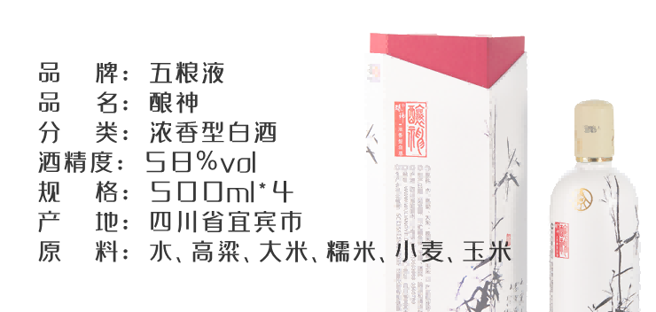 五粮液 浓香型粮食白酒 500ml*4瓶 酿神梅兰竹菊58%VOL