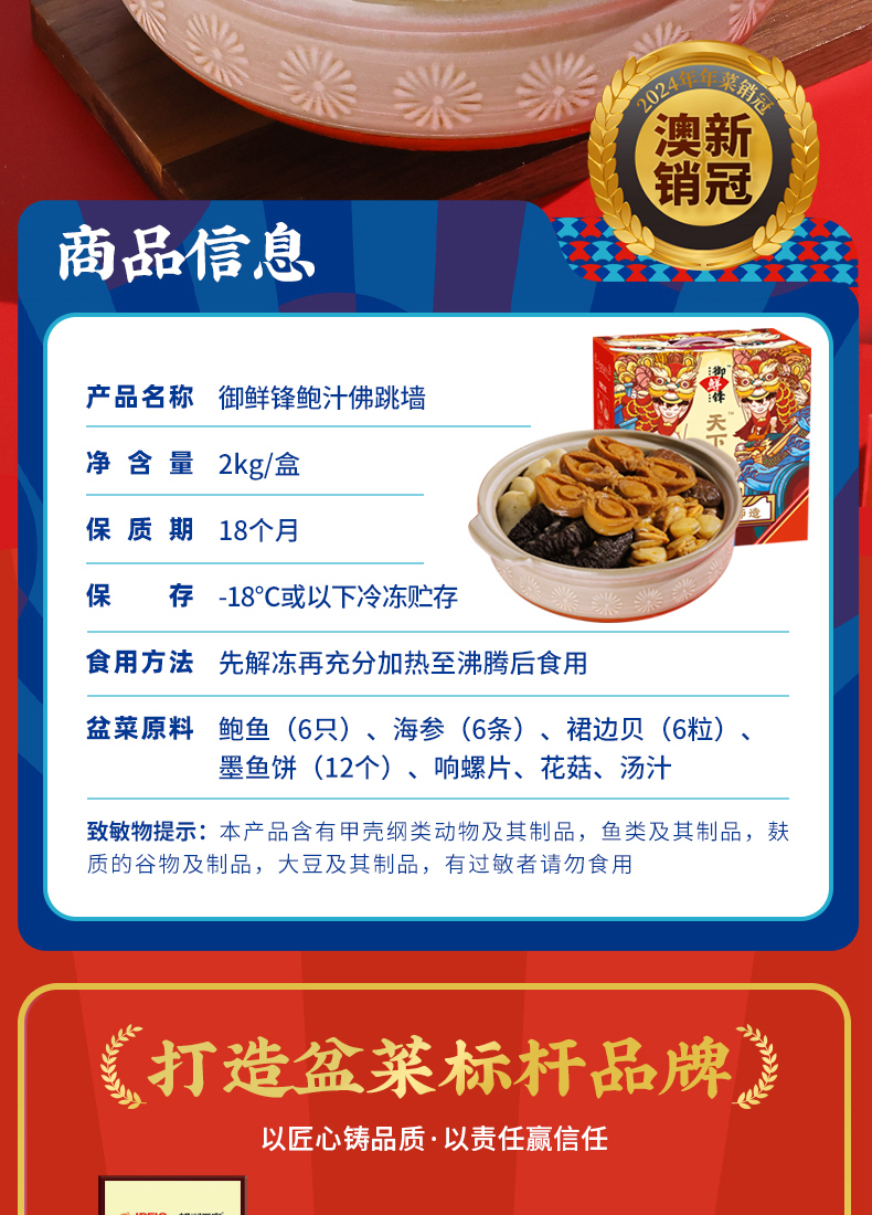【顺丰快递】御鲜锋 天下一盆鲍汁佛跳墙 2kg
