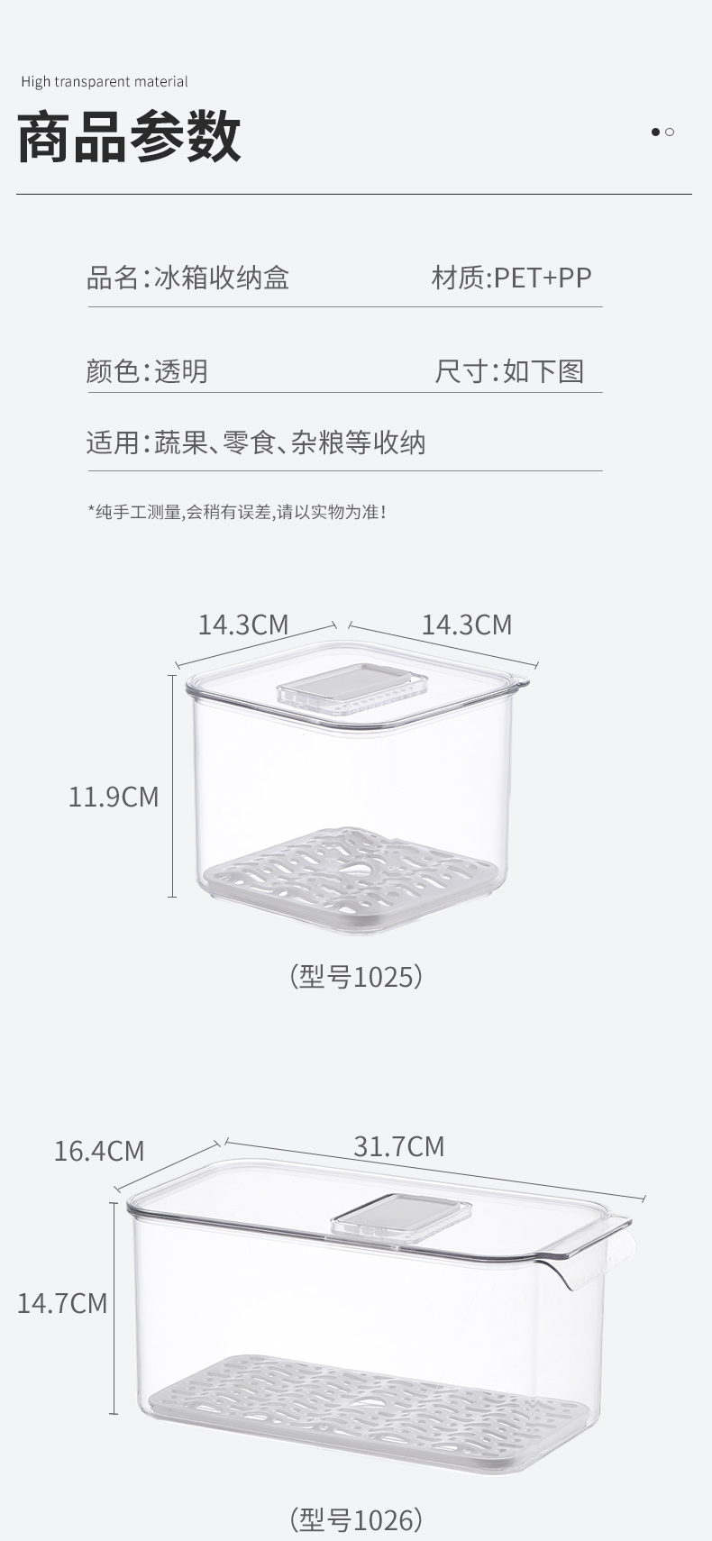 【透明款3种规格可选】娜家方形冰箱收纳盒
